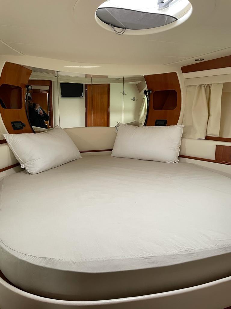 Pershing 50 de 2006 cin deux Man 800 ch avec hélices Rolla 5 pales . Cabine principale avec salle de bain privée, cabine invité avec lit français et cabine invité avec deux lits à l’étage avec salle de bains. Cabine de marin avec toilettes dédiées, salon avec cuisine équipée. Bateau prêt pour la croisière vient d’être entretenu.