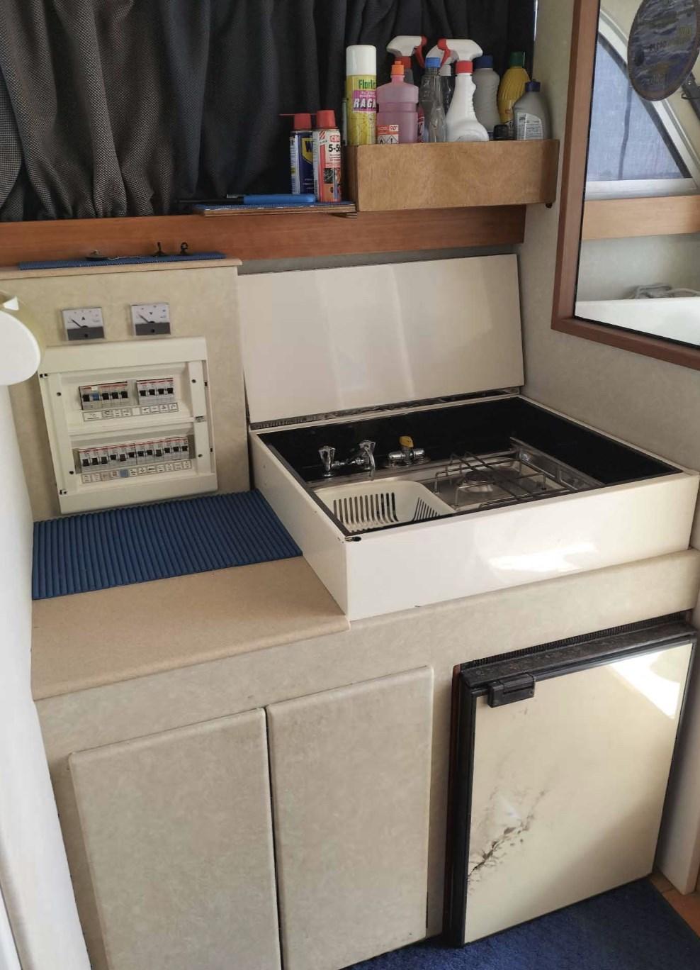 Bellacraft 750 avec deux Iveco 250 ch entièrement révisés 2022, cabine double avant, salle de bain séparée, coin repas avec cuisine équipée.