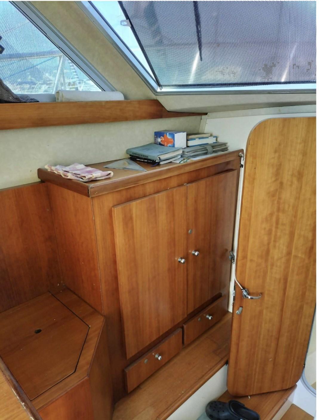 Eau sous pression, 2 Batteries, Douche de cockpit, Flaps hydrauliques, Plateforme arrière, Cockpit en teck, Prise de quai, Guindeau électrique, Echelle de bain.