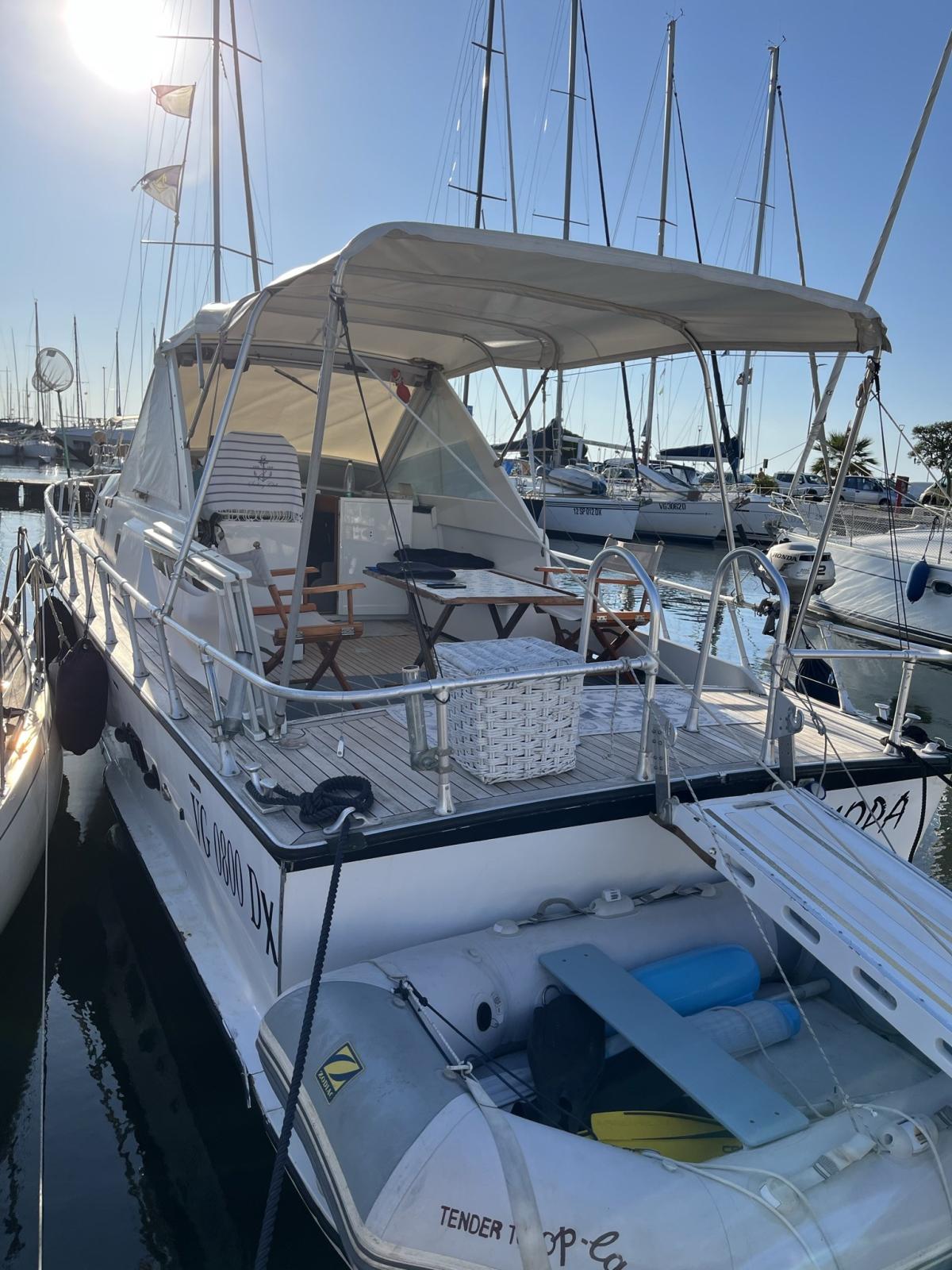 Jag de 1974 en contreplaqué marin avec moteurs de 2007 deux Iveco 330 ch chaque ligne d’essieu diesel. avec 443 heures de moto. Double cabine salle de bain équipée cuisine équipée et coin repas. Générateur 4kW Tender 2mt avec Honda 2CV .