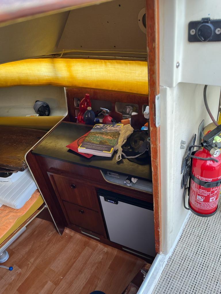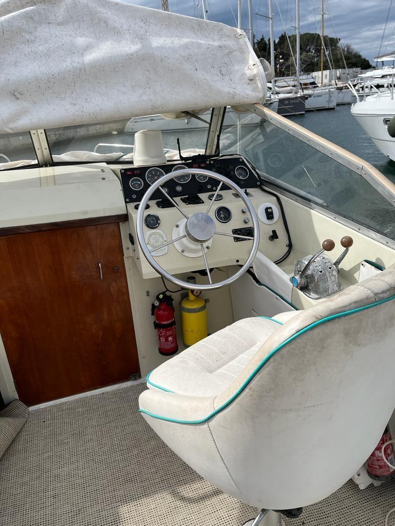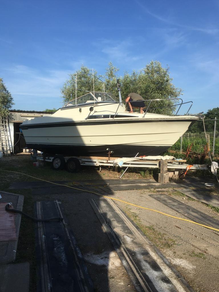 Fjord Weekender 24 de 1977 avec deux Volvo penta 118 ch d’essence 2007 par-dessus bord. Cabine avec lit double, salle de bains, cuisine équipée. Auvent et couverture d’hiver.