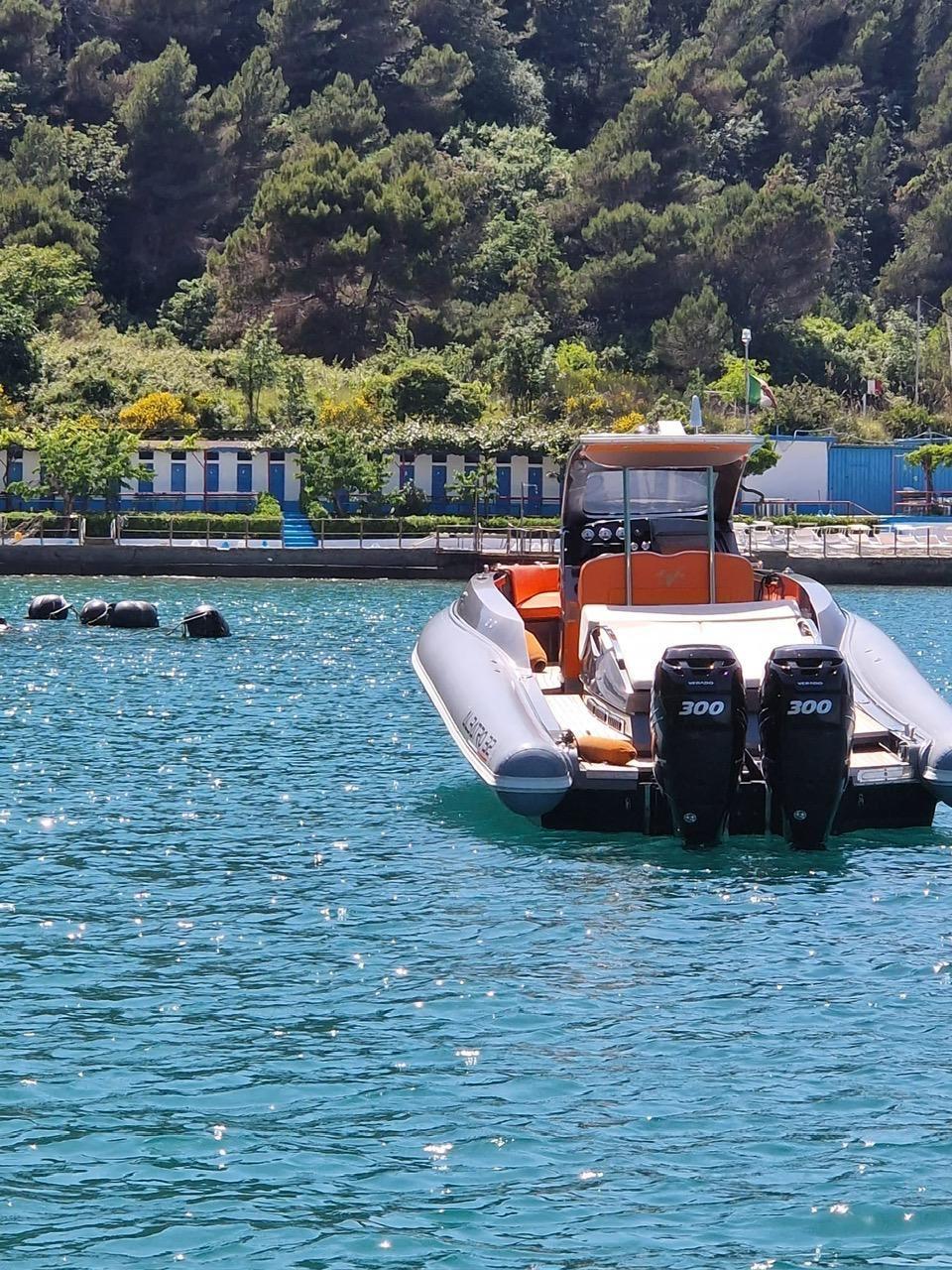 Eau sous pression, 2 Batteries, Douche de cockpit, Cockpit en teck, Prise de quai, Echelle de bain (in acciaio inox), T-Top.
