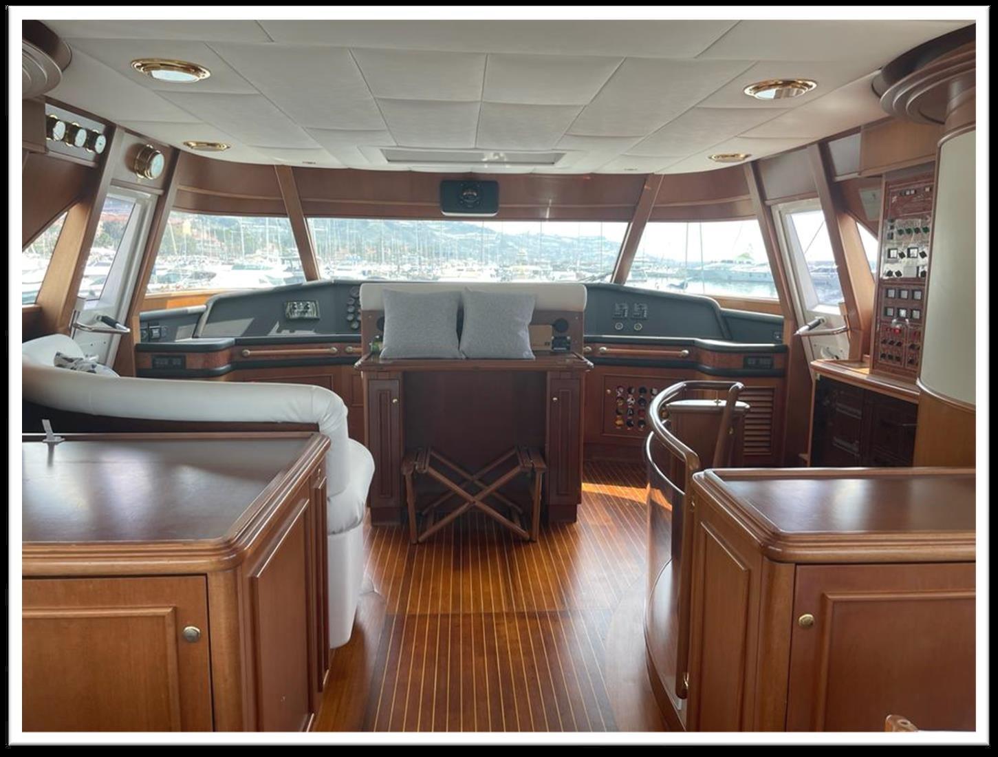 Alarme moteur, Alarme de pompe de cale, Eau sous pression, Passavant en teck, Propulseur de poupe (HYDROMARIN), Propulseur d'étrave (SIDE POWER), Bossoirs pour annexe, Extincteur(s) fixe(s), Passerelle, Plateforme arrière, Pompe de cale automatique, Cockpit en teck, Prise de quai, Guindeau électrique, Stabilisateurs (FINS), table de cockpit, Winch électrique arrière, Winch électrique avant.