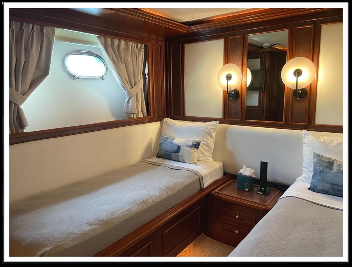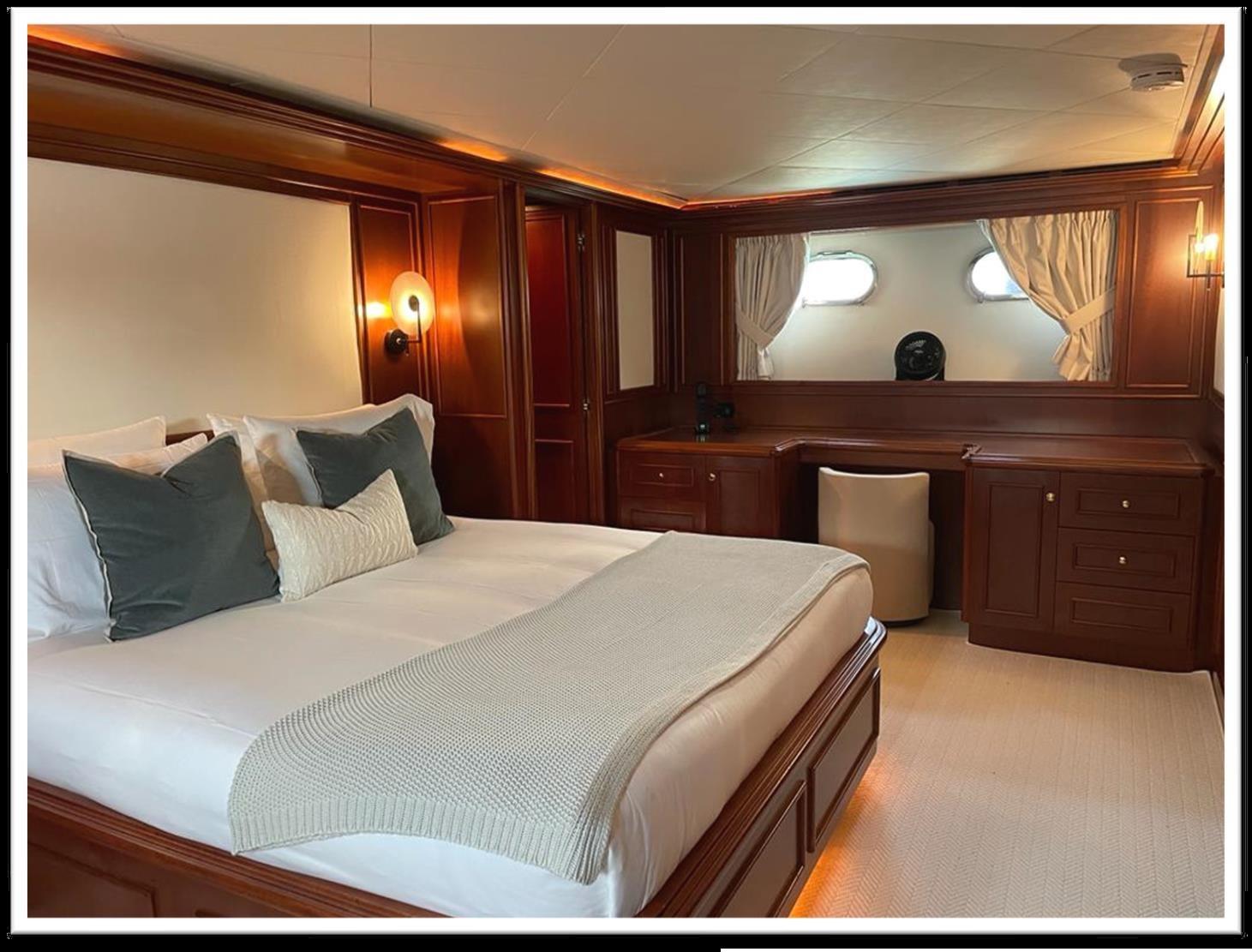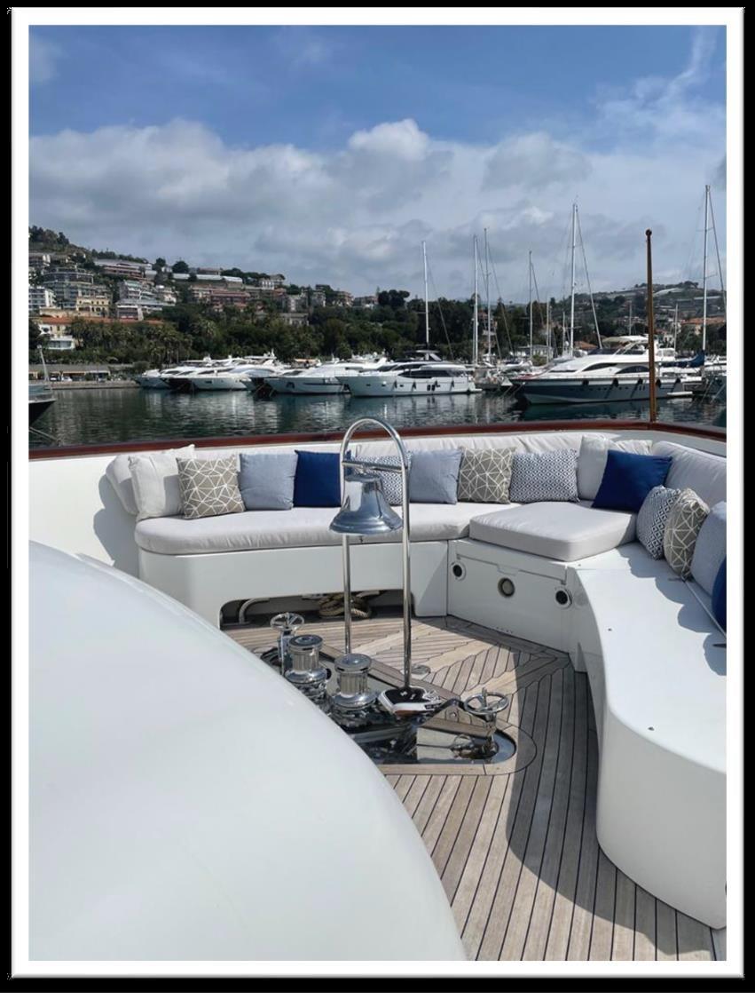 MYEERAH est un yacht à moteur de 27,45 m, construit en Italie par Custom Line en 2000 REFIT 2023. C’est l’un des deux modèles Navetta 27. Sa vitesse maximale est de 18,0 nœuds, sa vitesse de croisière est de 16,0 nœuds et son autonomie maximale est de 1200,0 nm à 15,5 nœuds, avec la puissance de deux moteurs diesel MAN. Il peut accueillir jusqu’à 8 personnes, avec 4 membres d’équipage. Il a une jauge brute de 157,0 GT et une largeur de 7,0 mètres. Il a été conçu par Zuccon International Project, qui a également réalisé l’architecture navale et conçu les intérieurs. La salle à manger est connue du salon. Les intérieurs sont classiques et très élégants. Stabilisateurs, Propulseur d’étrave, Propulseur de poupe. Feux de poupe fixes - Phares réglables Volets hydrauliques - Garage uniquement pour annexe, jetski et club de plage, annexe sur fly - Grue annexe sur fly - Système d’extinction d’incendie - Indicateurs Ilaps - Lavage de chaîne - Évier dans le cockpit de la mouche - Lumières de courtoisie - Lumières sous-marines - Passerelle hydraulique - 2 nouvelles portes latérales - Cockpit en teck - Prise de quai 220V - Prise d’eau de quai - Ailerons stabilisateurs - Table de cockpit 2 Treuil de pêche arrière - 2 Treuils d’étrave avec étrave Climatisation - charge batteries - BBQ/Grill - Chaudière - Climatisation réversible - Dessalinisateur - Onduleur Système d’eaux noires - Parquet intérieur - Prises internes 12v - Prises internes 220v - Réservoir d’eaux noires - 5 WC marins électriques + équipage Haut-parleurs - Antenne TV satellite - DVD - home cinéma - Système TV - Mécanisme de levage pour TV dans le salon - Radio AM/FM - 5 TV Congélateur - four - Réfrigérateur extérieur - Réfrigérateur interne - Machine à glaçons - lave-linge séchant - lave-vaisselle