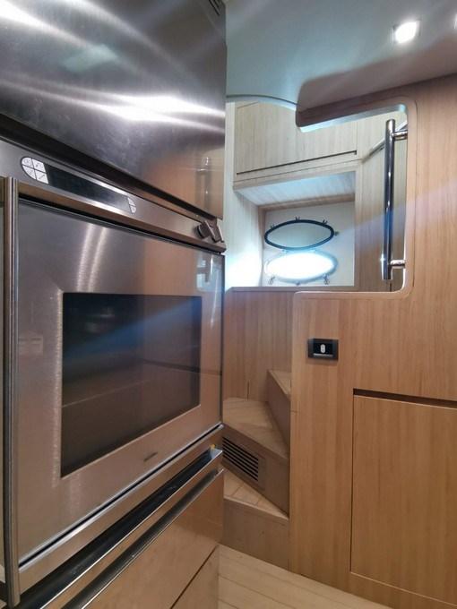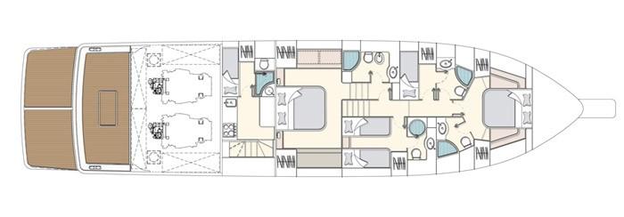 Alarme moteur, Eau sous pression, Passavant en teck, Couleur spéciale, Douche de cockpit, Flaps hydrauliques, Hard top, Passerelle, Plateforme arrière, Porte latérale, Cockpit en teck, Prise de quai, Guindeau électrique, table de cockpit.