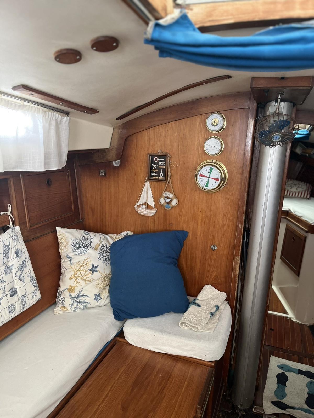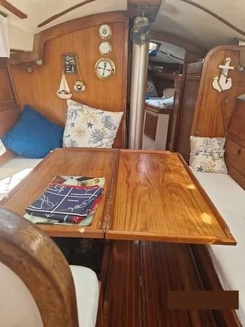 Wauquiez Change 32 de 1974 avec moteur volvo penta MD2B atterri et révisé à zéro heure 2022 actuellement 100 heures moteur. Cabine double avant, salle de bain dînette pouvant être convertie en 2 lits. Cuisine entièrement équipée et tableau poano. Pilote VHF année 1974 - cabine avant, dînette convertible - salle de bain séparée - moteur Volvo 24cv - année débarquée et révisée 2021 Grand-voile année 2020 - enrouleur, spynnaker -Vhf, gps, eco, pilote automatique, guindeau à mouillage Plate-forme et passerelle, auvent.
