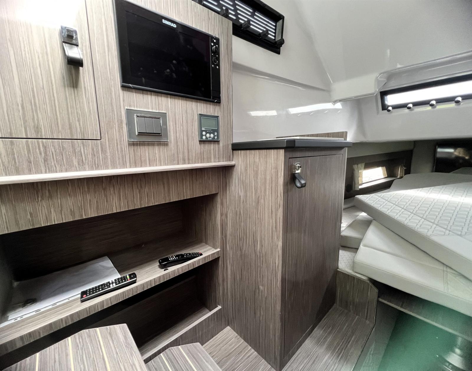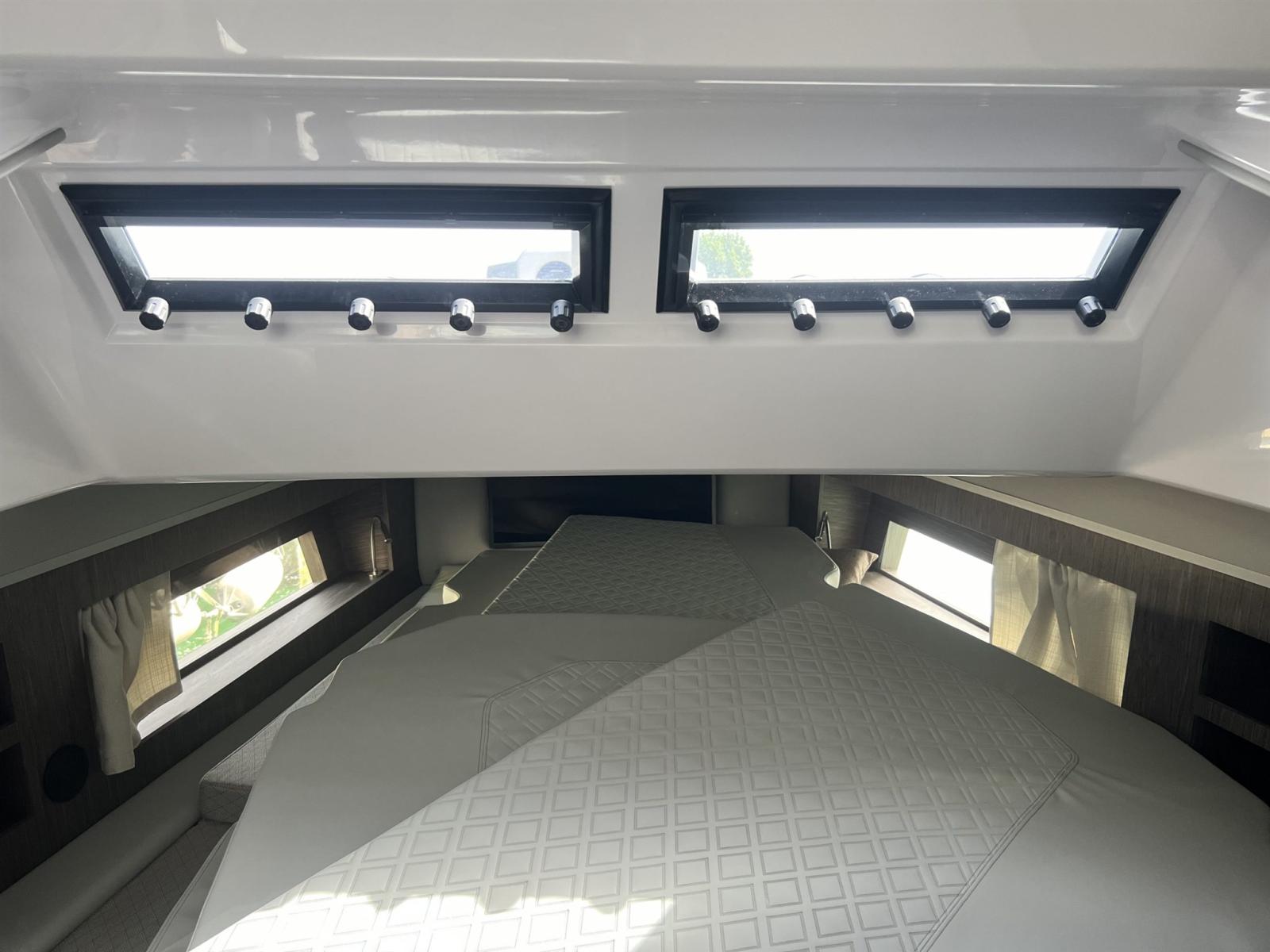 Écran tactile électronique complet Simrad. Frigo double, Radio stéréo avec 6 alt., cuisine, Domotique complète, Rideaux et coussins, Lumières sous-marines, Double Smart TV, personnalisation des couleurs et de la tapisserie d’ameublement Électronique tactile Simrad complète, Propulseur d’étrave, Onduleur, génératrice, Air 6000 BTU, compteur de chaîne,