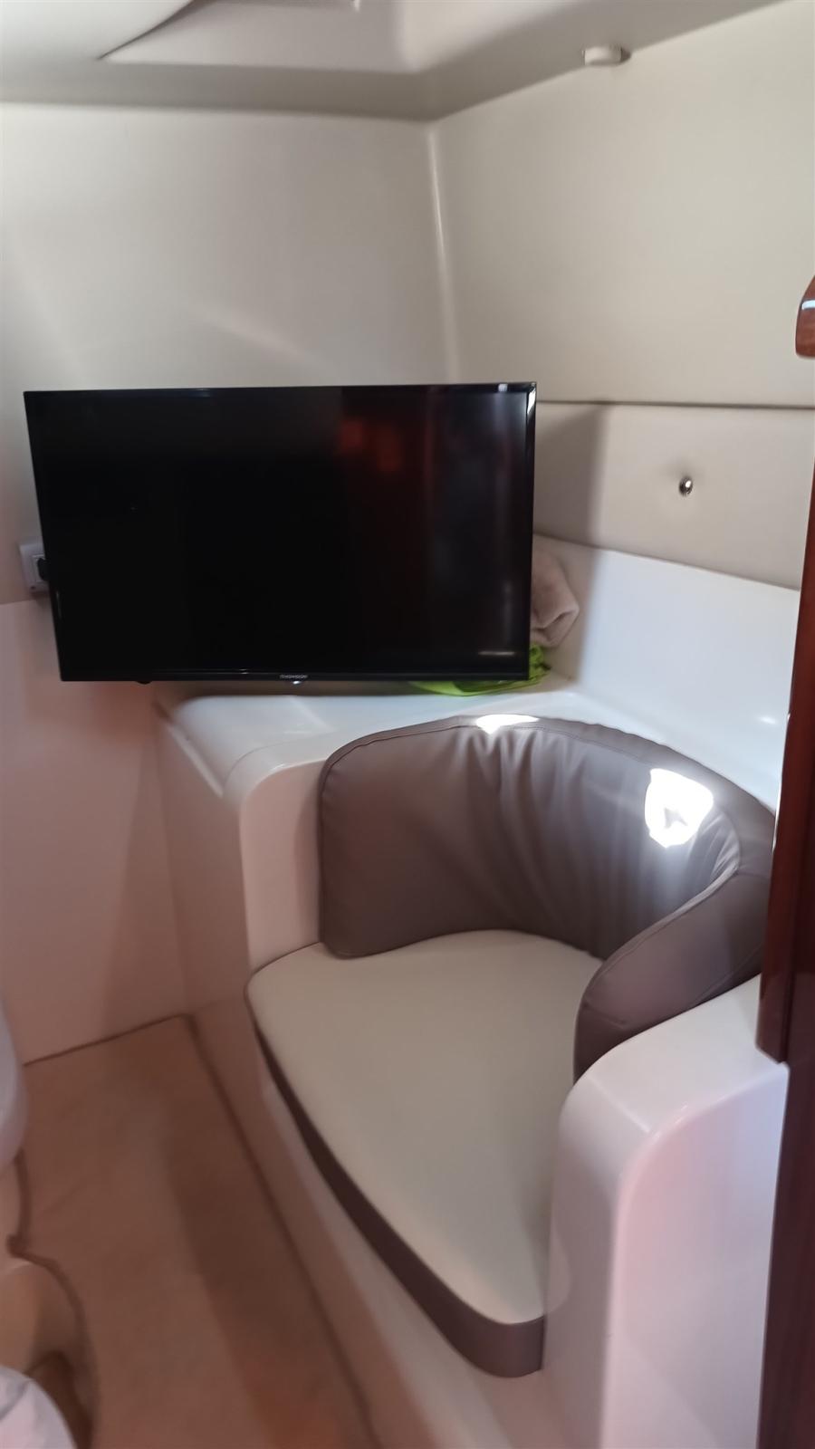 Alarme moteur, Douche de cockpit, Flaps hydrauliques (N°2), Plateforme arrière, Pompe de cale automatique, Prise de quai, Connexion eau sous pression à quai, Rollbar, Guindeau électrique, Echelle de bain.