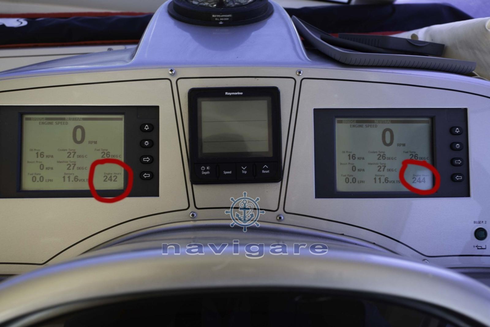 Alarme moteur, Alarme de pompe de cale, Eau sous pression, 4 Batteries (NUOVE 2018), Passerelle (OPAC MARE), Pompe de cale automatique, Pompe de cale manuelle, Cockpit en teck, Prise de quai, Onduleur, Guindeau électrique (2021), Echelle de bain, Annexe (260 con motore fb 6 CV).