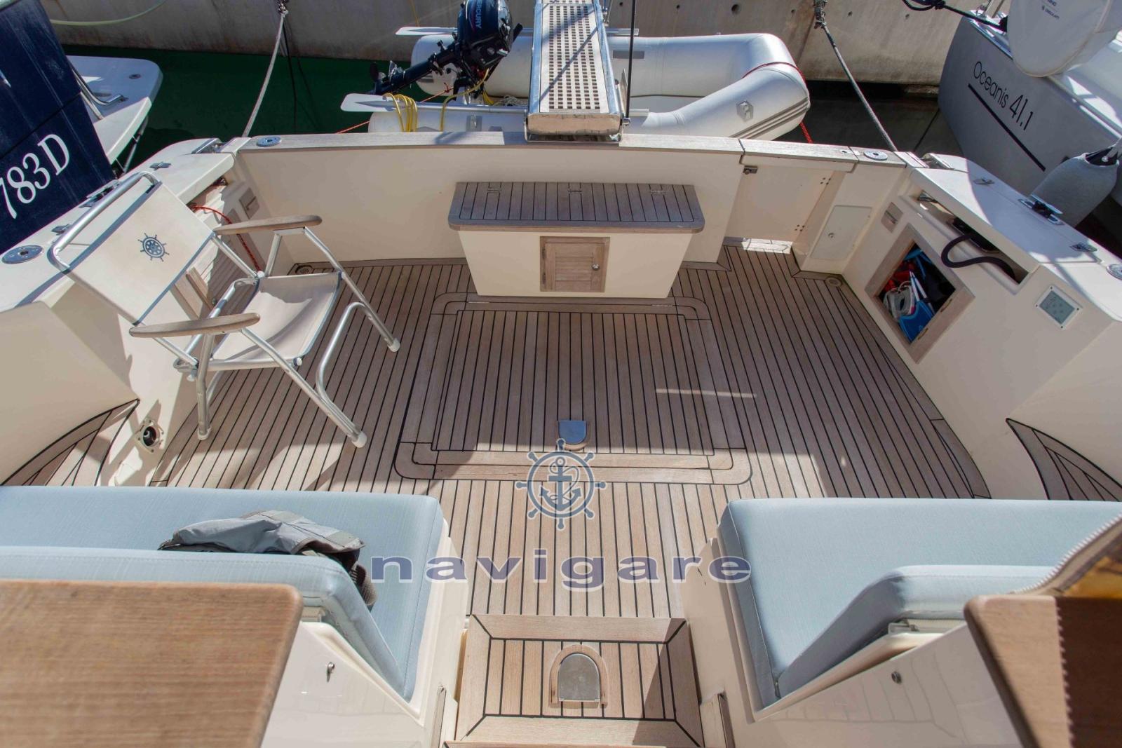 INTÉRIEUR EN BOIS DE CERISIER MAT - LE BATEAU EST AMÉNAGÉ: CABINE PRINCIPALE À L’AVANT AVEC SALLE DE BAIN, DOUCHE AVEC PORTE TOURNANTE - CABINE INVITÉ AVEC DEUX GRANDS LITS AU SOL - SALLE DE BAIN AVEC LAVABO ET DOUCHE (RIDEAU) - COIN REPAS AVEC CUISINE AVEC BRÛLEURS ÉLECTRIQUES - HOTTE ASPIRANTE - GRAND RÉFRIGÉRATEUR AVEC GLACIÈRE, FOUR À MICRO-ONDES ET DIVERS TIROIRS ET PORTES POUR RANGER LES USTENSILES - GRAND CANAPÉ EN FORME DE « L » AVEC TABLE - COIN REPAS À L’EXTÉRIEUR DU COCKPIT SUPÉRIEUR AVEC ARMOIRE DE CUISINE RÉTRACTABLE AVEC N. DEUX BRÛLEURS GAZ - AUTRE PETIT FRICO SOUS LA CUISINE - ARMOIRE, SOUS LE SIÈGE AVEC TIROIRS PORTE-OBJETS - CANAPÉ EN FORME DE U AVEC TABLE PLIANTE.
