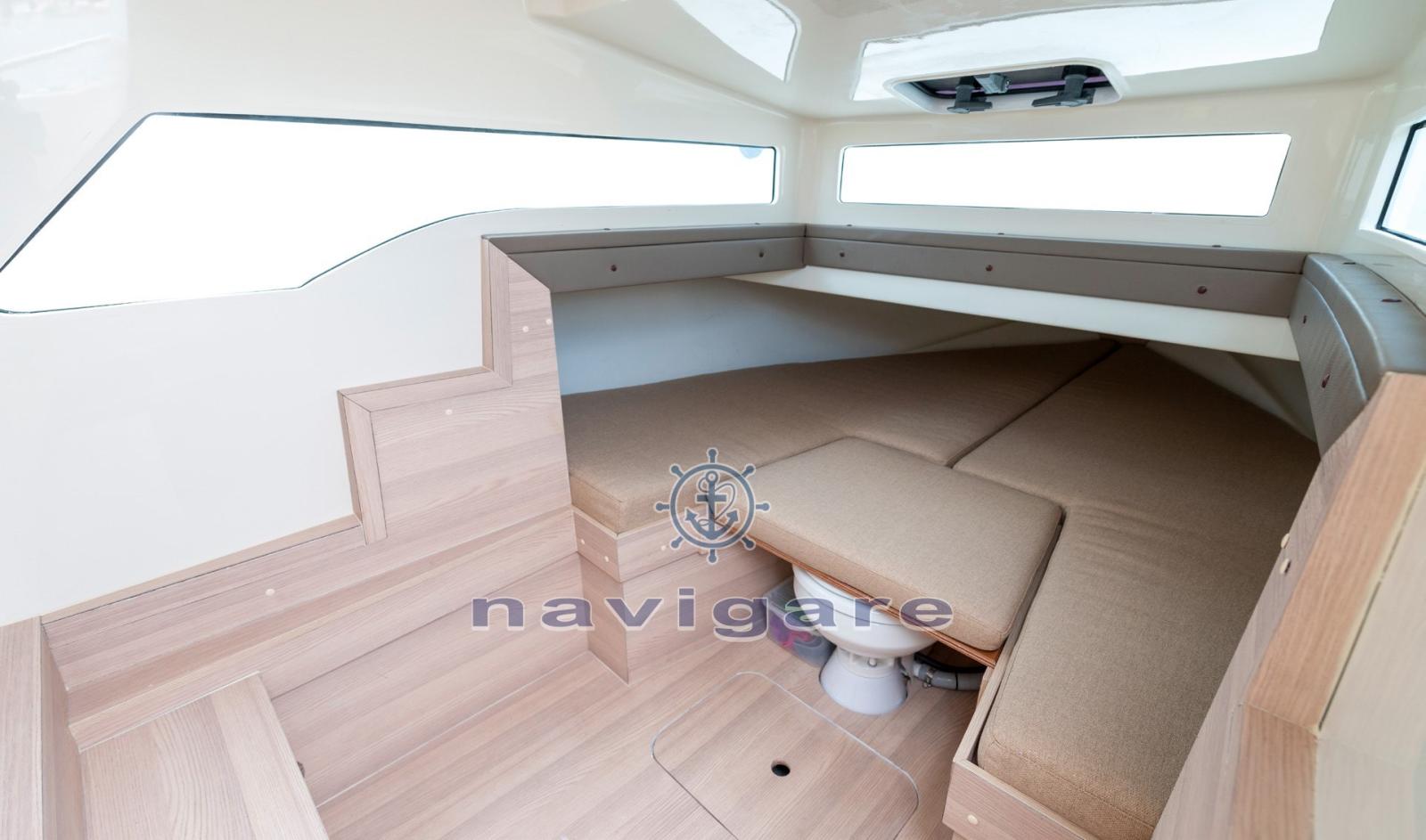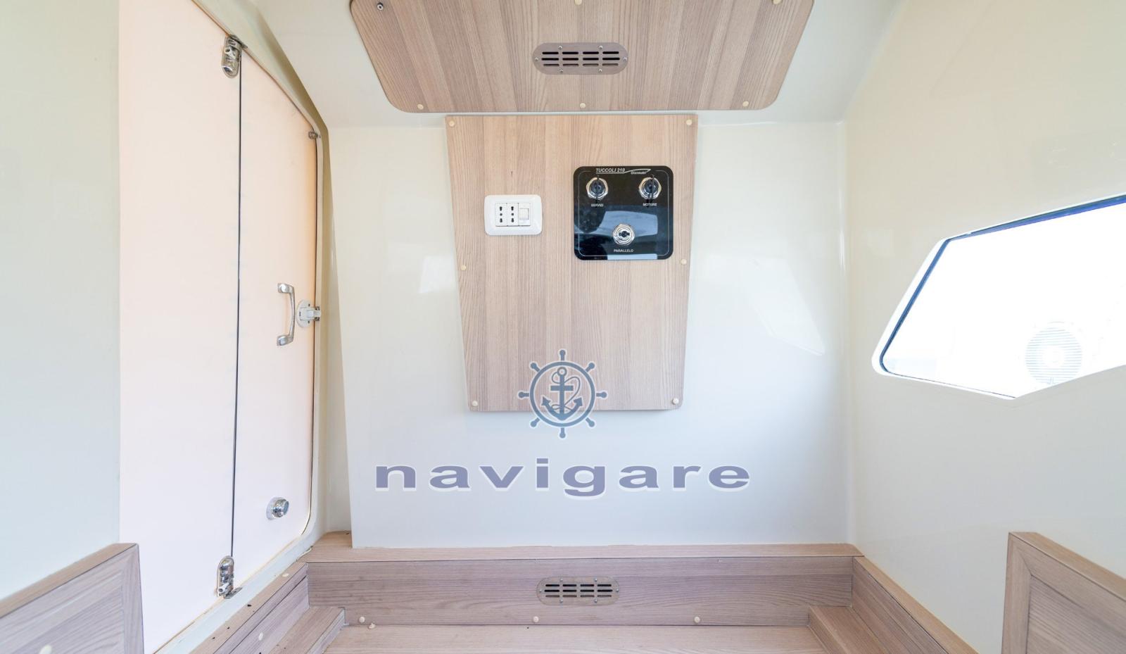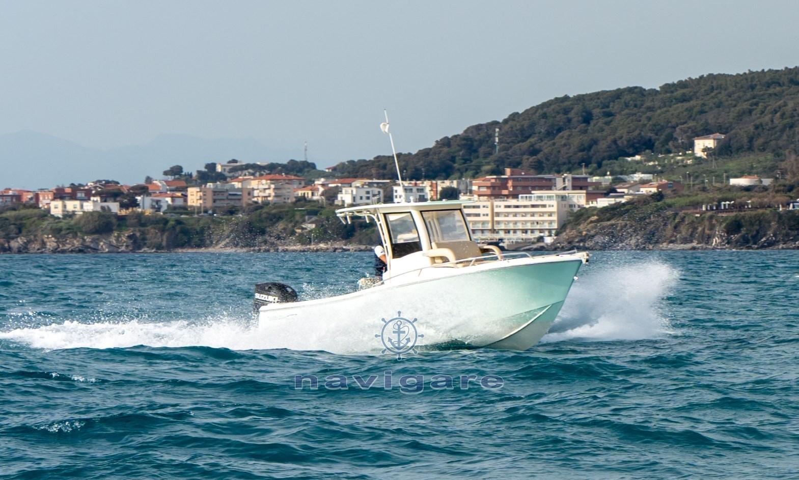 Construit selon les normes rigoureuses du pêcheur américain pour le rendre rigide et durable, avec une araignée structurelle qui renforce la coque et des épaisseurs de stratifié en fibre de verre variables allant de 8 mm sur le côté à 15 mm sur la quille. Des résines de vinylester et de polyester laminées à la main ont été utilisées pour le laminage. Alors que la couverture a été conçue « sandwich », pour limiter le poids tout en maintenant la résistance. Les lignes de flottaison, évolution des légendaires coques de Tuccoli, sont conçues pour affronter les vagues sèches et abruptes de la Méditerranée, pour assurer sécurité et confort de navigation maximal. Parce que vous décidez quand sortir ou quand revenir, pas la mer.