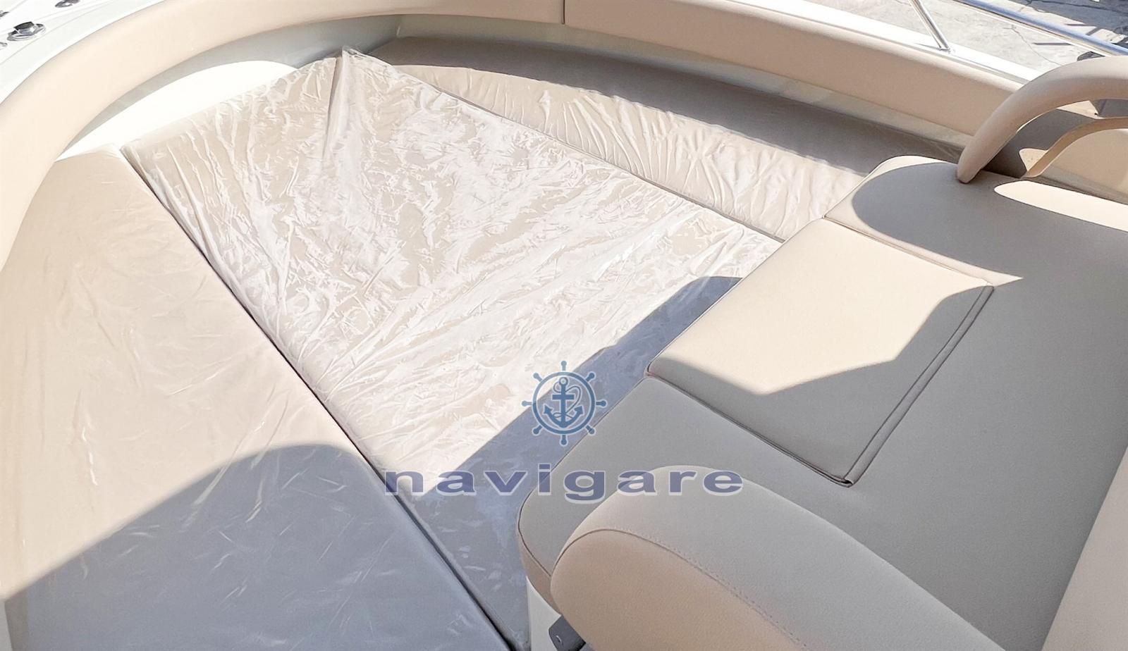 Siège conducteur avec une console d’un mètre de large et 55 centimètres de profondeur pour assurer un confort maximal au pilote. Le piétinement est toujours gratuit et ne descend jamais en dessous de 35 centimètres, pour faire facilement le tour du bateau sans passages étroits, inconfortables ou dangereux où les pieds et les articulations se heurtent. La surface du cockpit est de plus de quatre mètres carrés pour accueillir plus de personnes, T-top de 3 mètres carrés pour protéger et ombrager la console et une partie du cockpit. Et à l’avant, quatre mètres carrés de solarium pour se détendre et bronzer. Votre plage personnelle rembourrée et très confortable.