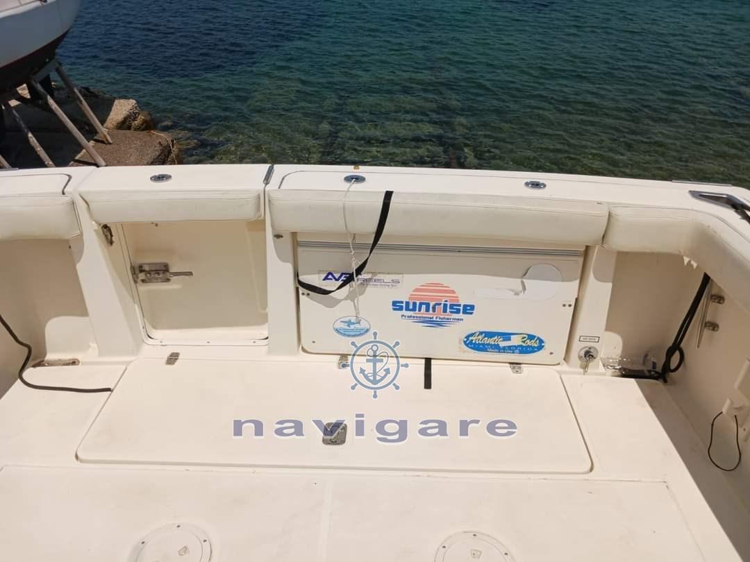 Instrumentation professionnelle Furuno 295 avec sonde de 1 kw, cartographie Raymarine 120 E, pilote automatique, vanne de pêche à la traîne sur les deux moteurs, radar Raymarine, groupe électrogène, réservoir en direct, guindeau d’ancre d’étrave, panneaux solaires pour batteries, aquariums. Métier