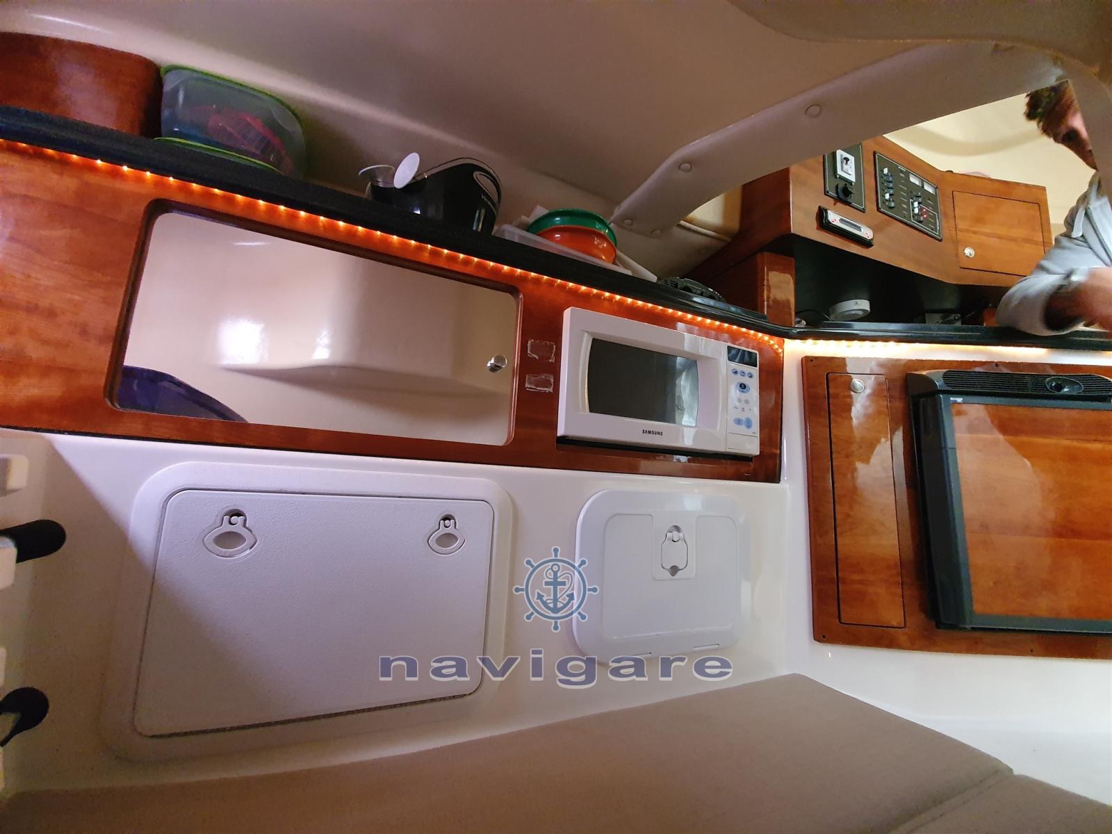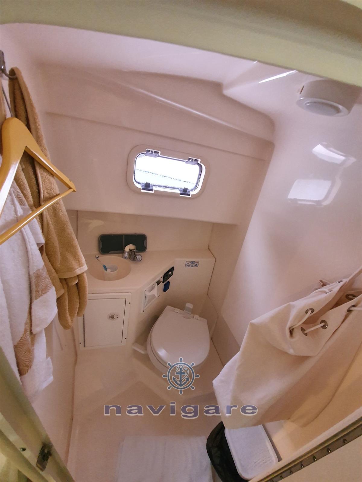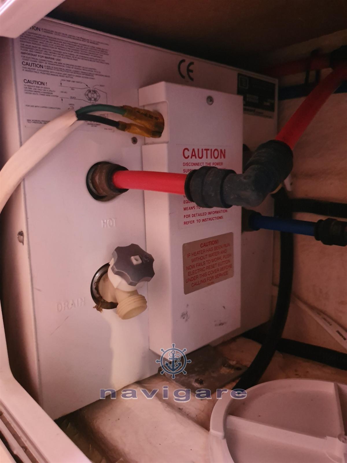 Alarme moteur, Alarme de pompe de cale, Eau sous pression, Radeau de sauvetage (4 posti), 4 Batteries (120 amp h cadauna), Douche de cockpit, Flaps hydrauliques, Éclairage de courtoisie, Pompe de cale automatique, Prise de quai, Connexion eau sous pression à quai, Guindeau électrique, Système de filtration des eaux usées, Annexe (Arimar con motore Honda 2.3 cv).