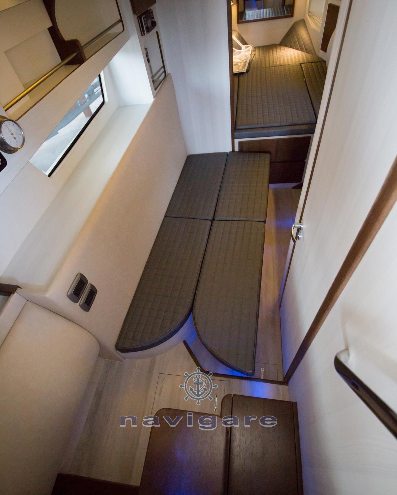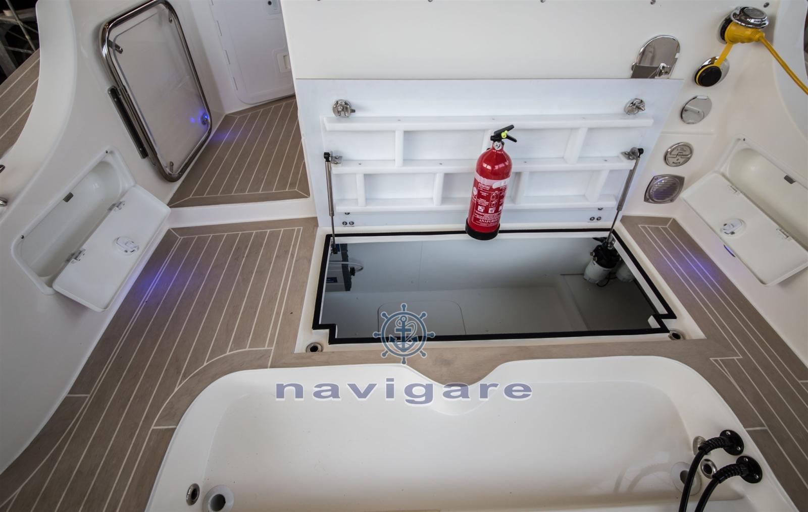 Alarme moteur, Alarme de pompe de cale, Ancre (DELTA 12 kg con 50 mt di catena), 4 Batteries, Douche de cockpit (calda e fredda), Phare de poursuite, Éclairage de courtoisie, Spots sous-marins, Pompe de cale automatique, Prise de quai, Connexion eau sous pression à quai, Guindeau électrique (700 W), Corne.