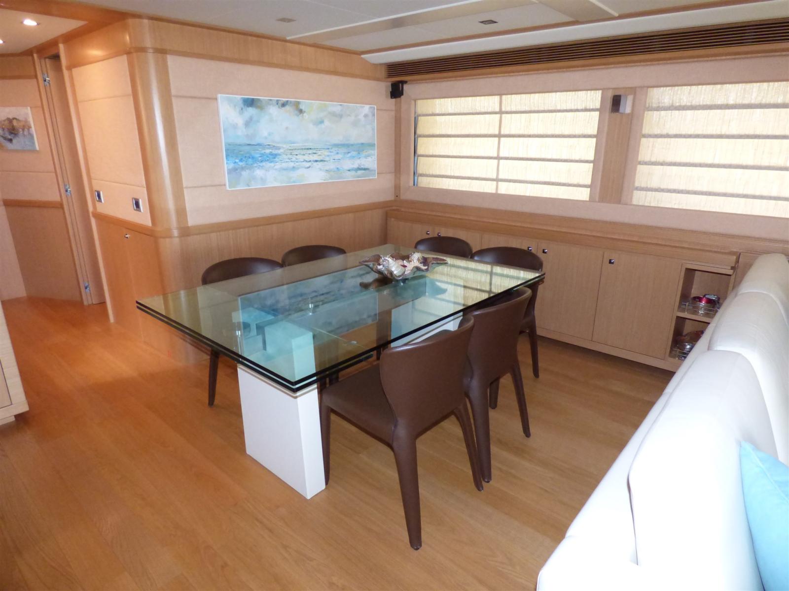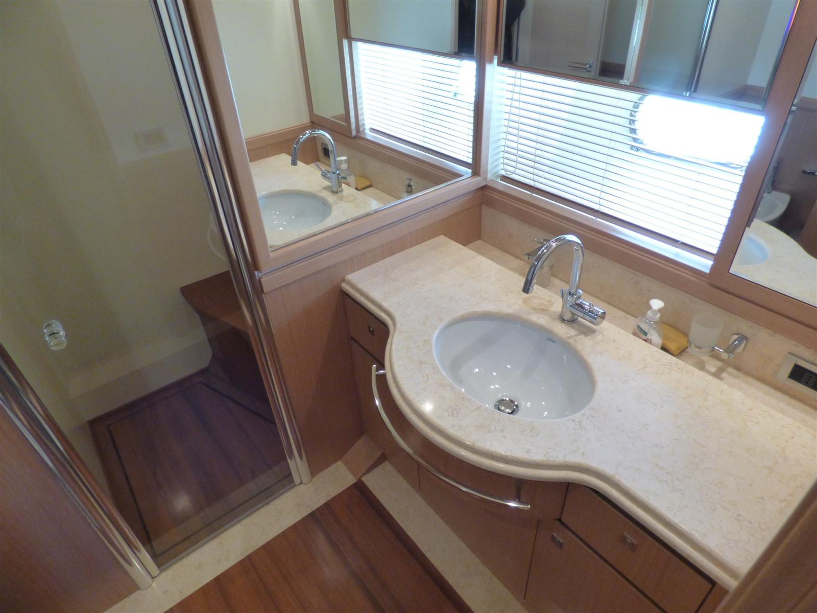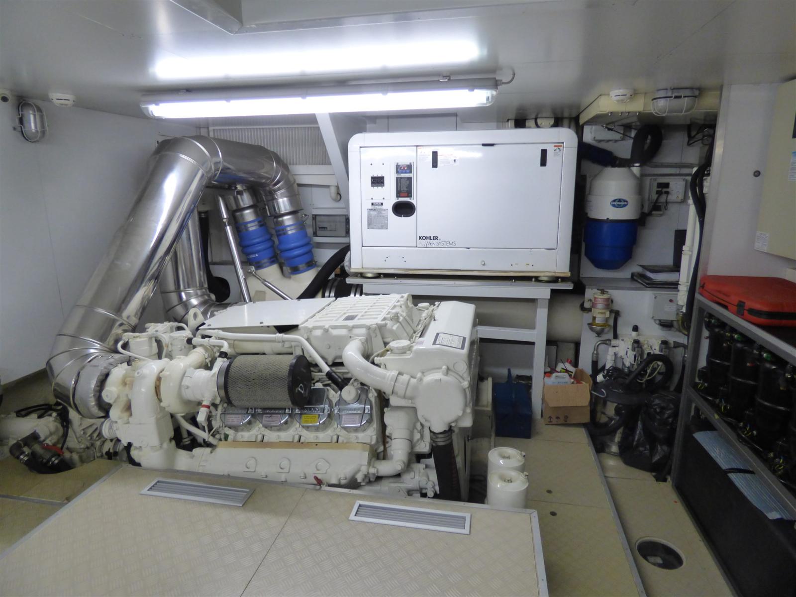 Alarme moteur, Alarme de pompe de cale, 2 Ancre, 2 Eau sous pression, 12 Batteries, Passavant en teck, 2 Chargeur de batterie, 2 Douche de cockpit, Phare de poursuite, Garage à annexe, Grue de flybridge, Extincteur(s) fixe(s), Lavage de chaine, Passerelle (a scomparsa), 5 Pompe de cale automatique, Pompe de cale électrique (centralizzata), Pompe de cale manuelle, 2 Porte latérale, Cockpit en teck, Prise de quai, Connexion eau sous pression à quai, Onduleur, 2 Guindeau électrique, Echelle de bain (idraulica), Système de filtration des eaux usées, 2 Stabilisateurs (zero speed), table de cockpit (teak), Annexe (Zodiac 490 con motore Johnson 70 hp), 2 Winch électrique arrière, Winch électrique avant.