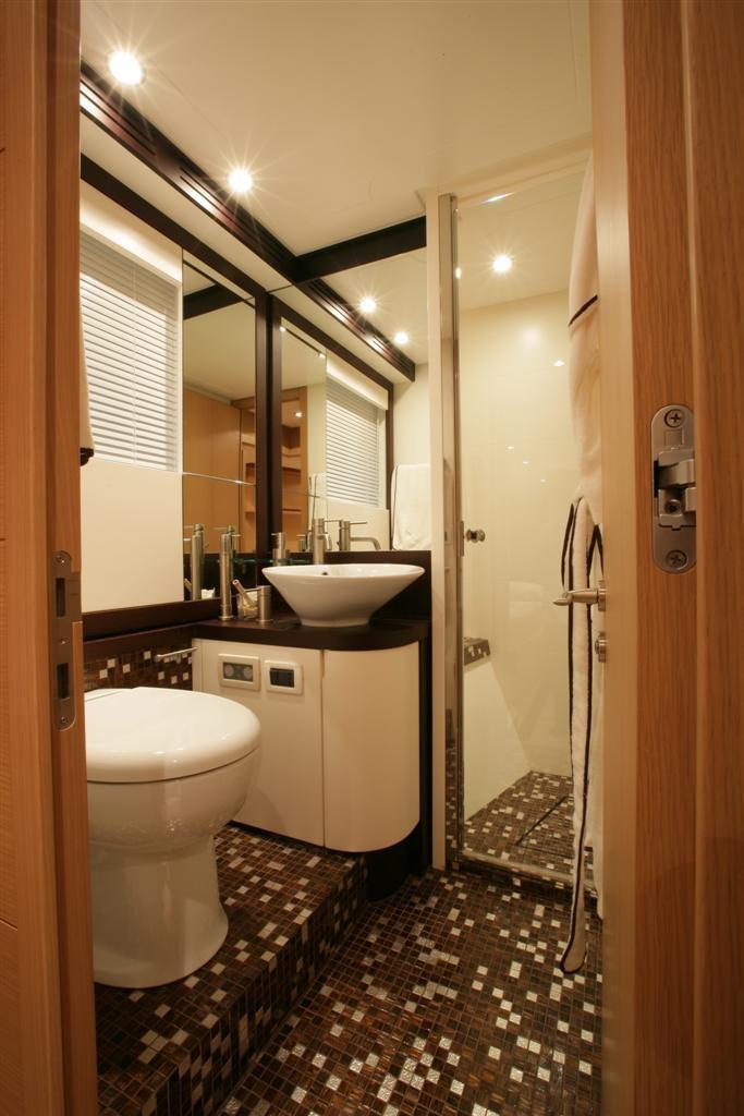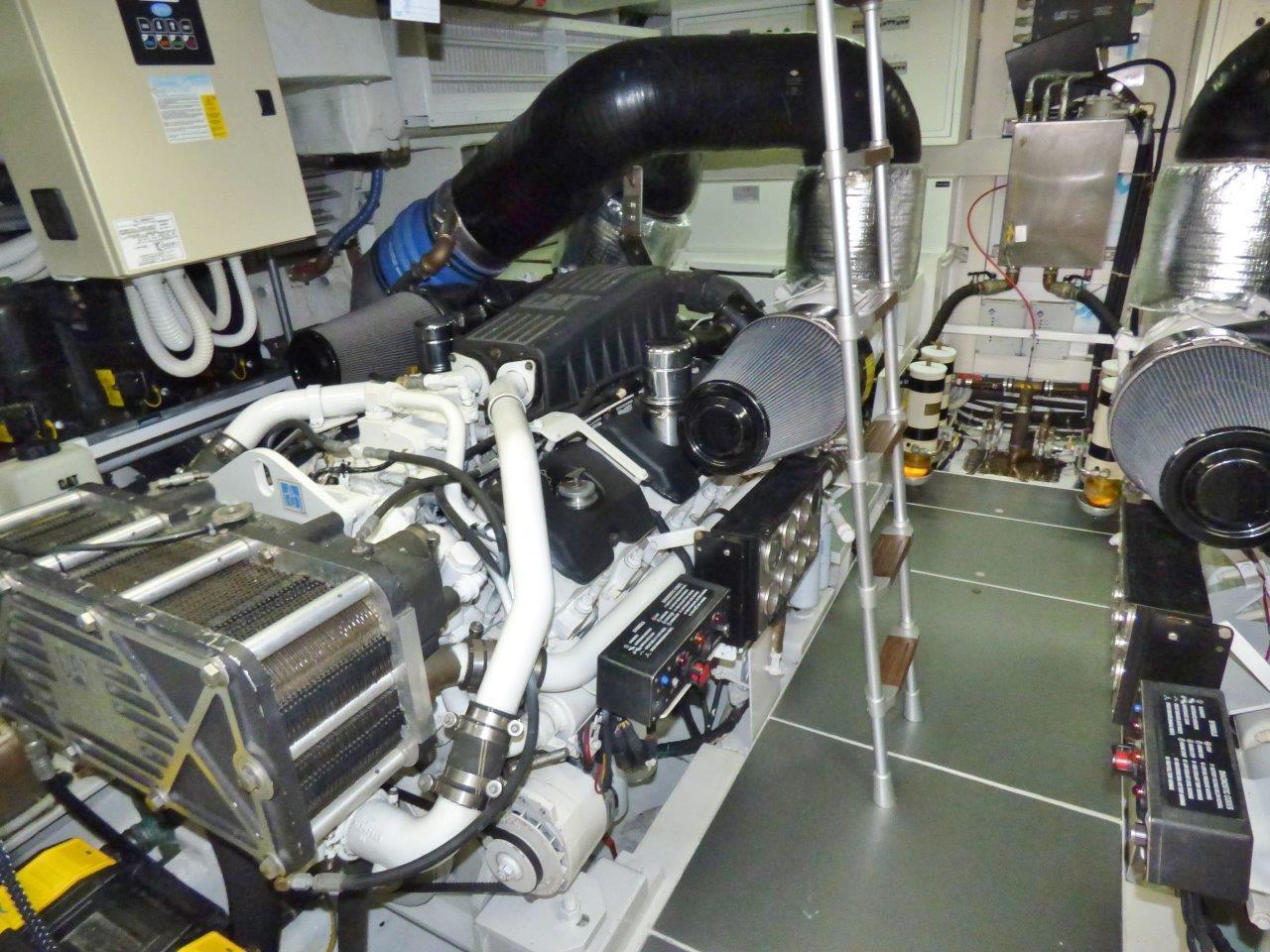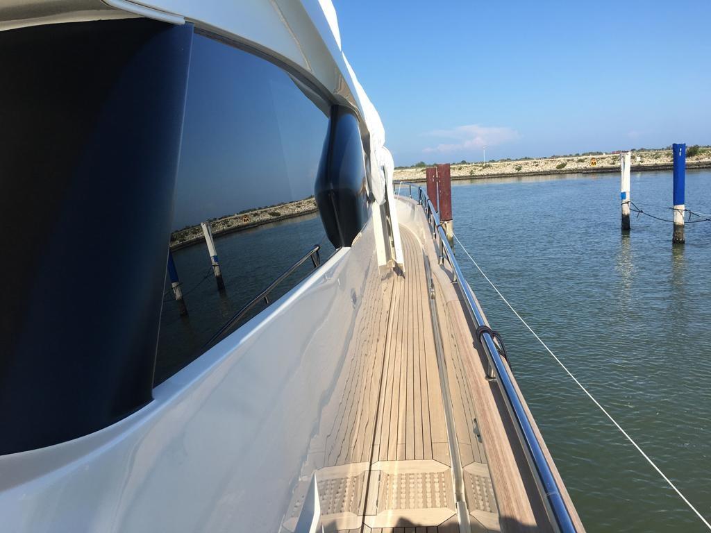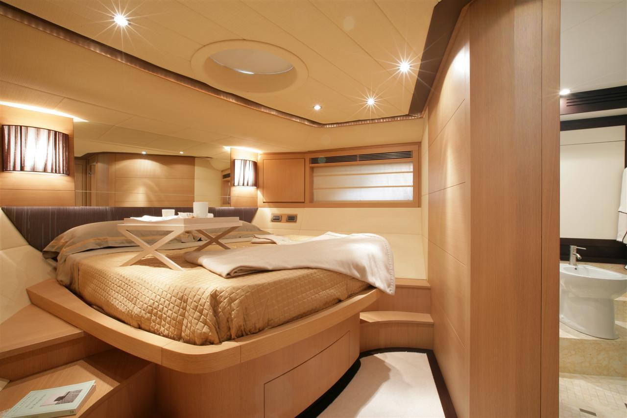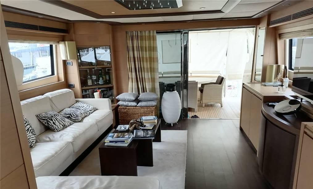 Alarme moteur, Alarme de pompe de cale, 2 Eau sous pression, 10 Batteries, Passavant en teck, 2 Chargeur de batterie, Couleur spéciale, Douche de cockpit, Double barre à roue, Propulseur de poupe (idraulica), Propulseur d'étrave (idraulica), Flaps hydrauliques, Extincteur(s) fixe(s), Compresseur de plongée, Indicateurs de flaps, Lavage de chaine, Éclairage de courtoisie, Passerelle (a scomparsa), Plateforme arrière, 4 Pompe de cale automatique (con impianto centralizzato), Porte latérale, Porte latérale, Cockpit en teck, Prise de quai, Connexion eau sous pression à quai, Onduleur, Rollbar (fly), Guindeau électrique, Echelle de bain, table de cockpit, Corne, Pont en teck, 2 Winch électrique arrière.