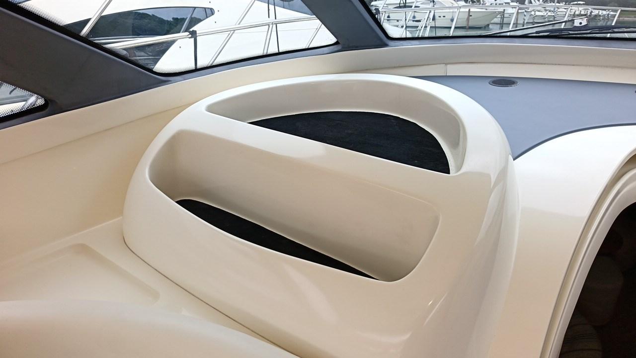 Alarme moteur, Alarme de pompe de cale, Eau sous pression, Couleur spéciale, Douche de cockpit, Hard top, Extincteur(s) fixe(s), Éclairage de courtoisie, Spots sous-marins, Passerelle (Idraulica), Plateforme arrière, Pompe de cale manuelle, Cockpit en teck, Prise de quai, Onduleur, Guindeau électrique, Echelle de bain, Corne.