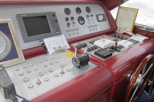 Indicateur d'angle de barre, Antenne radar, Commande électrique, Ordinateur fixe de bord, Compteur de chaîne, Moniteur, Sondeur pêche (Raymarine), Interphone, Pilote automatique (Navionics), Radar (Furuno).