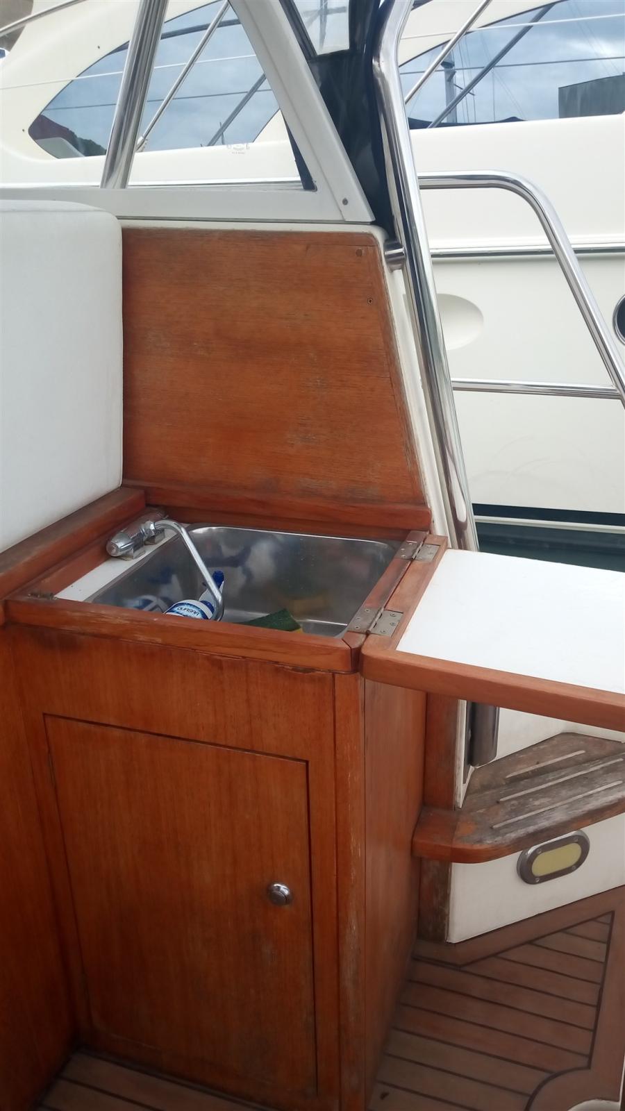 Alarme moteur, Alarme de pompe de cale, Eau sous pression, Passavant en teck, Douche de cockpit, Flaps hydrauliques, Extincteur(s) fixe(s), Indicateurs de flaps, Éclairage de courtoisie, Spots sous-marins, Plateforme arrière, Pompe de cale automatique, Cockpit en teck, Prise de quai, Onduleur, Rollbar, Guindeau électrique, Echelle de bain, table de cockpit, Corne.