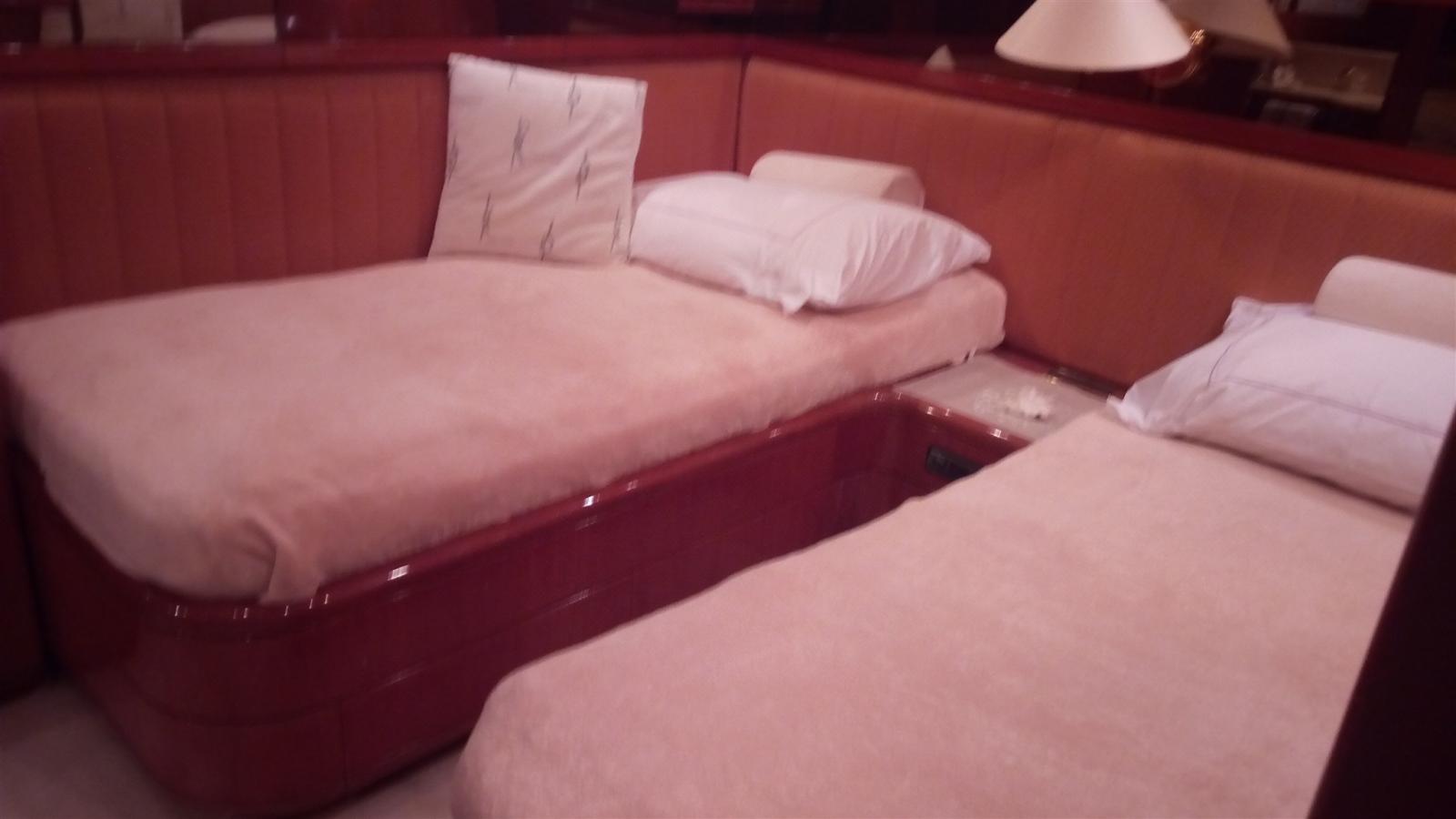 Alarme moteur, Alarme de pompe de cale, 2 Ligne d'arbre de rechange, Eau sous pression, Passavant en teck, Douche de cockpit, Double barre à roue, Phares fixes arrière, Phare de poursuite, Flaps hydrauliques, Grue de flybridge, Extincteur(s) fixe(s), Indicateurs de flaps, Lavage de chaine, Éclairage de courtoisie, Spots sous-marins, Passerelle (IDRAULICA), Plateforme arrière, Pompe de cale automatique, Cockpit en teck, Prise de quai, Onduleur, Rollbar, Guindeau électrique, Echelle de coupée, Echelle de bain, Système de filtration des eaux usées, table de cockpit, Annexe, Corne, Winch hydraulique, Winch électrique arrière, Winch électrique avant.