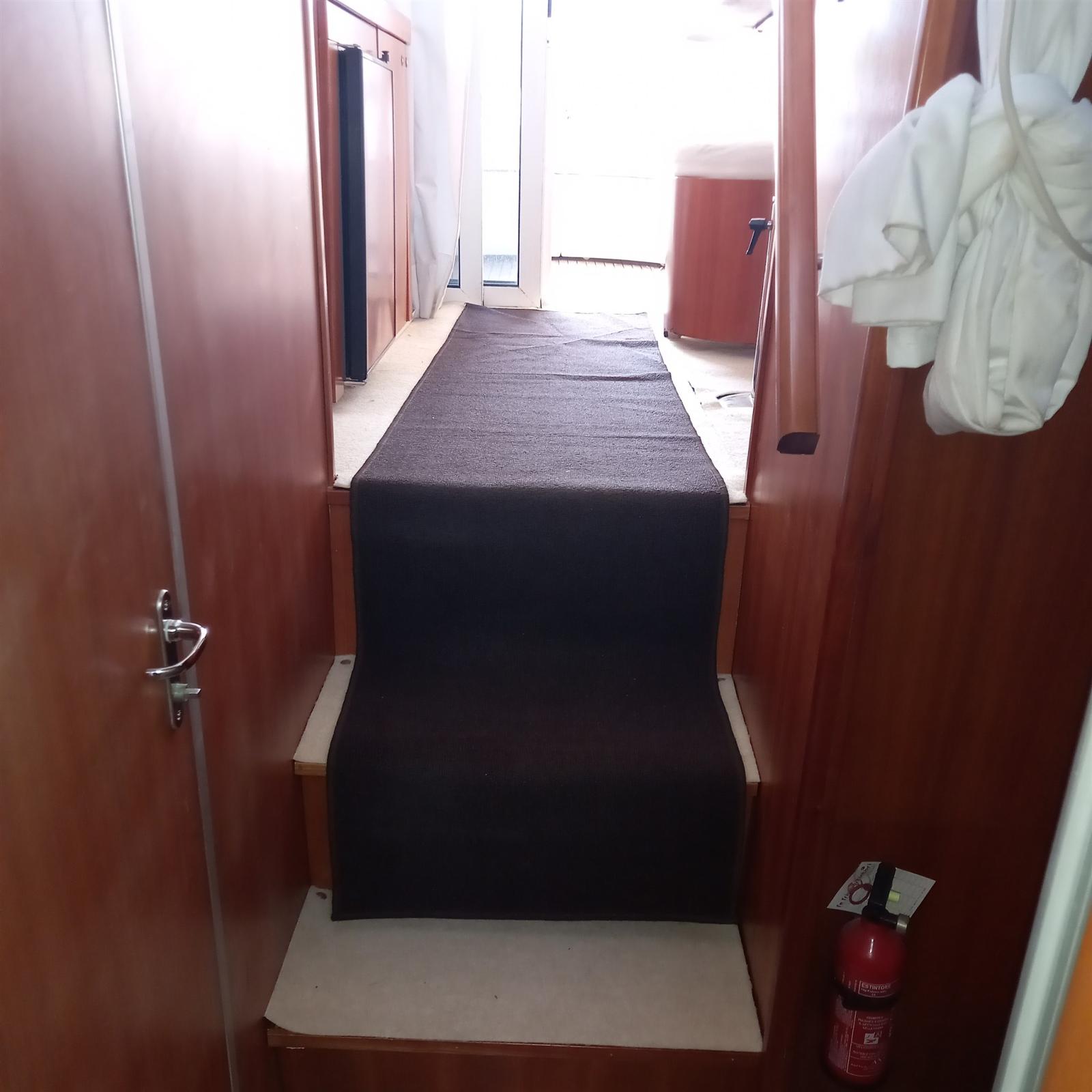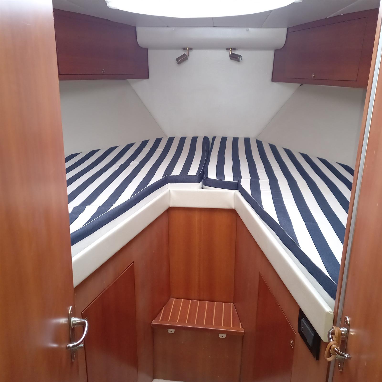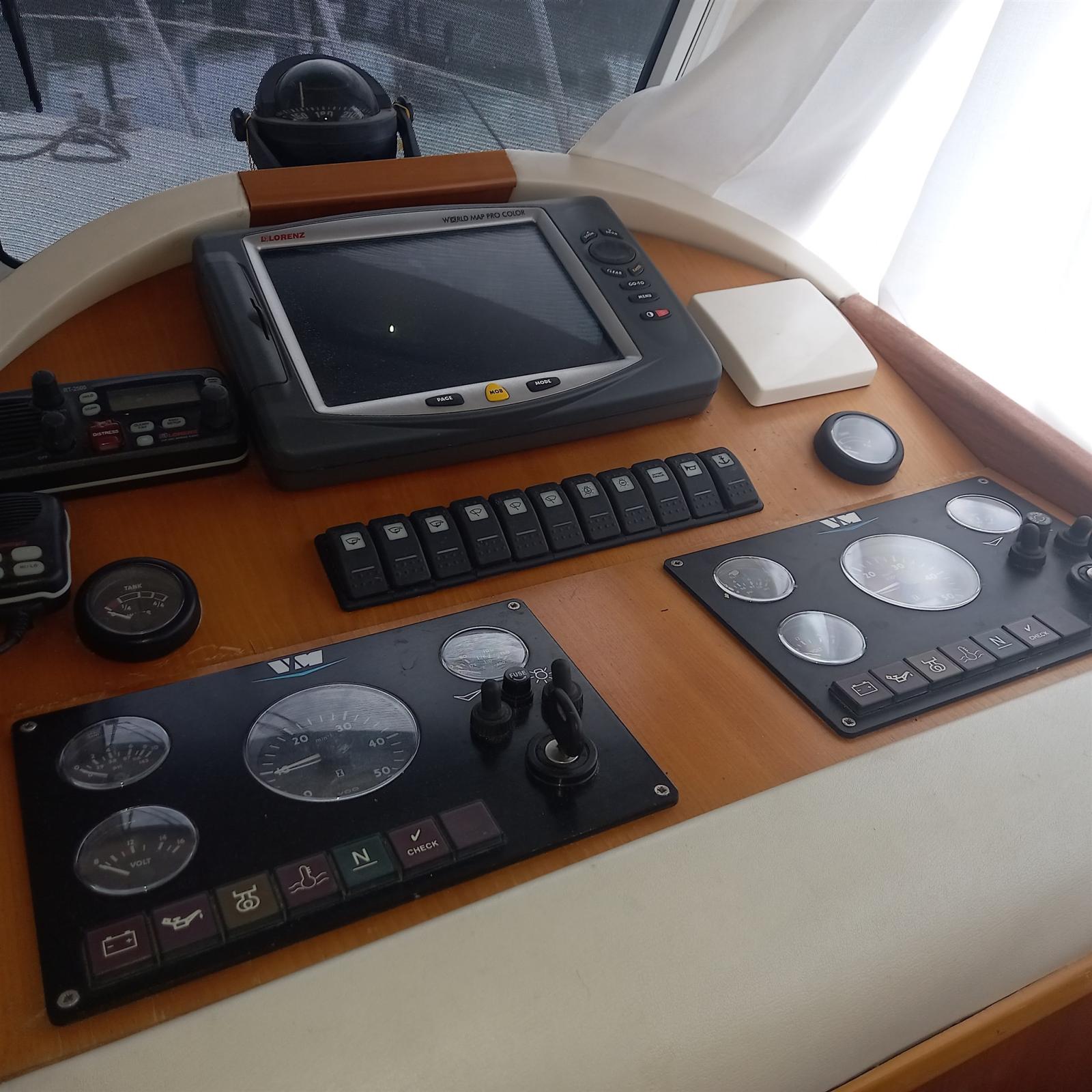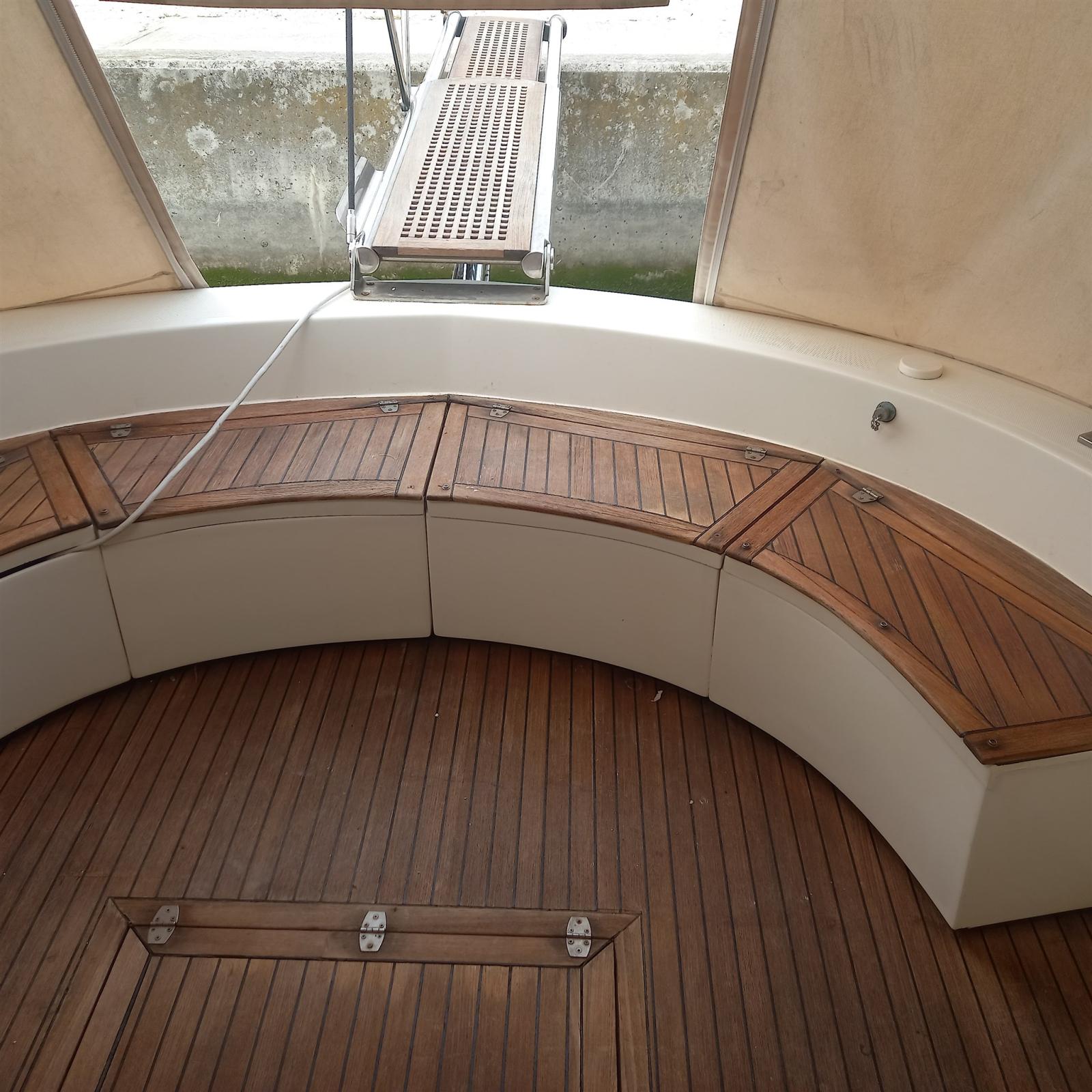 Alarme moteur, Alarme de pompe de cale, Eau sous pression, Couleur spéciale, Douche de cockpit, Double barre à roue, Phare de poursuite, Flaps hydrauliques, Extincteur(s) fixe(s), Indicateurs de flaps, Éclairage de courtoisie, Passerelle (Idraulica), Plateforme arrière, Pompe de cale automatique, Cockpit en teck, Prise de quai, Rollbar, Guindeau électrique, Echelle de bain, table de cockpit, Corne.
