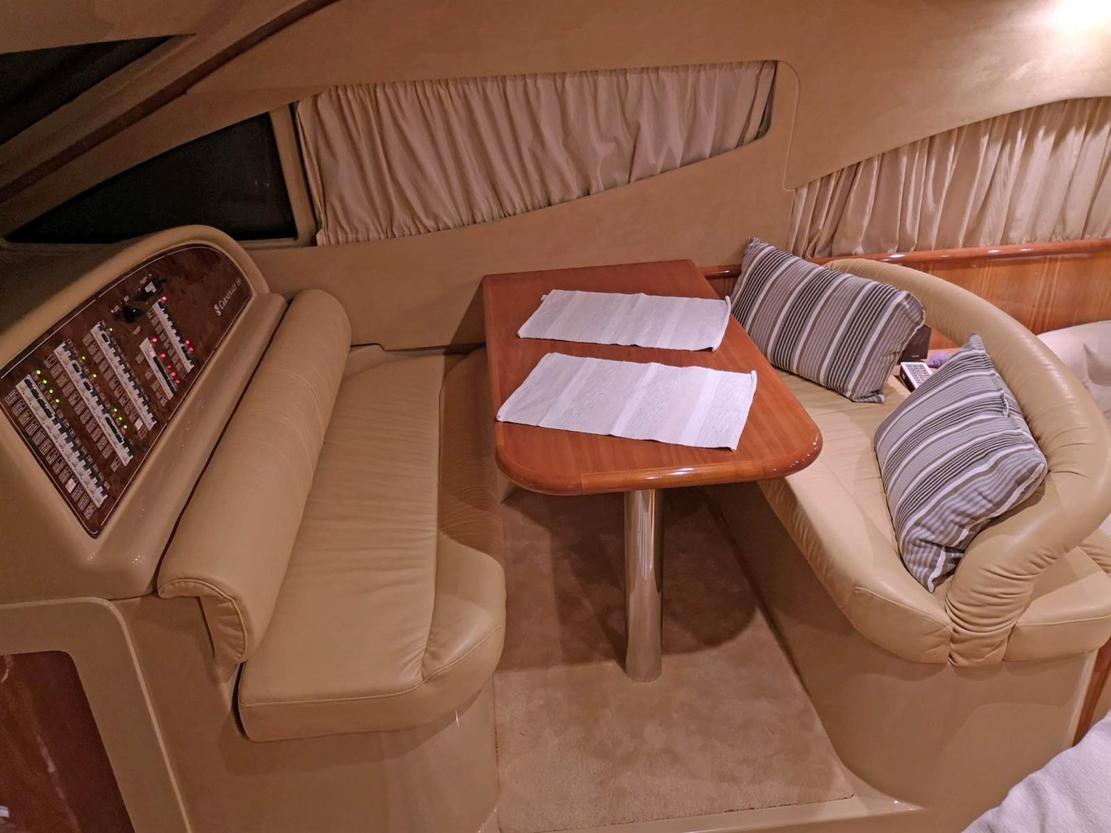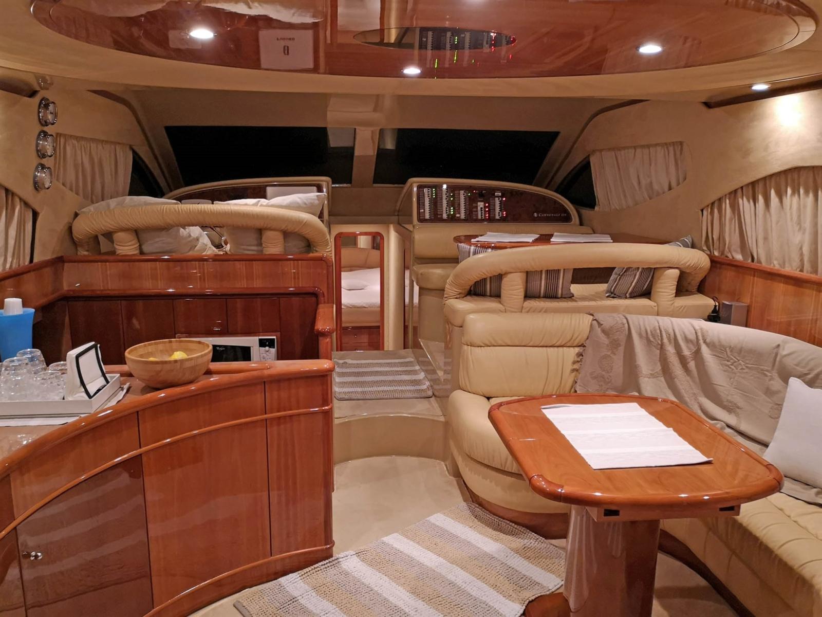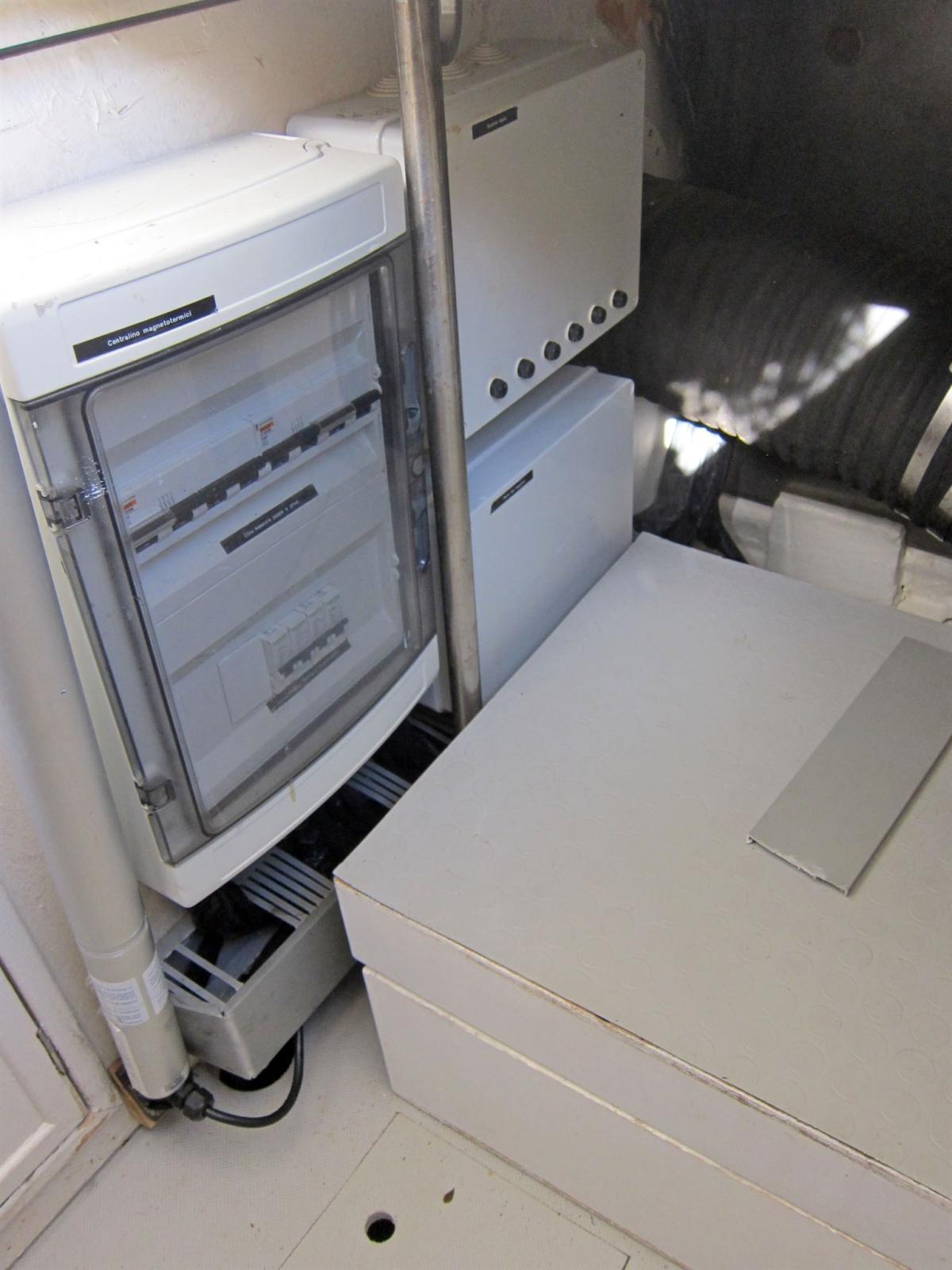 Alarme moteur, Alarme de pompe de cale, Eau sous pression, Chargeur de batterie (MASTERVOLT CHARGERMASTER), Douche de cockpit, Double barre à roue, Propulseur de poupe (SIDE POWER), Propulseur d'étrave (SIDE POWER), Phare de poursuite, Flaps hydrauliques, Extincteur(s) fixe(s), Indicateurs de flaps, Éclairage de courtoisie, Spots sous-marins, Passerelle (Idraulica), Plateforme arrière, Pompe de cale automatique, Cockpit en teck, Prise de quai, Onduleur, Rollbar, Guindeau électrique, Echelle de bain, Système de filtration des eaux usées, table de cockpit, Corne, Winch électrique arrière, Winch électrique avant.