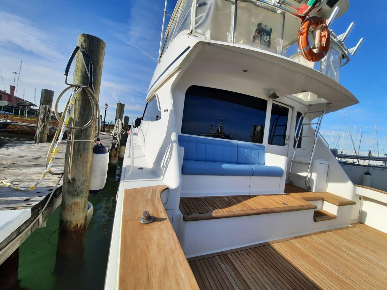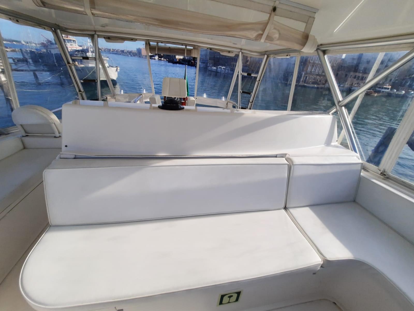 Alarme gaz, Alarme moteur, Alarme de pompe de cale, Eau sous pression, Batteries (Kit completo motori e servizi), Système de vidange, Douche de cockpit, Phare de poursuite, Flaps hydrauliques, Extincteur(s) fixe(s), Indicateurs de flaps, Lavage de chaine, Éclairage de courtoisie, Spots sous-marins, Passerelle (iDRAULICA), Pompe de cale automatique, Porte latérale, Cockpit en teck, Prise de quai, Connexion eau sous pression à quai, Rollbar, Guindeau électrique, Echelle de coupée, Echelle de bain, Système de filtration des eaux usées, Corne, T-Top, Winch, Winch électrique arrière, Winch électrique avant.