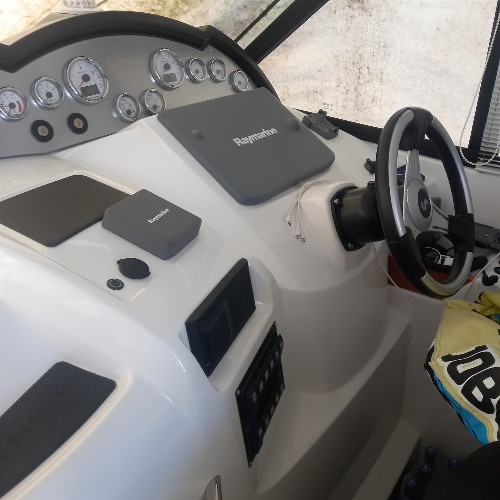 Alarme moteur, Alarme de pompe de cale, Eau sous pression, 3 Batteries, Douche de cockpit, Flaps hydrauliques, Extincteur(s) fixe(s), Indicateurs de flaps, Éclairage de courtoisie, Passerelle (Idraulica), Plateforme arrière, Pompe de cale automatique, Cockpit en teck, Prise de quai, Rollbar, Guindeau électrique, Echelle de bain, Système de filtration des eaux usées, table de cockpit, Corne.