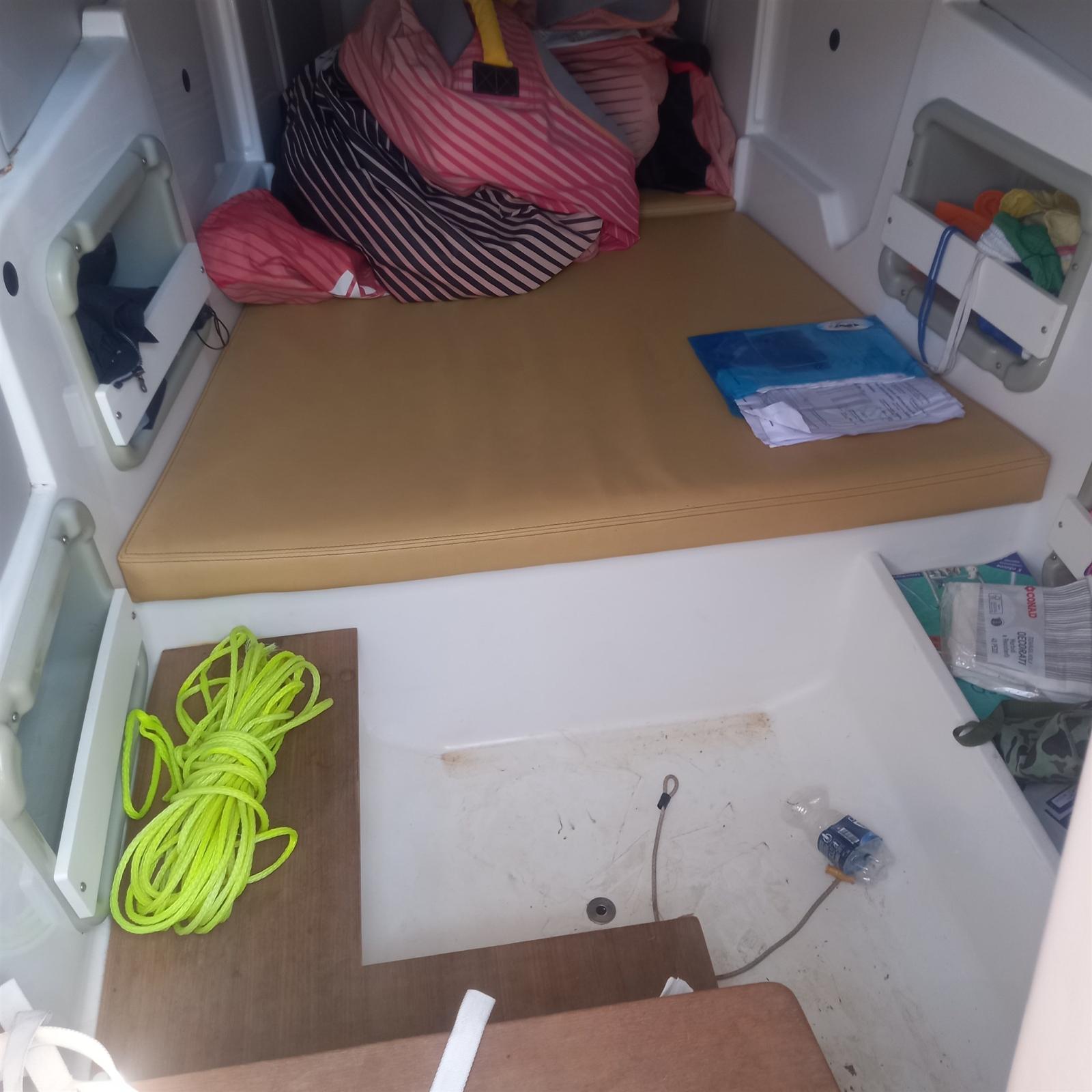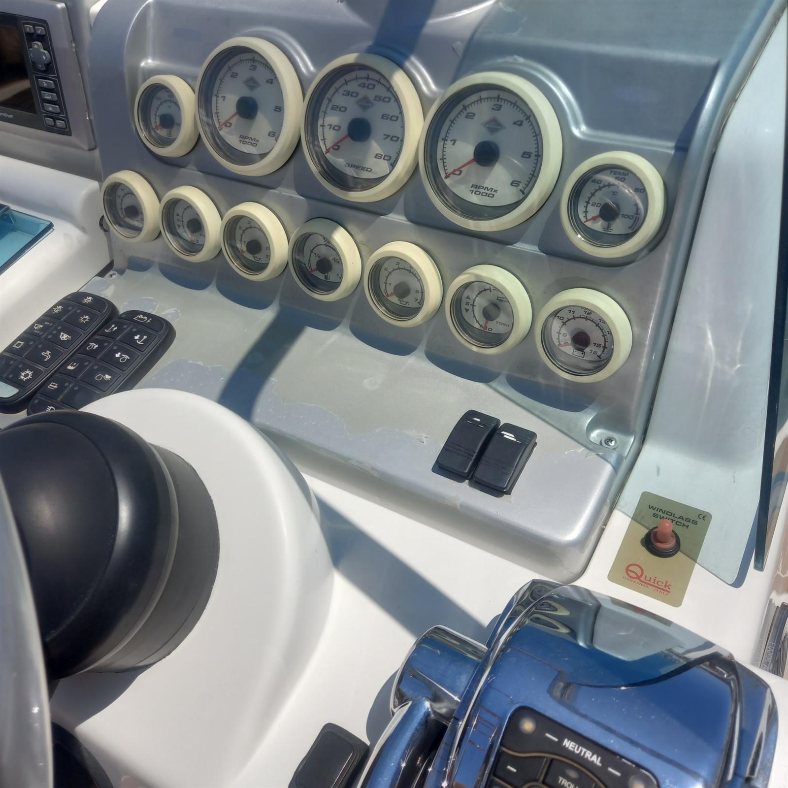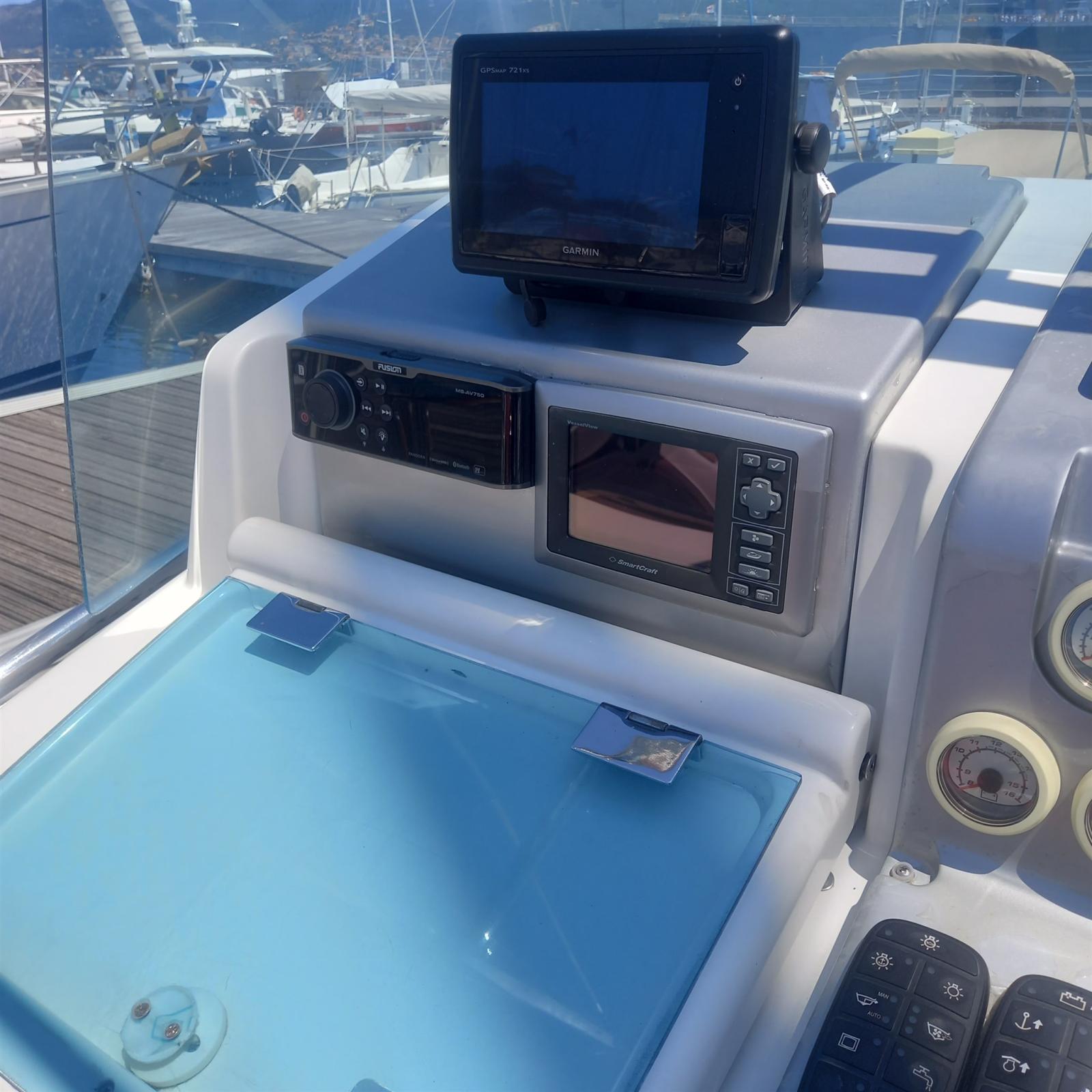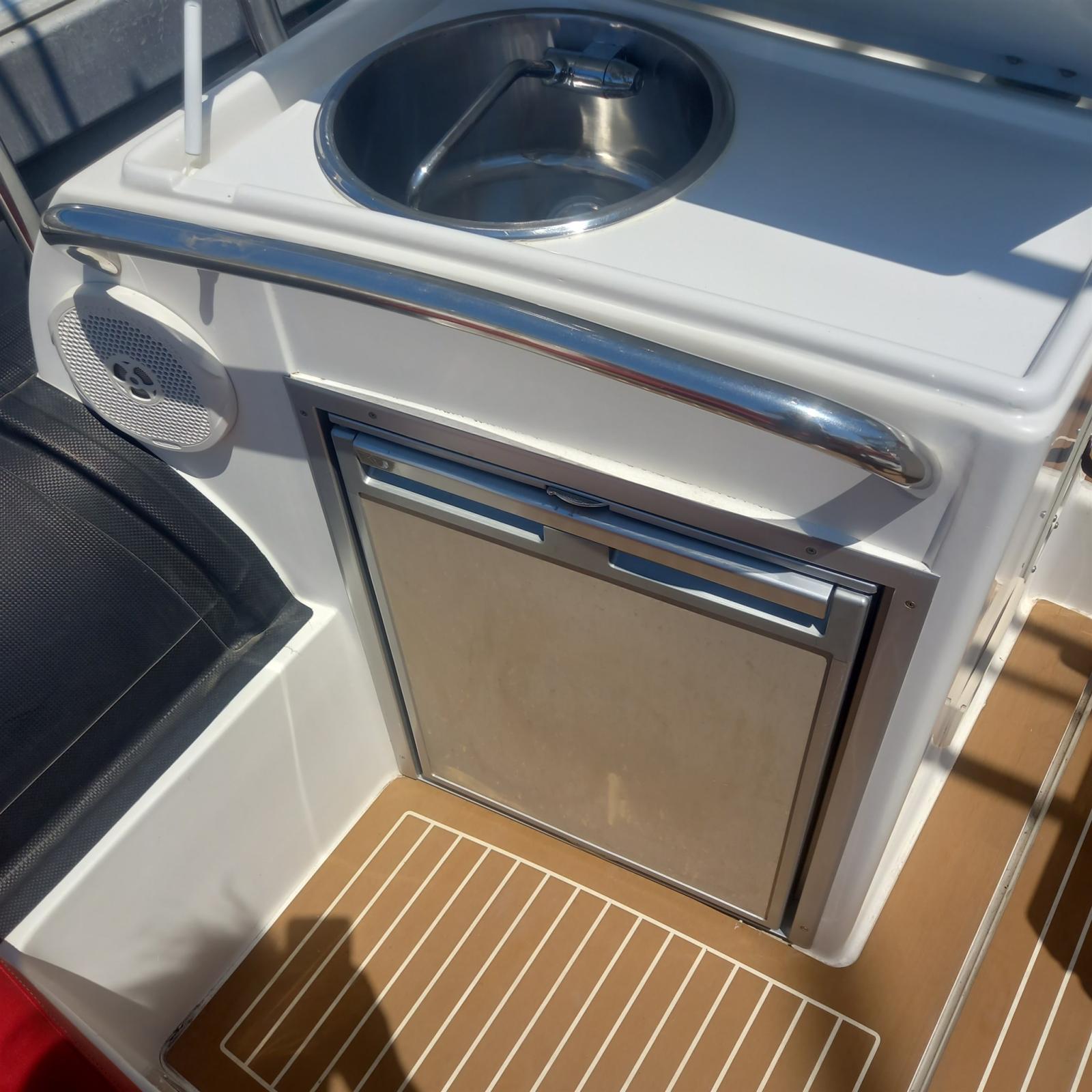 Alarme moteur, Alarme de pompe de cale, Ouverture du compartiment moteur électrique, Eau sous pression, 3 Batteries, Douche de cockpit, Extincteur(s) fixe(s), Éclairage de courtoisie, Spots sous-marins, Plateforme arrière, Pompe de cale automatique, Cockpit en teck, Prise de quai, Rollbar, Guindeau électrique, Echelle de bain, Table, Corne.