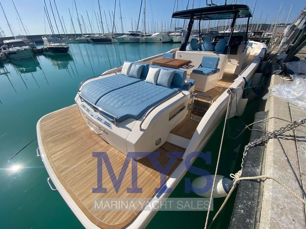 Belle ouverture avec un design captivant. L’arc inversé donne à ce nouveau né dans la maison des Caïmans un ton jeune et moderne. Une navigabilité exceptionnelle et une coque rapide et sûre confèrent à ce bateau la plus haute marche de l’open moderne. L’œuvre d’art est complétée par les finitions de haut niveau auxquelles les propriétaires des îles Caïmans sont habitués.