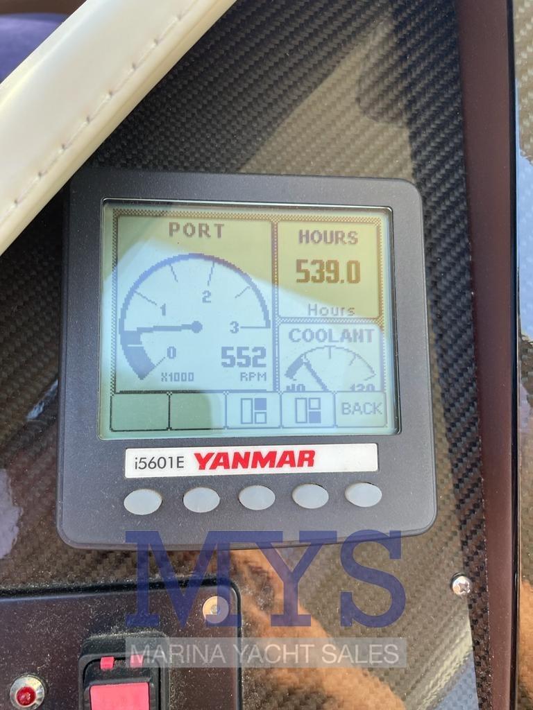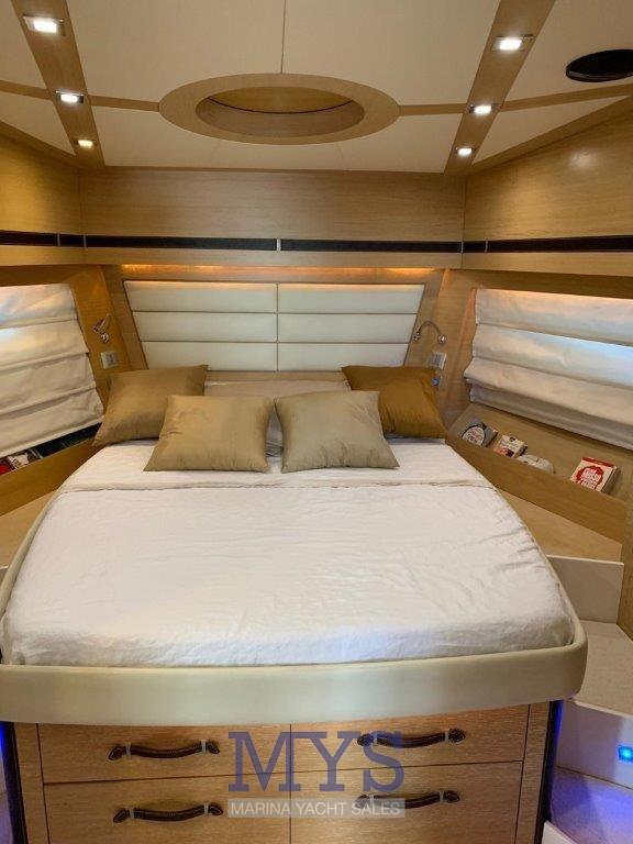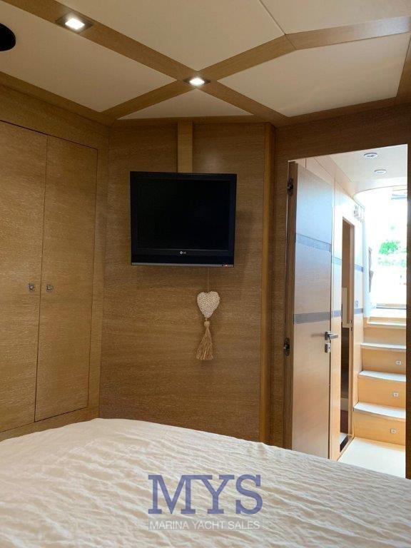 Alarme moteur, Alarme de pompe de cale, Ancre (Bruce), Eau sous pression, 8 Batteries, Passavant en teck, Couleur spéciale, Douche de cockpit, Phare de poursuite, Flaps hydrauliques, Garage à annexe, Hard top (elettrico), Extincteur(s) fixe(s), Indicateurs de flaps, Lavage de chaine, Éclairage de courtoisie, Spots sous-marins, Panneau solaire, Passerelle (idraulica a scomparsa), Plateforme arrière (Elettro-idraulica), Pompe de cale automatique, Pompe de cale manuelle, Porte latérale, Cockpit en teck, Prise de quai, Guindeau électrique, Echelle de bain, Système de filtration des eaux usées, table de cockpit, Annexe (da mt 3,5 con motore FB), Corne, 2 Winch électrique arrière, Winch électrique avant.