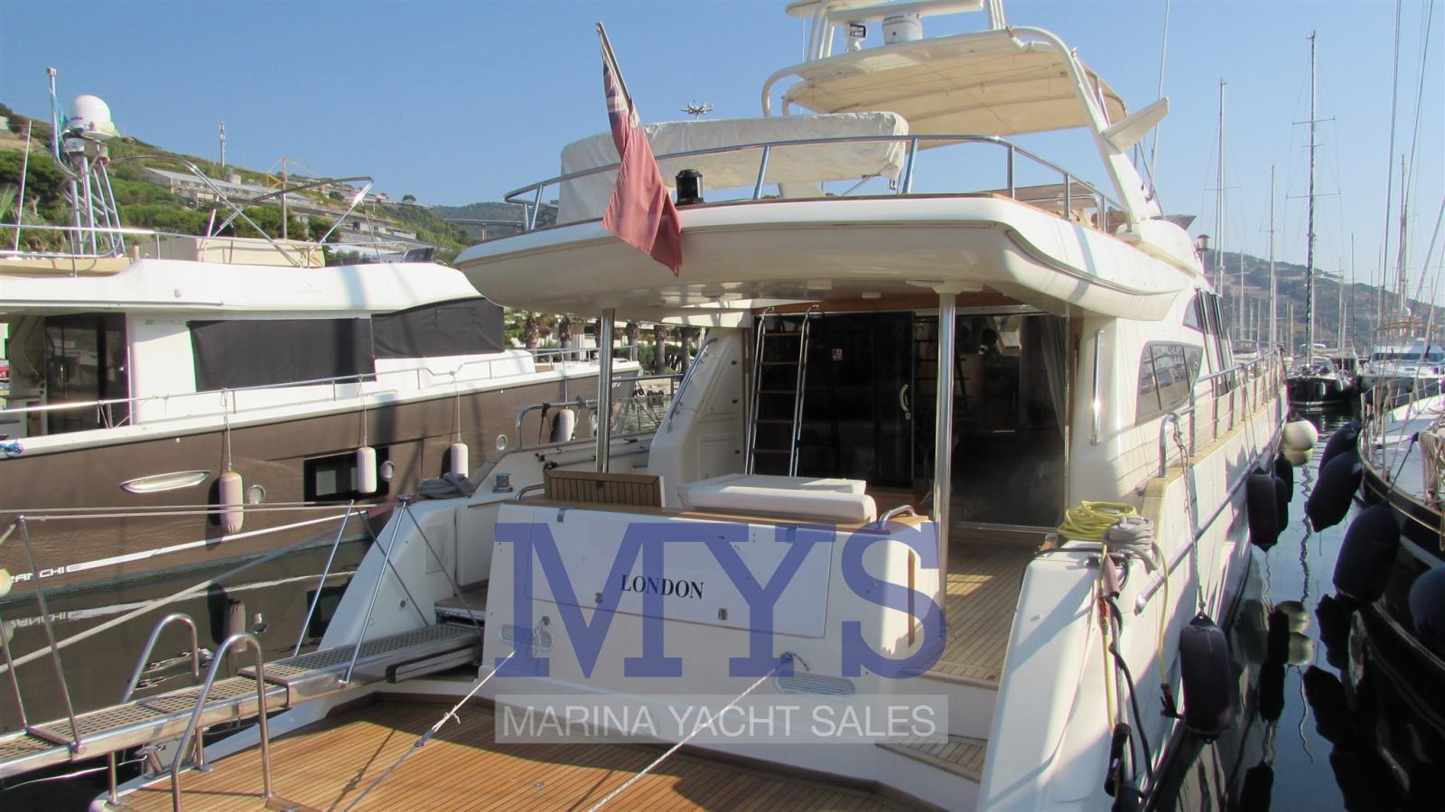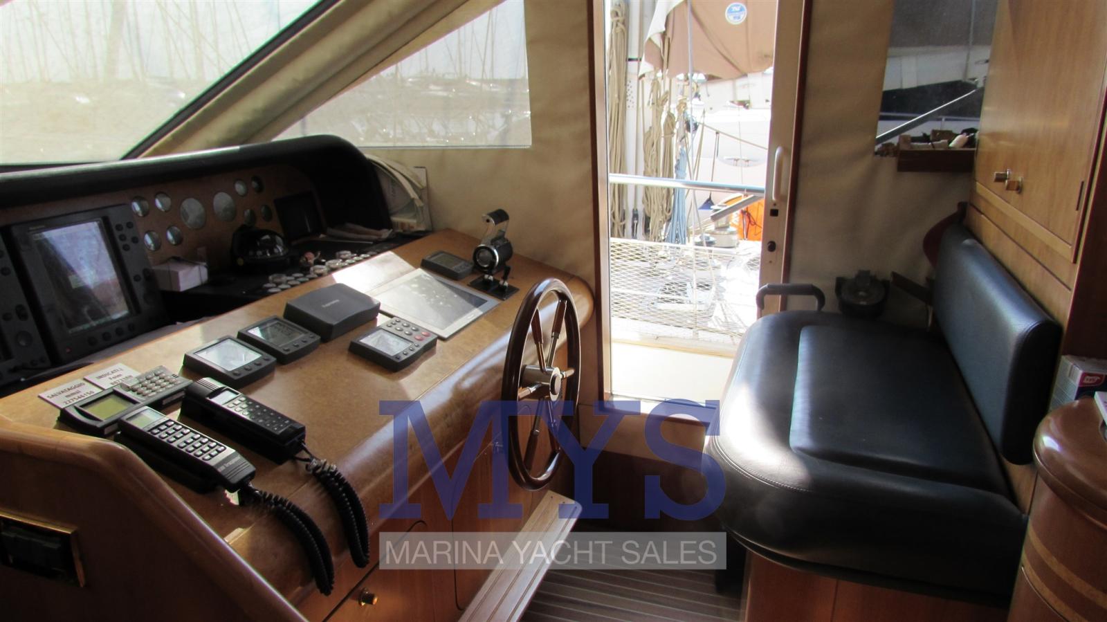 Alarme moteur, Alarme de pompe de cale, Eau sous pression, 8 Batteries (sostituite nel 2020), Passavant en teck, 2 Chargeur de batterie, 2 Douche de cockpit (poppa/prua calda/fredda), Double barre à roue, Phare de poursuite, Flaps électriques, Grue de flybridge (500 Kg), Extincteur(s) fixe(s), Indicateurs de flaps, Lavage de chaine, Éclairage de courtoisie, Spots sous-marins, Passerelle (idraulica Opacmare), Plateforme arrière, Porte latérale, 2 Porte latérale, Cockpit en teck, Prise de quai, Connexion eau sous pression à quai, 3 Répétiteur électronique, Rollbar, Guindeau électrique, Echelle de bain, Système de filtration des eaux usées, table de cockpit, Corne, 2 Winch électrique, Winch électrique arrière.