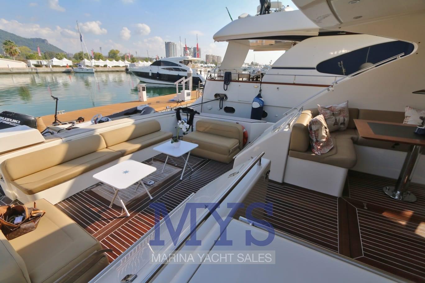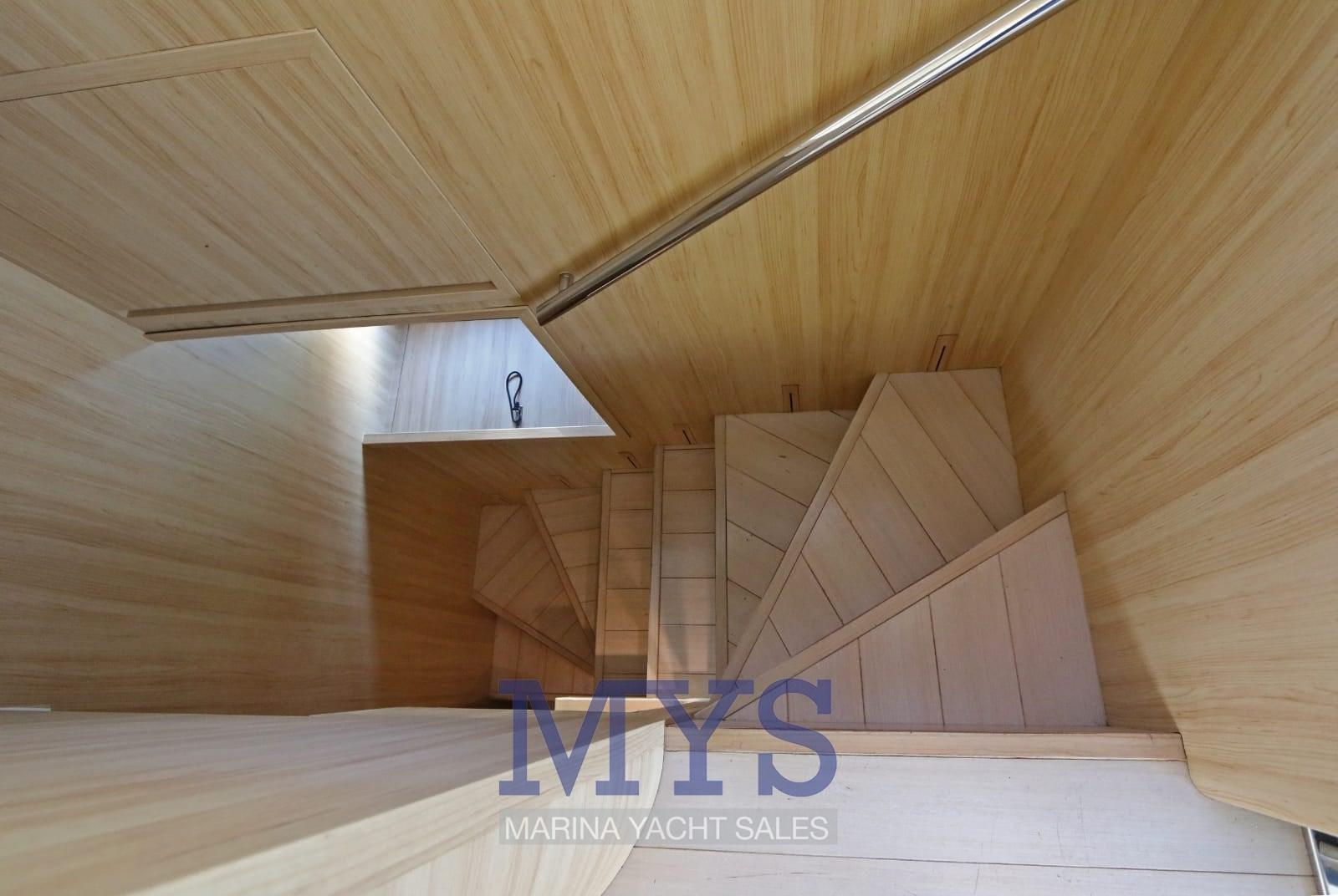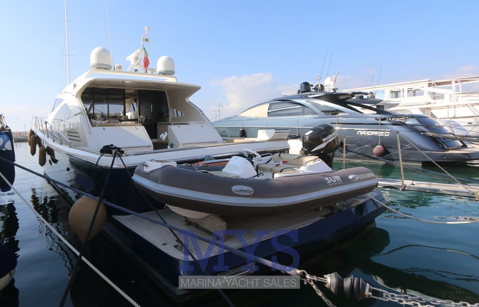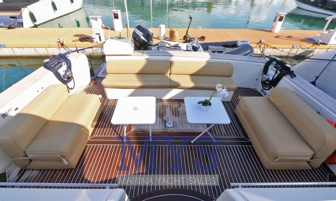 Alarme de pompe de cale, Eau sous pression, Passavant en teck, Couleur spéciale (Scafo blu), Douche de cockpit, Flaps hydrauliques, Lavage de chaine, Passerelle (idraulica), Plateforme arrière (in teak), Pompe de cale automatique, Cockpit en teck, Prise de quai, Guindeau électrique, Echelle de bain, table de cockpit.