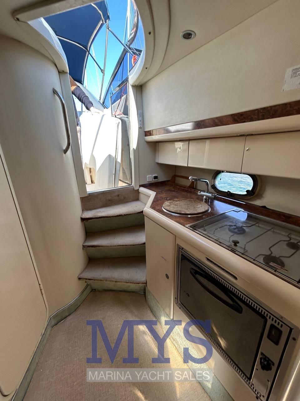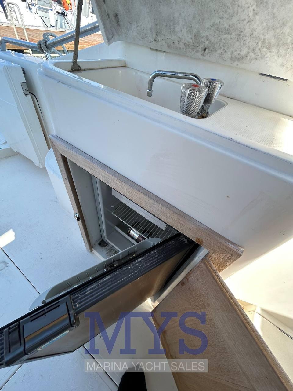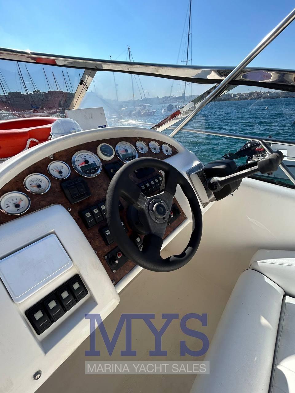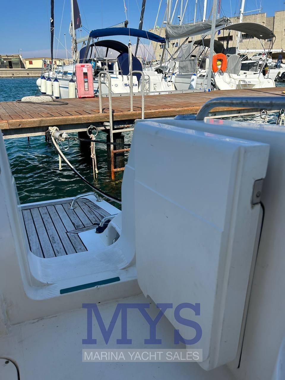 Eau sous pression, 4 Batteries, Douche de cockpit, Phare de poursuite, Flaps électriques, Passerelle (idraulica), Plateforme arrière (fissa in teak), Cockpit en teck, Prise de quai, Rollbar, Guindeau électrique, Echelle de bain, Annexe.