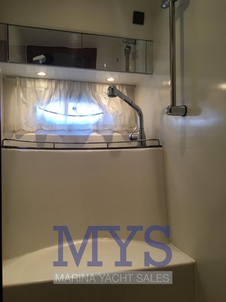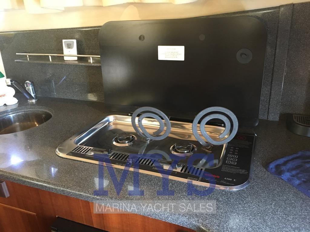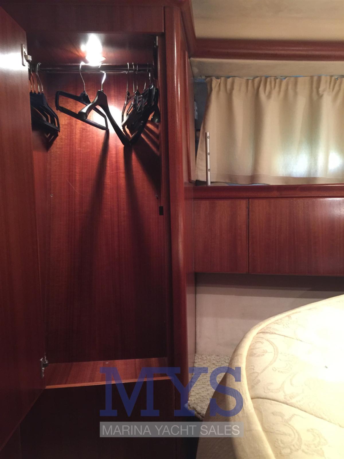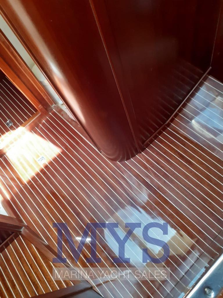 Alarme moteur, Alarme de pompe de cale, 2 Ancre (+ 100 mt. catena), Eau sous pression, 4 Batteries (800 Amp), Douche de cockpit (Calda /Fredda), Double barre à roue, Phare de poursuite, Flaps électriques, Indicateurs de flaps, Moteur d'annexe, Passerelle (Idraulica), Plateforme arrière (Rivestita teak), Pompe de cale automatique, Pompe de cale manuelle, Porte latérale, Cockpit en teck, Prise de quai, Onduleur, Rollbar, Guindeau électrique, Echelle de bain, Corne, T-Top, Winch électrique avant.