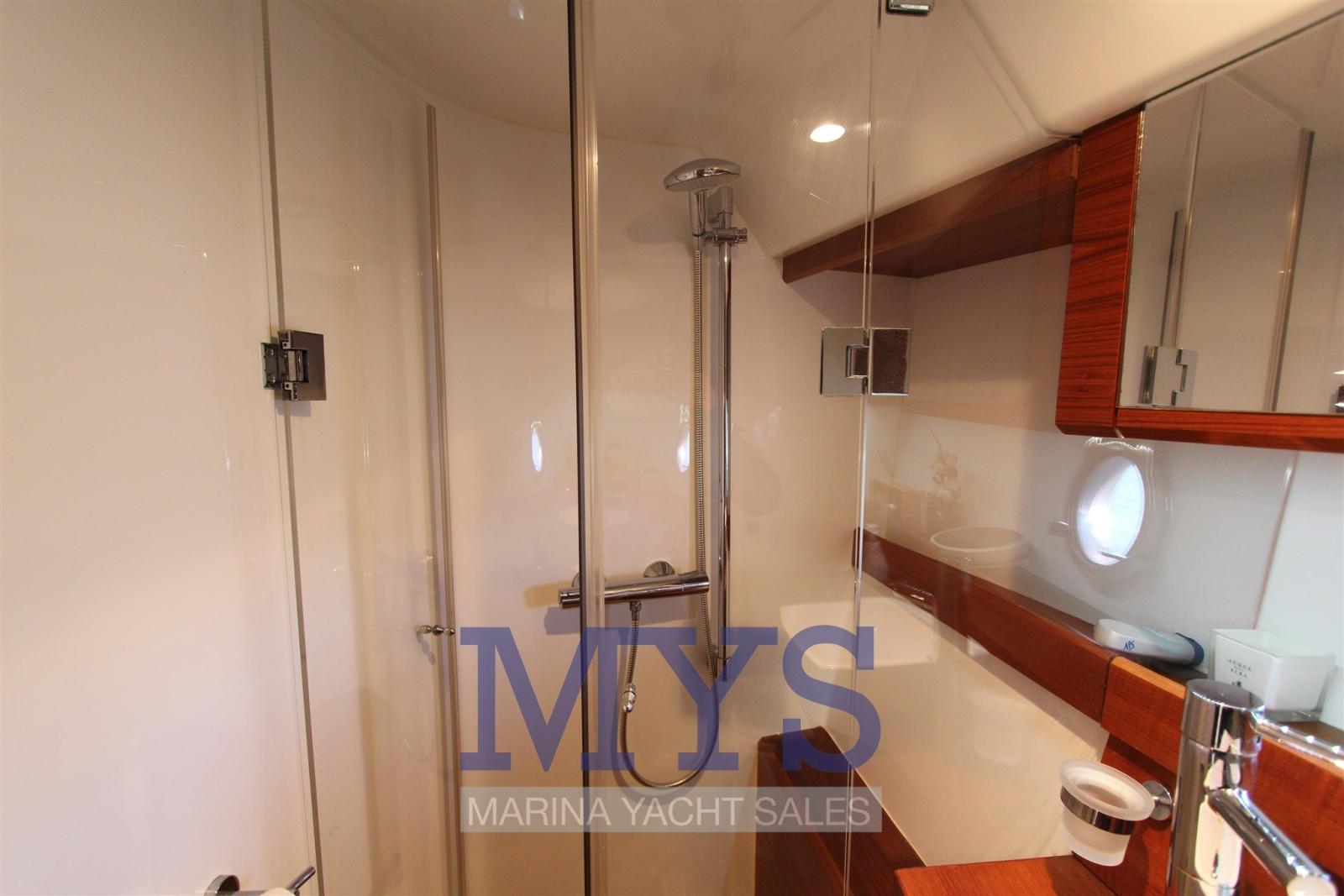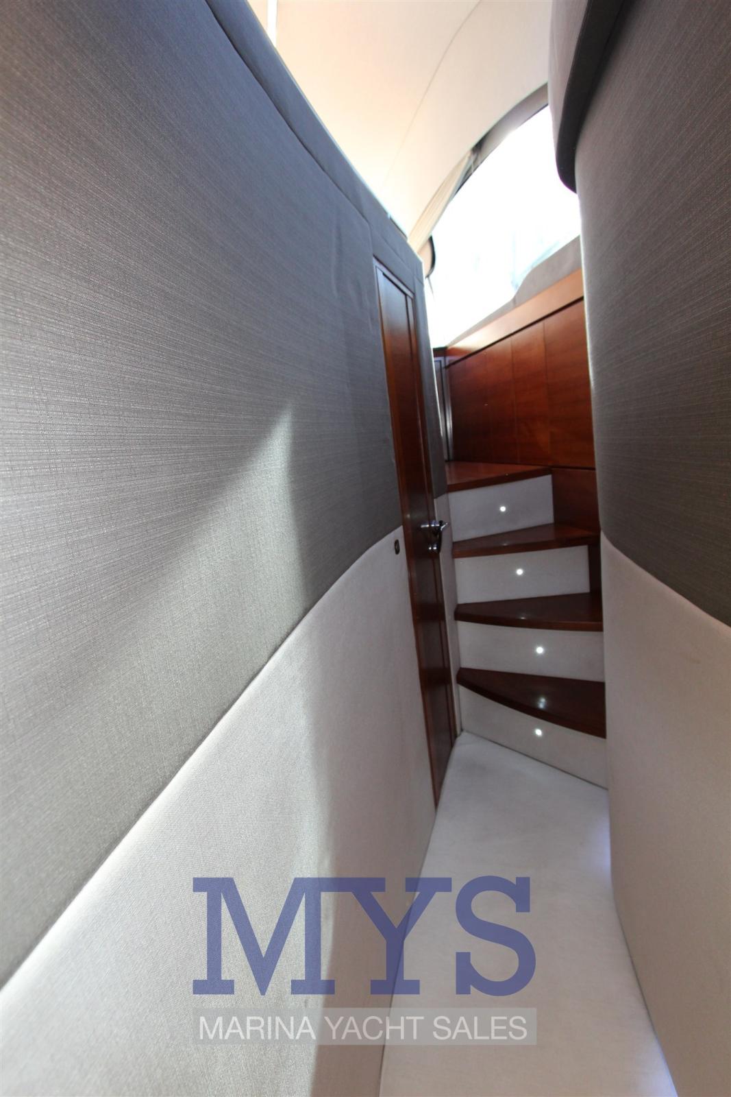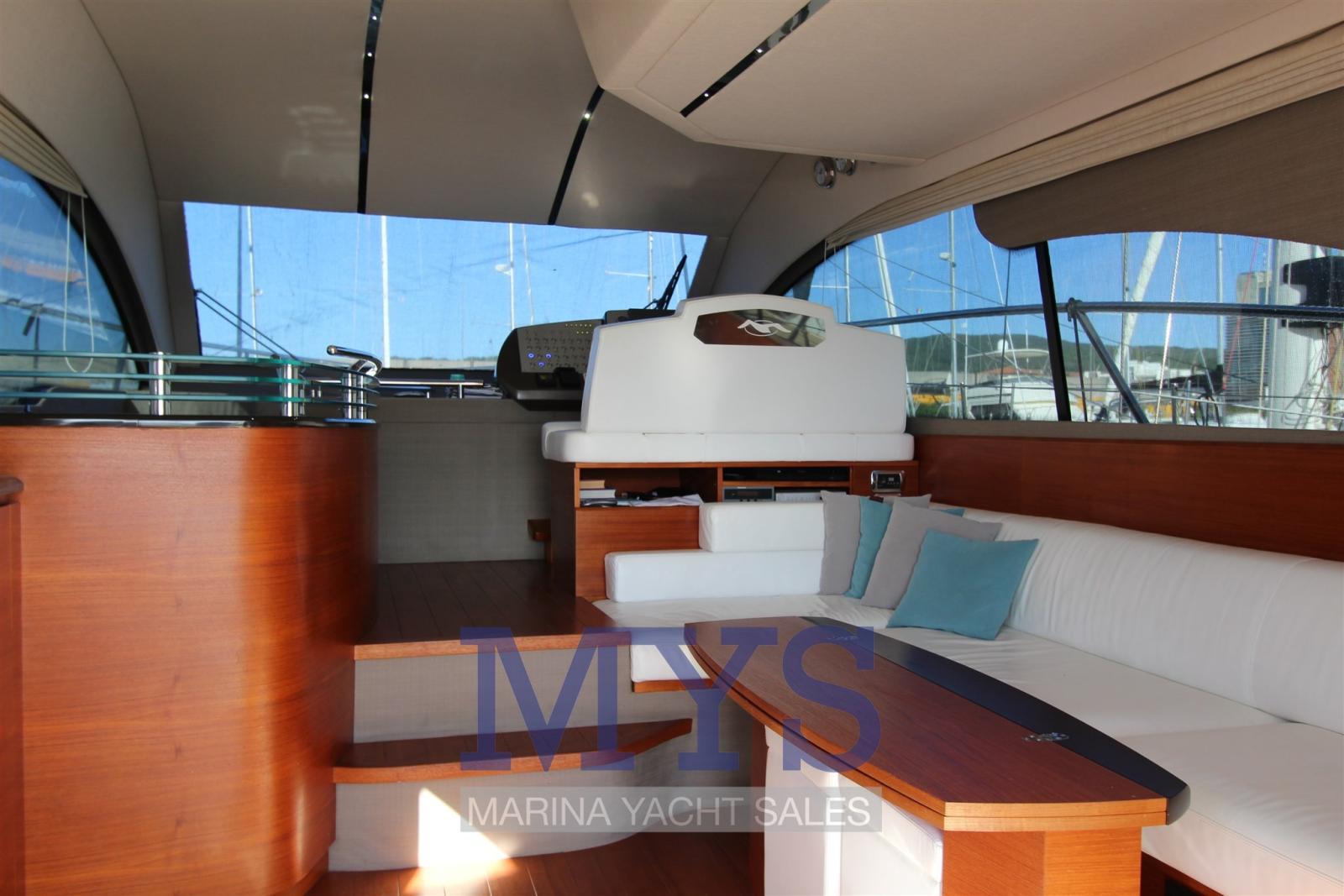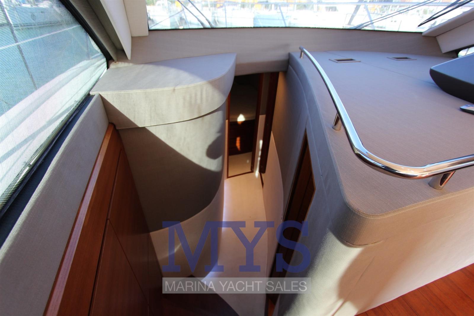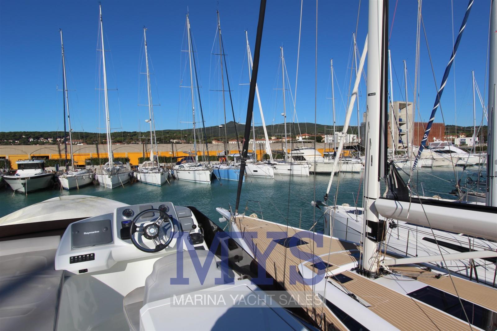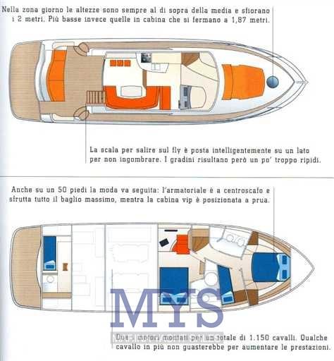 Alarme moteur, Alarme de pompe de cale, Eau sous pression, Couleur spéciale (Grigio), Douche de cockpit, Double barre à roue, Flaps hydrauliques, Lavabo dans le cockpit, Éclairage de courtoisie, Spots sous-marins, Passerelle (idraulica), Plateforme arrière, Pompe de cale automatique, Pompe de cale manuelle, Porte latérale, Cockpit en teck, Prise de quai, Connexion eau sous pression à quai, Rollbar, Guindeau électrique, Echelle de bain, Selles pour Annexe, table de cockpit, 2 Winch électrique arrière.