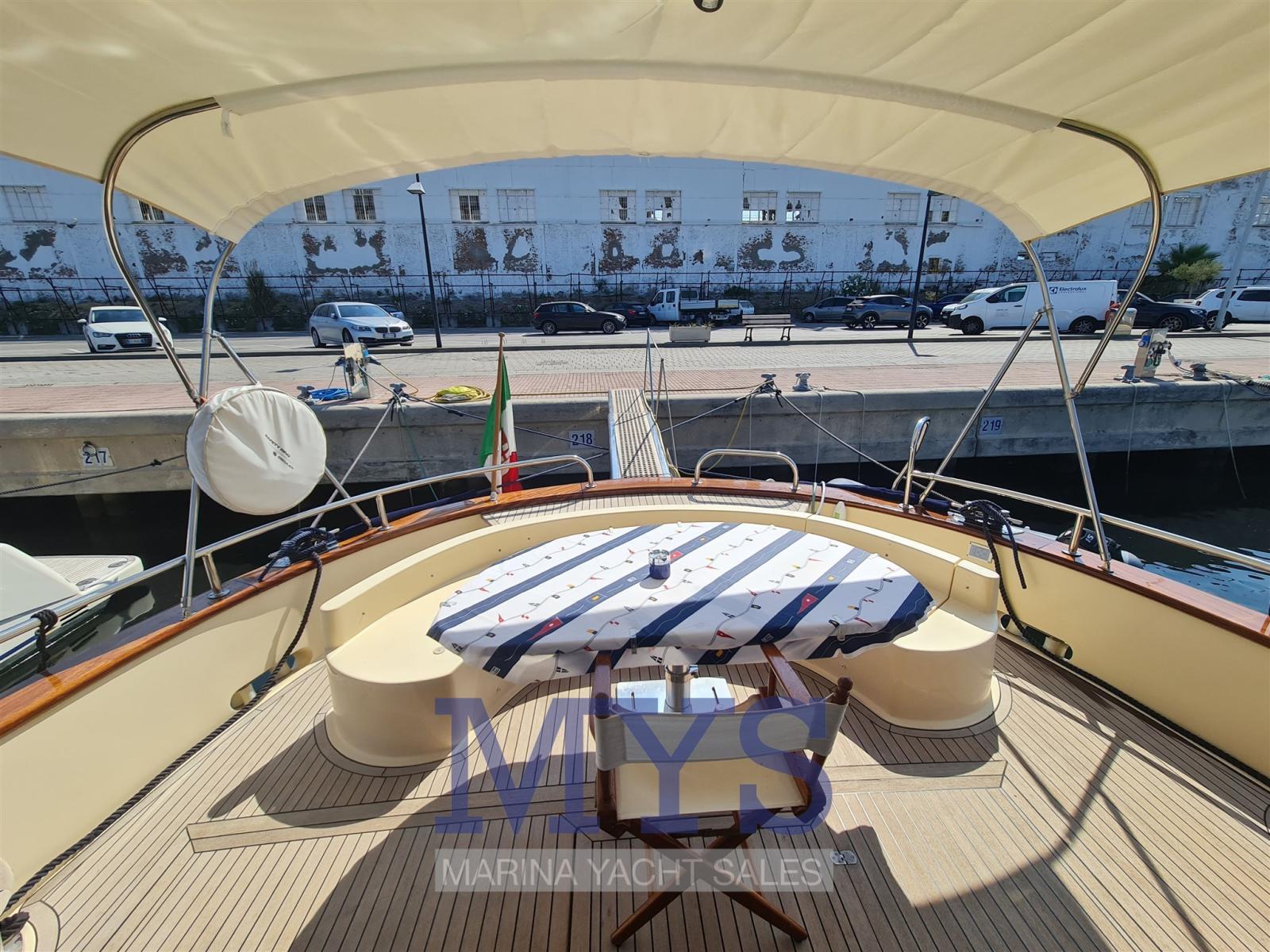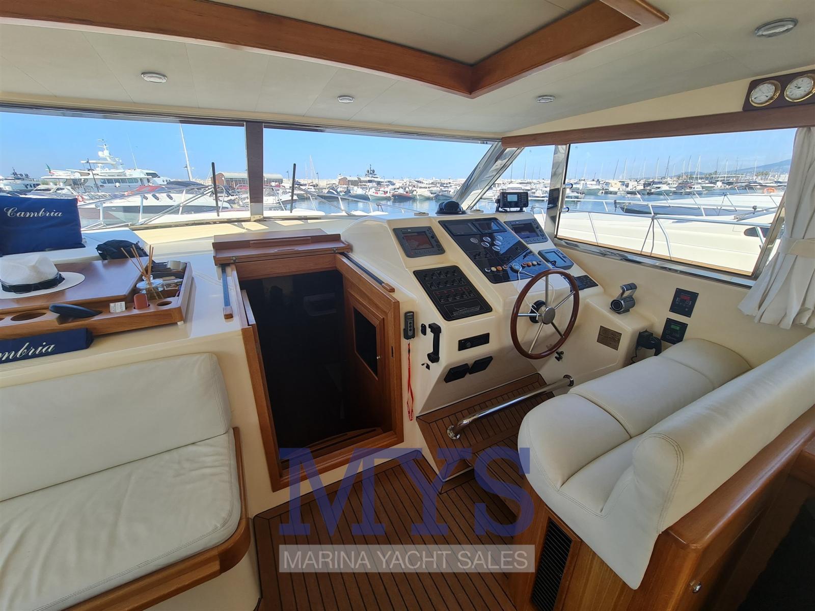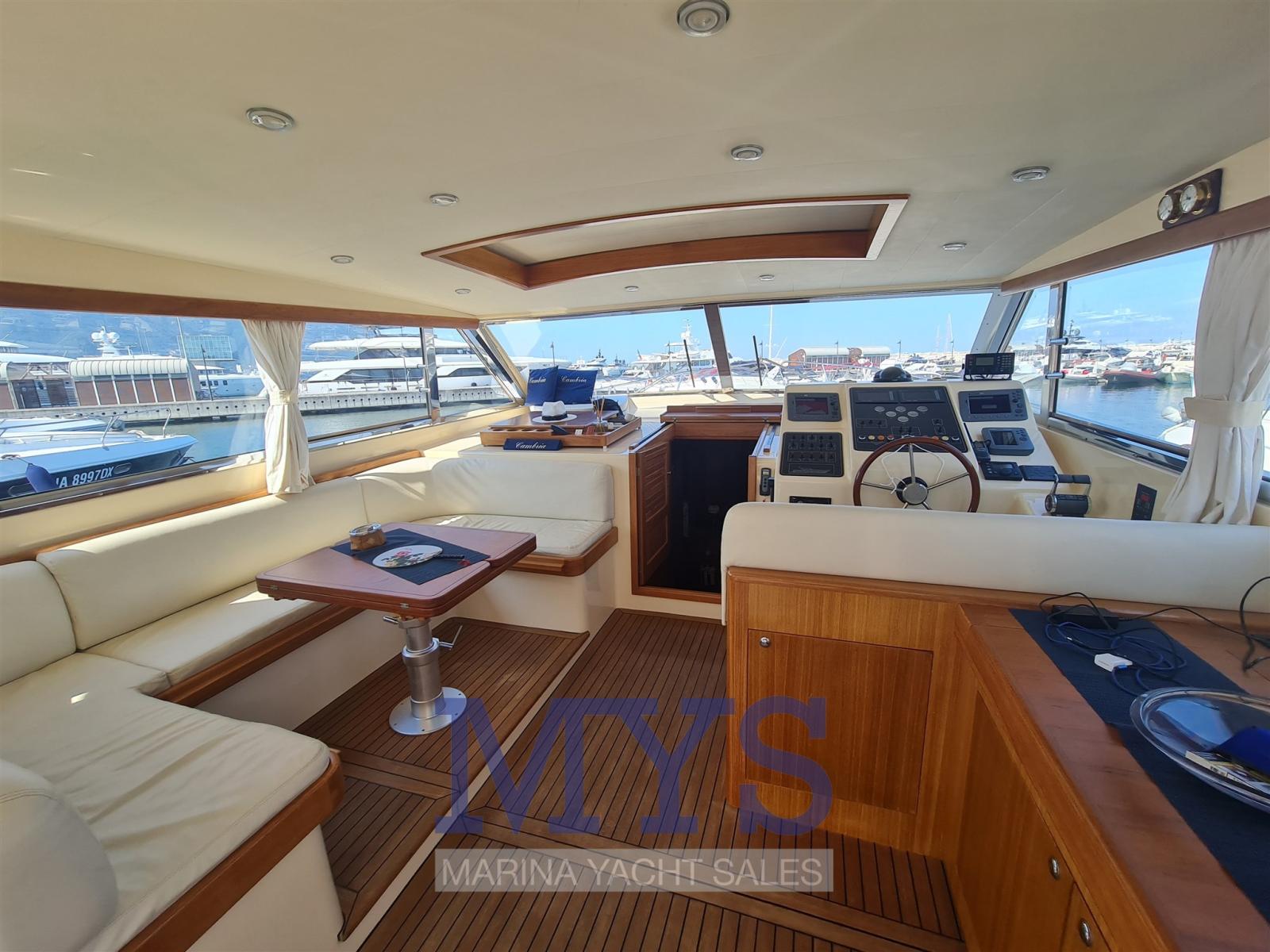 Alarme moteur, Eau sous pression, Passavant en teck, Douche de cockpit, Flaps hydrauliques, Lavabo dans le cockpit, Éclairage de courtoisie, Spots sous-marins, Passerelle (Idraulica), Plateforme arrière, Pompe de cale automatique, Pompe de cale manuelle, Porte latérale, Cockpit en teck, Prise de quai, Guindeau électrique, Echelle de bain, Selles pour Annexe, table de cockpit, 2 Winch électrique arrière, Winch électrique avant.