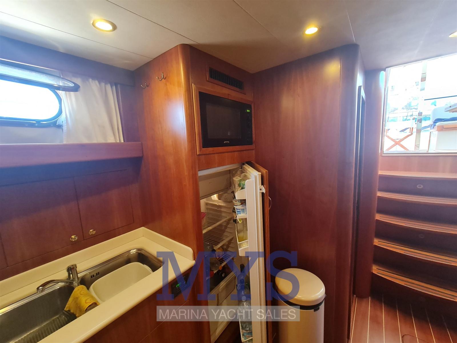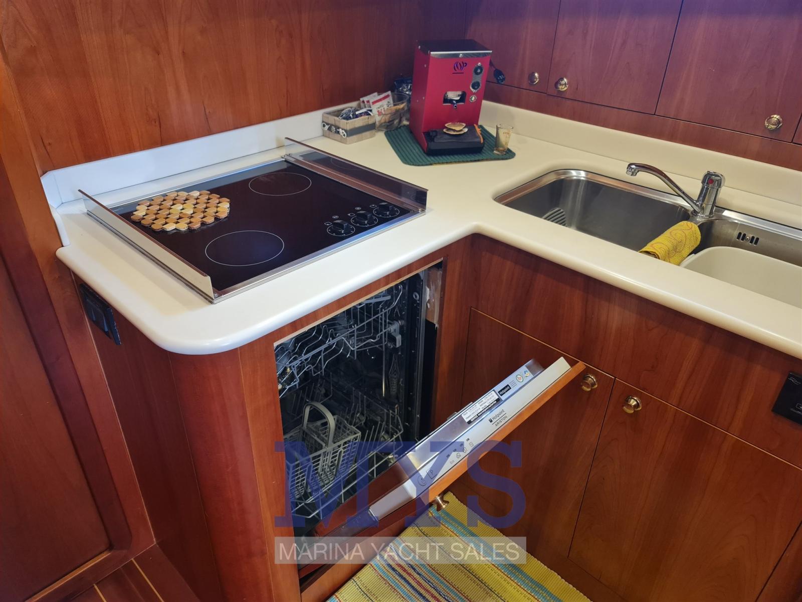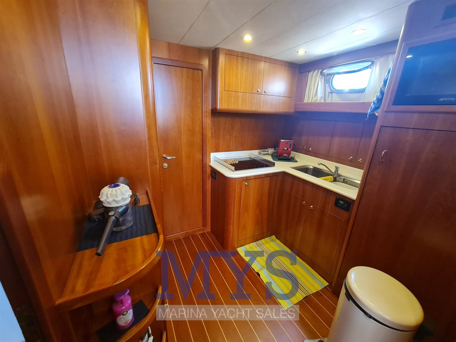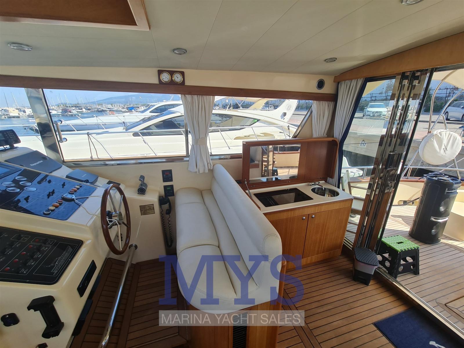 Alarme moteur, Eau sous pression, Passavant en teck, Douche de cockpit, Flaps hydrauliques, Lavabo dans le cockpit, Éclairage de courtoisie, Spots sous-marins, Passerelle (Idraulica), Plateforme arrière, Pompe de cale automatique, Pompe de cale manuelle, Porte latérale, Cockpit en teck, Prise de quai, Guindeau électrique, Echelle de bain, Selles pour Annexe, table de cockpit, 2 Winch électrique arrière, Winch électrique avant.