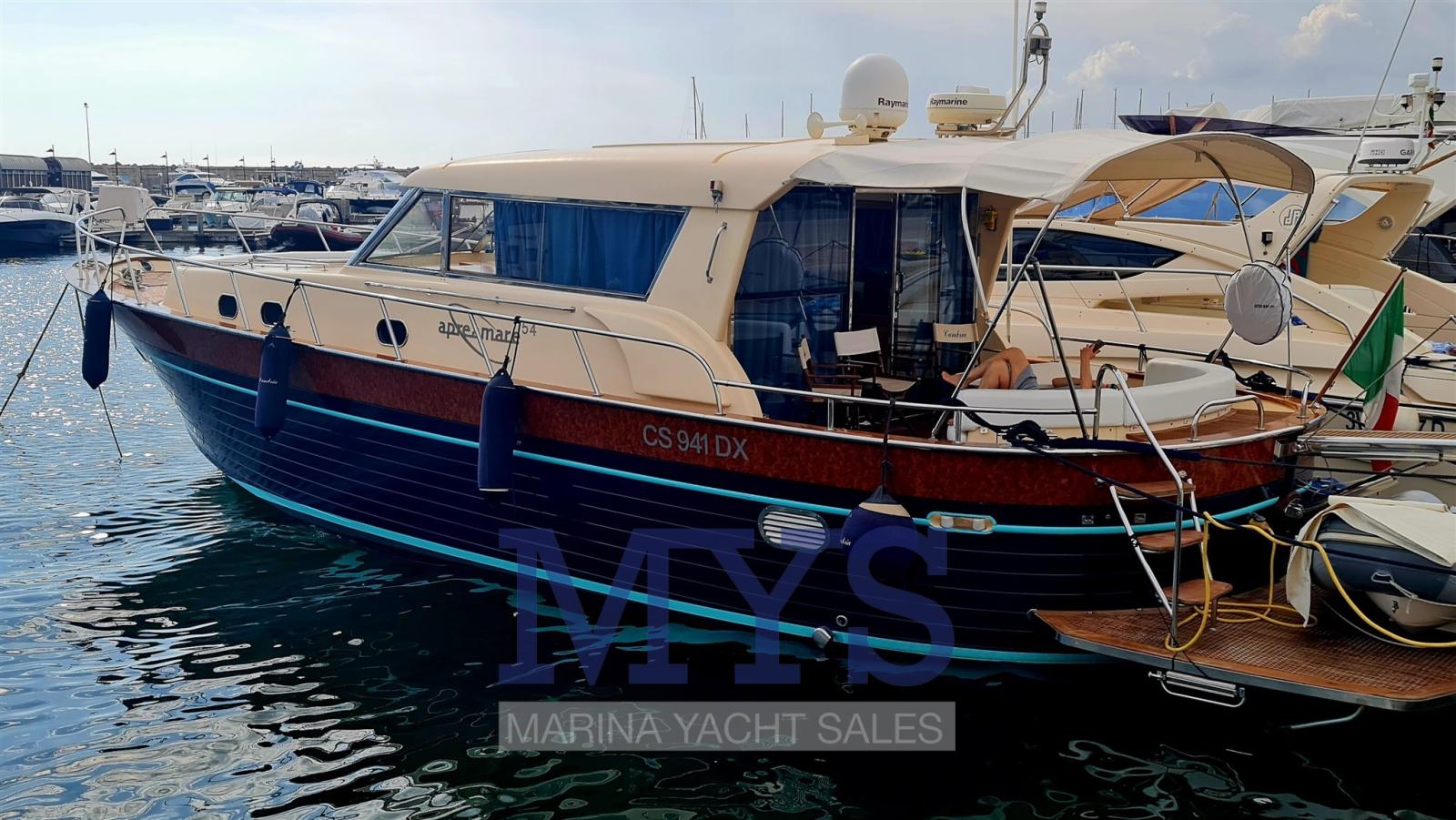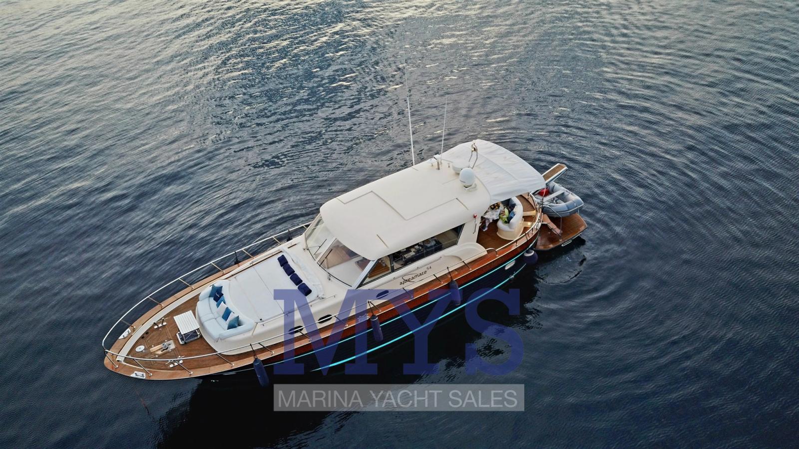 L’Apremare 54 est le vaisseau amiral du chantier naval du même nom, spécialisé dans la construction de goitres en fibre de verre de Sorrente avec d’excellentes performances. Avec ses moteurs de 730 hommes, il garantit une vitesse de croisière de 20 nœuds et un maximum de 30 nœuds, il dispose de 3 cabines invités (une double et deux avec lits plats), 2 salles de bains et d’excellents espaces intérieurs et extérieurs. Sous le pont, nous trouvons également la cuisine, toute construite en bois d’acajou classique. Sur le pont principal de l’Apreamare 54, il y a un grand espace de vie avec une table, des chaises et un canapé en forme de « C » qui fait écho à la ligne arrondie du bateau, recouvert si nécessaire d’un auvent amovible. La plate-forme arrière est une véritable plage en contact avec la mer, où vous pourrez vous détendre et admirer les magnifiques paysages environnants ! À l’avant de l’Apreamare 54, il y a une terrasse confortable et spacieuse.