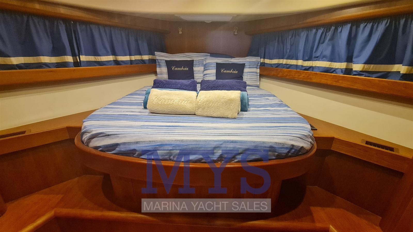 3 cabines, 2 salles de bain, 1 cabine équipage avec entrée par le cockpit arrière