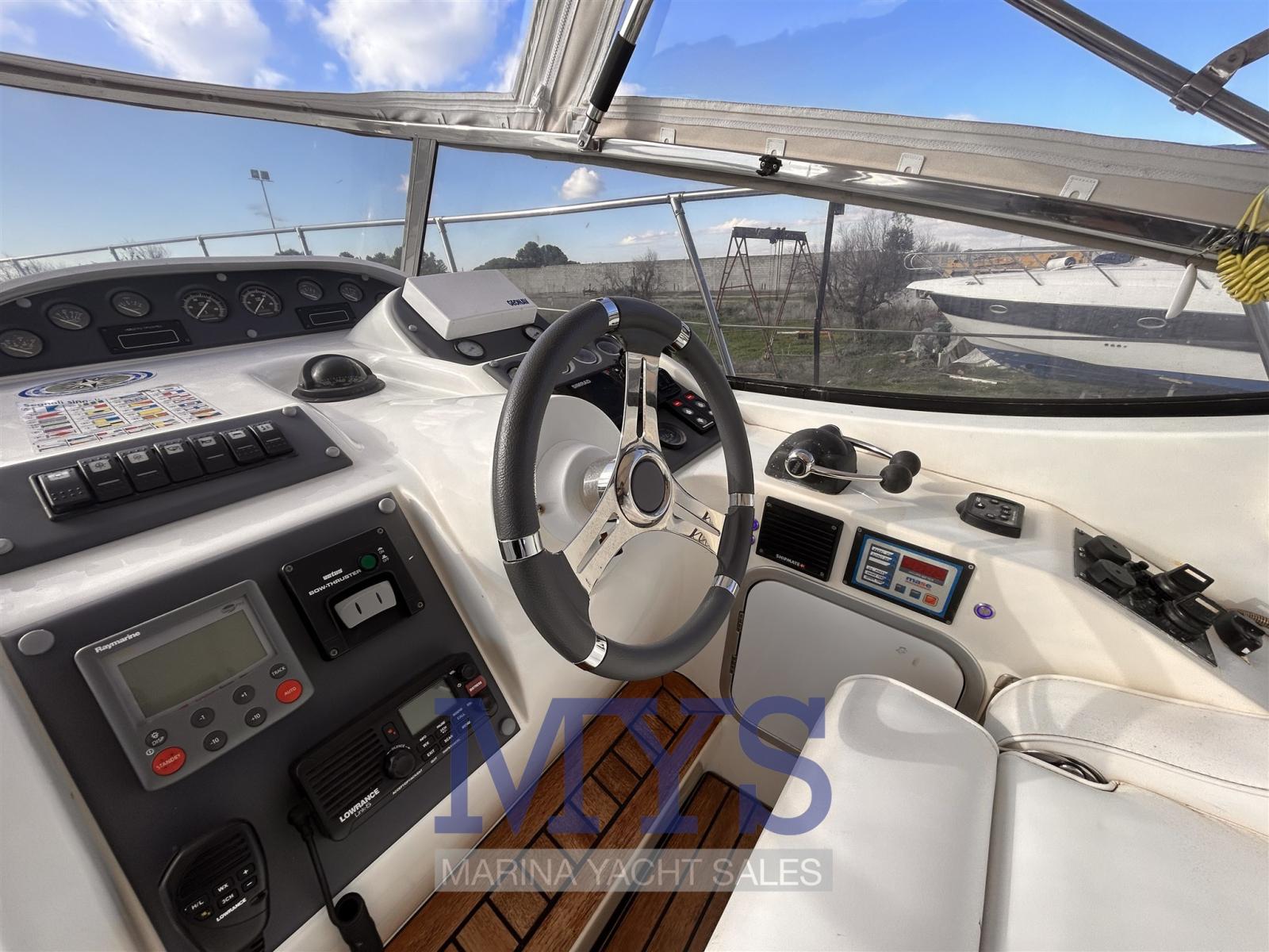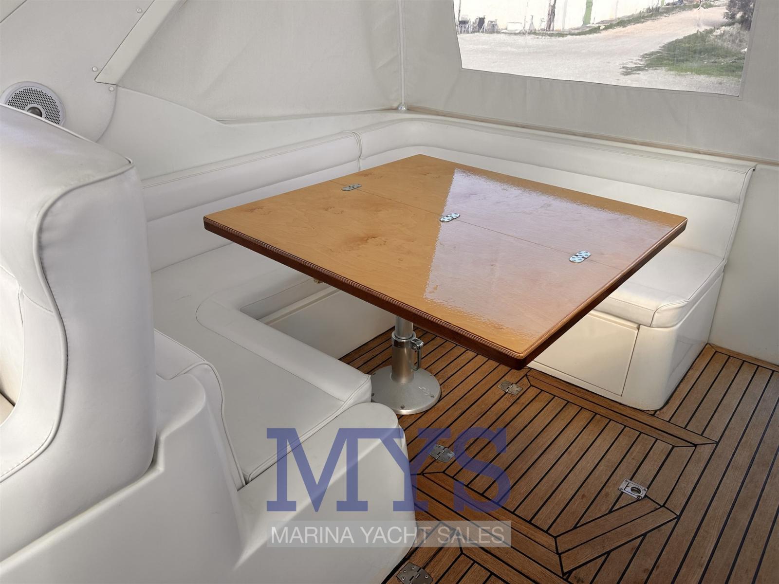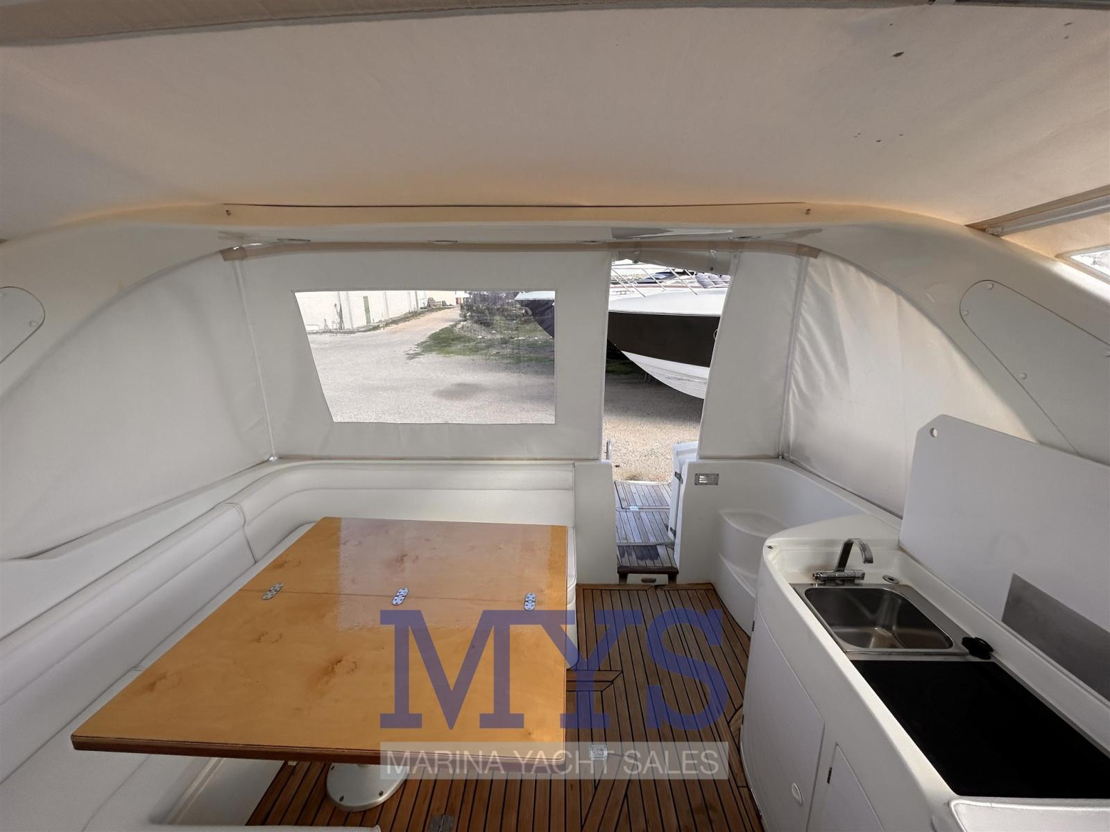 Alarme moteur, Alarme de pompe de cale, Eau sous pression, Douche de cockpit, 2 Flaps hydrauliques, Indicateurs de flaps, Éclairage de courtoisie, Plateforme arrière, Pompe de cale automatique, Pompe de cale manuelle, Prise de quai, Rollbar, Guindeau électrique, Echelle de bain.