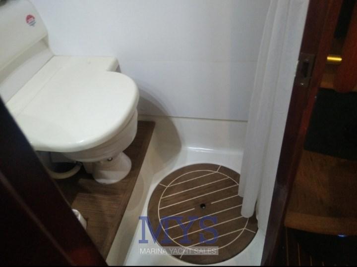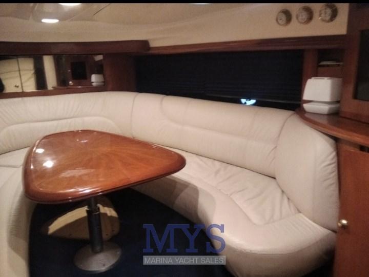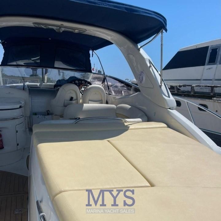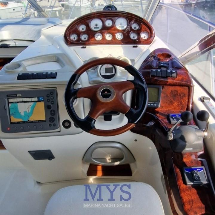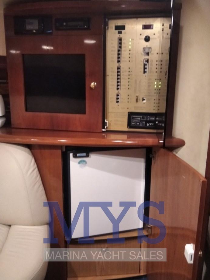 Alarme moteur, Ouverture du compartiment moteur électrique, Eau sous pression, Douche de cockpit, Phare de poursuite, Flaps hydrauliques, Garage à annexe, Extincteur(s) fixe(s), Indicateurs de flaps, Lavabo dans le cockpit, Éclairage de courtoisie, Spots sous-marins, Passerelle, Plateforme arrière, Pompe de cale automatique, Cockpit en teck, Prise de quai, Rollbar, Guindeau électrique, Echelle de bain, table de cockpit, Table pliante de salon, Corne.