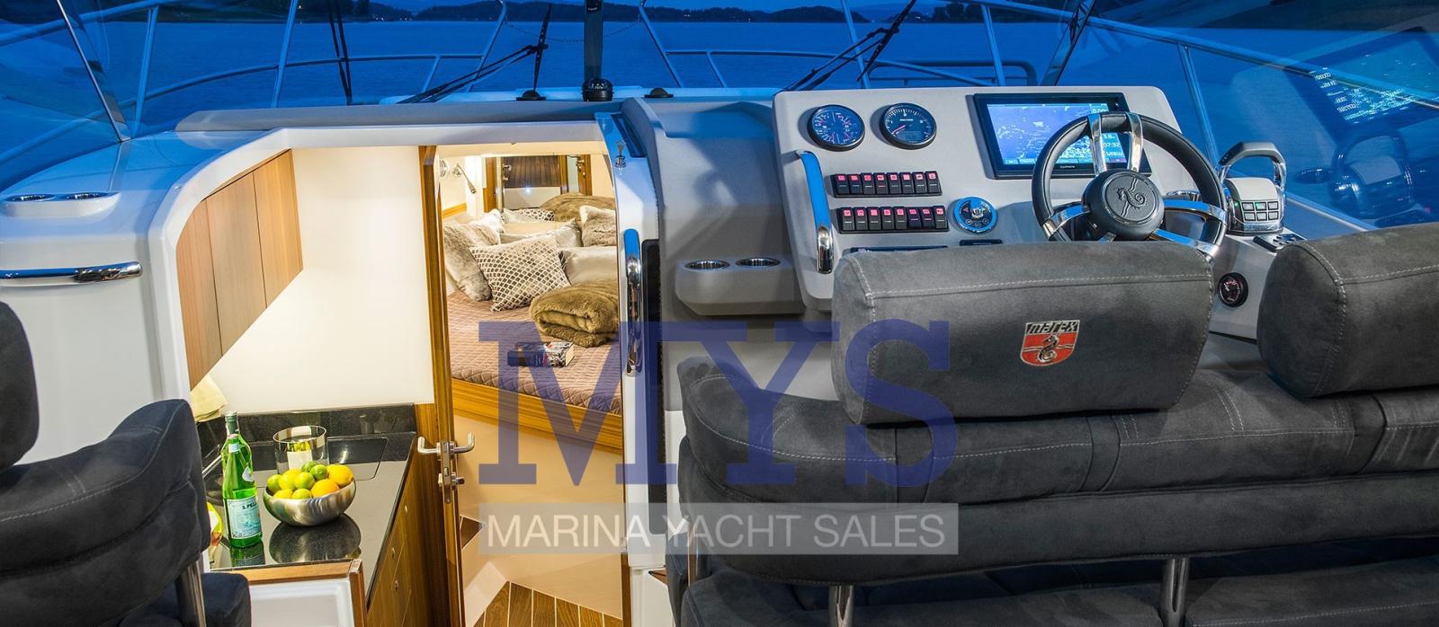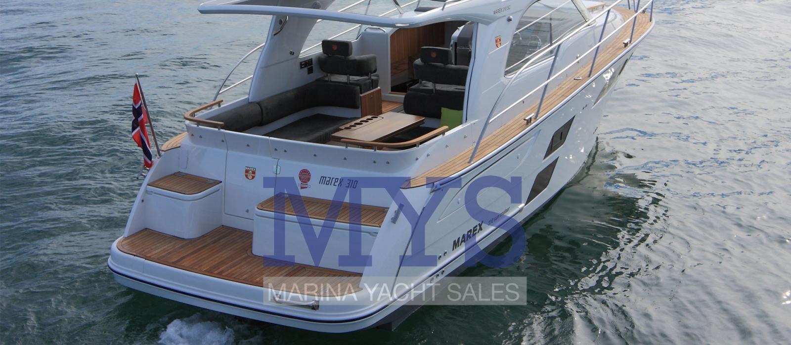 Le Marex 310 est un croiseur de cockpit parfait pour une famille de taille normale. Le Marex 310 SC impressionne par son énorme espace dans la dînette du cockpit. Il dispose d’un siège de cockpit enveloppant élégant qui s’étend du poste de pilotage au siège passager avec de la place pour dix personnes autour de la table. Cela vous invite à socialiser plus agréablement avec vos amis. Les côtés bâbord et tribord peuvent être utilisés comme chaises longues ! Trois au total. Cela vous donnera également la chance d’avoir plus d’amis et de famille sur qui dormir. L’ensemble du groupe de sièges et la plate-forme de bain ont de nombreuses armoires. Les banquettes arrière qui peuvent aussi servir de siège agréable. Un endroit parfait pour se détendre aux beaux jours.