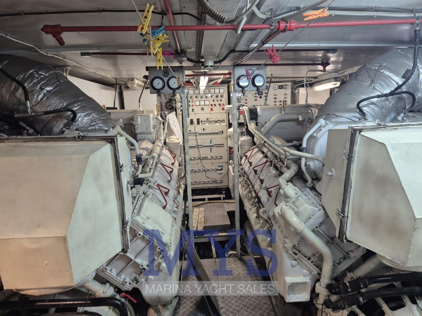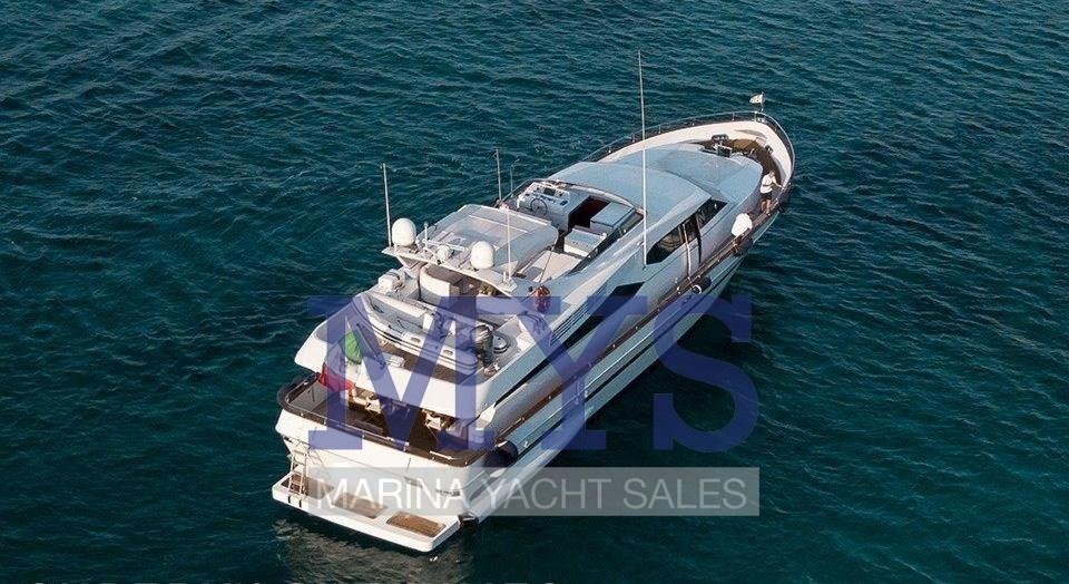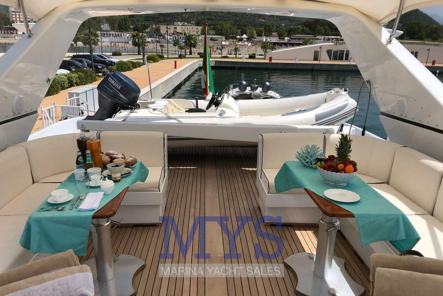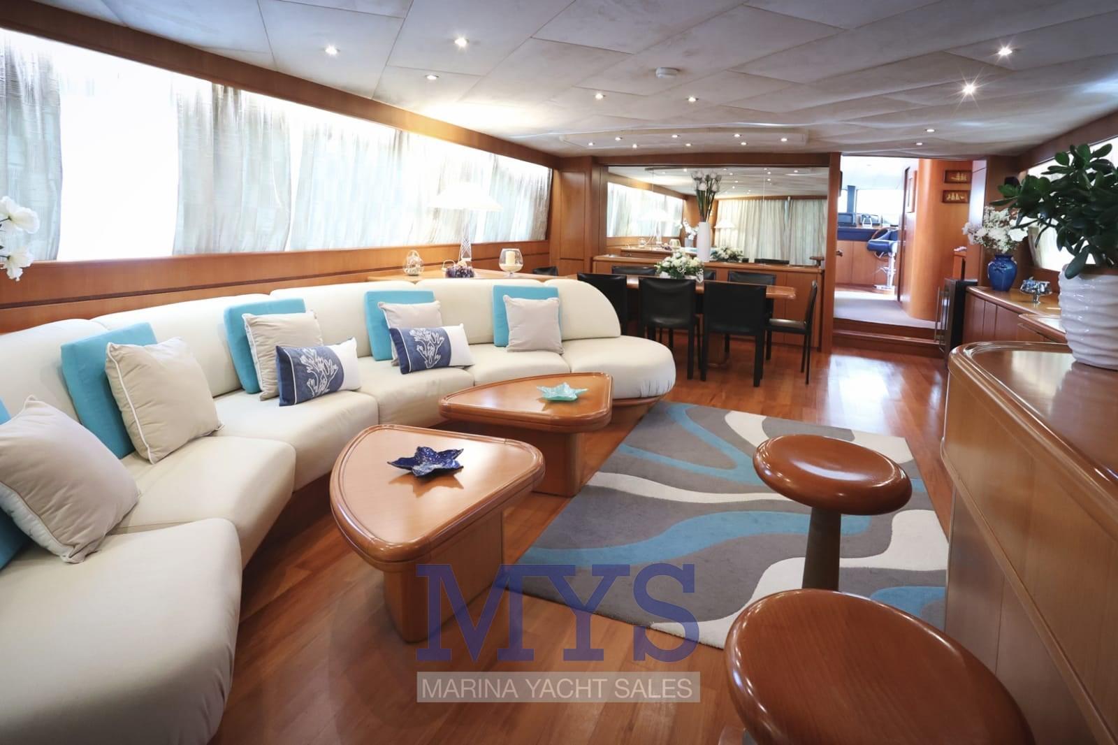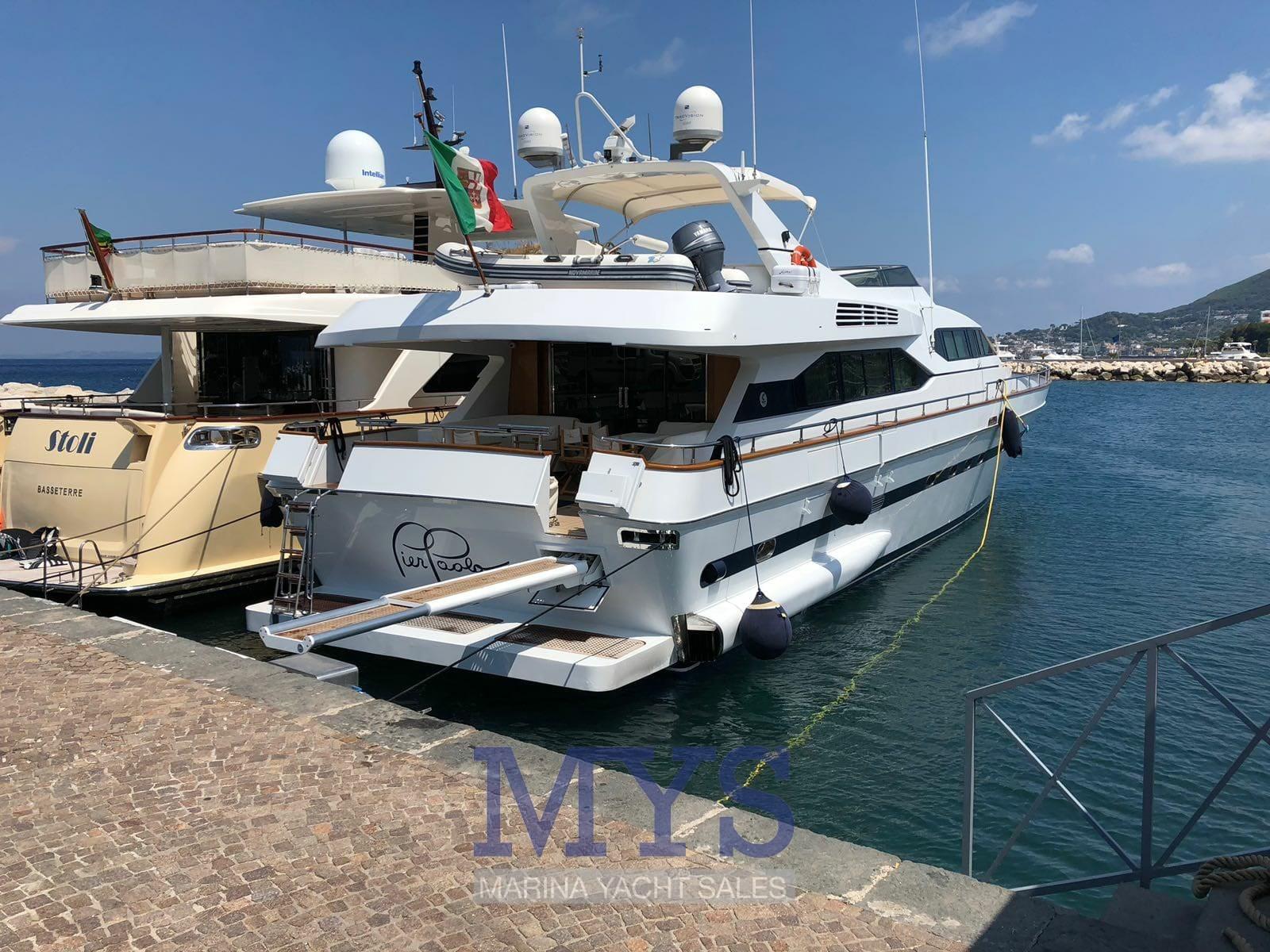 Alarme gaz, Alarme moteur, Alarme de pompe de cale, 2 Ancre, 2 Eau sous pression, 3 Radeau de sauvetage, 8 Batteries, Système de vidange, Passavant en teck, 3 Chargeur de batterie, Câble d’alimentation à quai, Filères, Douche de cockpit, Double barre à roue, Flaps hydrauliques, Grue de flybridge, Extincteur(s) fixe(s), Compresseur de plongée, Indicateurs de flaps, Lavage de chaine, Éclairage de courtoisie, Spots sous-marins, Moteur hors-bord pour annexe (40/60), Défenses, Passerelle (idraulica a scomparsa), Plateforme arrière (Da bagna a poppa), Pompe de Vidange du Réservoir d’Eaux Usées, 3 Pompe de cale automatique, Pompe de cale manuelle, Pompe à Eau de Mer, Pont en teck, Porte latérale, 2 Porte latérale, Cockpit en teck, Prise de quai (+V 380), Onduleur, Rollbar, Guindeau Hydraulique, Echelle de coupée, Echelle de bain, Selles pour Annexe, table de cockpit, Annexe, Corne, Winch hydraulique, 2 Winch électrique arrière (a scomparsa), 2 Winch électrique avant.