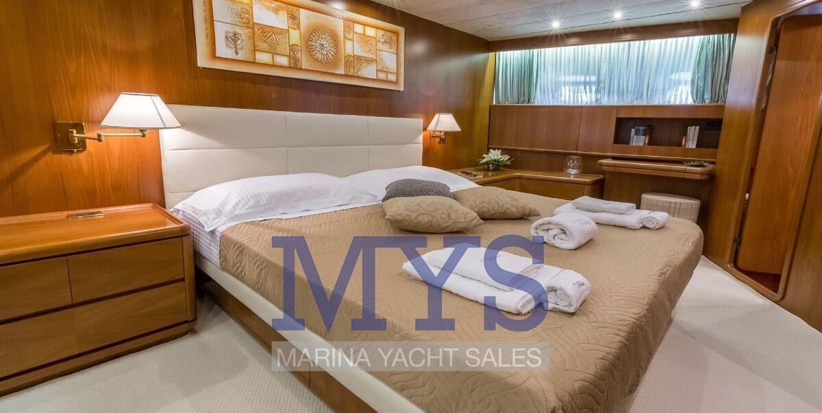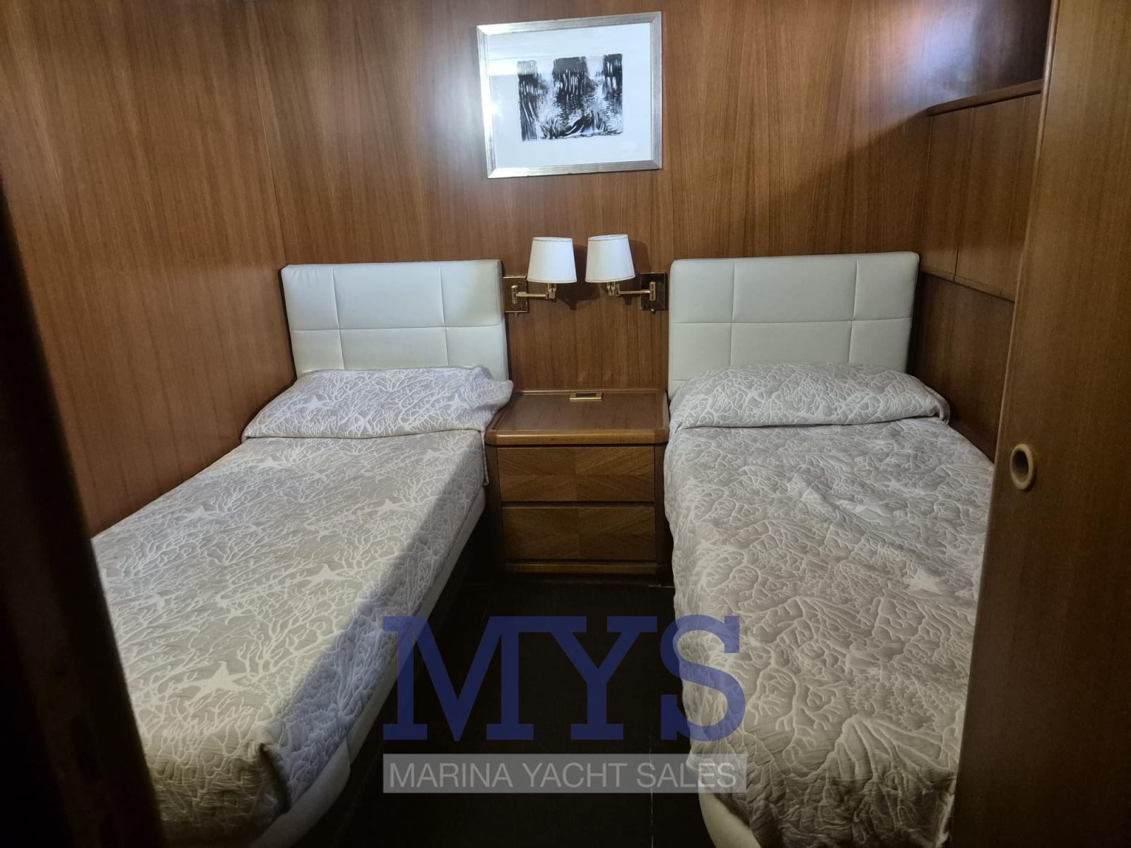 L’espace de couchage comprend 4 cabines, 2 chambres doubles et deux chambres simples. La cabine arrière pleine poutre offre un espace suffisant pour un confort maximal, équipée de services en salle de bain attenante, d’un double lavabo et d’une douche, d’un grand dressing avec coffre-fort, d’un espace bureau, de la climatisation indépendante, d’une télévision LED-Ultra HD, d’une chaîne stéréo, d’un système d’interphone à l’intérieur du navire (prédisposition), de la cabine VIP à l’avant toujours pleine poutre et équipée de tout le confort et des services en salle de bain attenante, un grand dressing équipé de climatisation indépendante et sécurisée, télévision LED-Ultra HD, chaîne hi-fi, interphone à l’intérieur du navire (prédisposition), deux cabines doubles avec lits plats confortables, chacune dotée de salles de bains attenantes complètes, climatisation indépendante, interphone interne (prédisposition), et le yacht est également équipé d’un désinfectant-ionisateur pour un soin et une hygiène maximales de l’intérieur.
