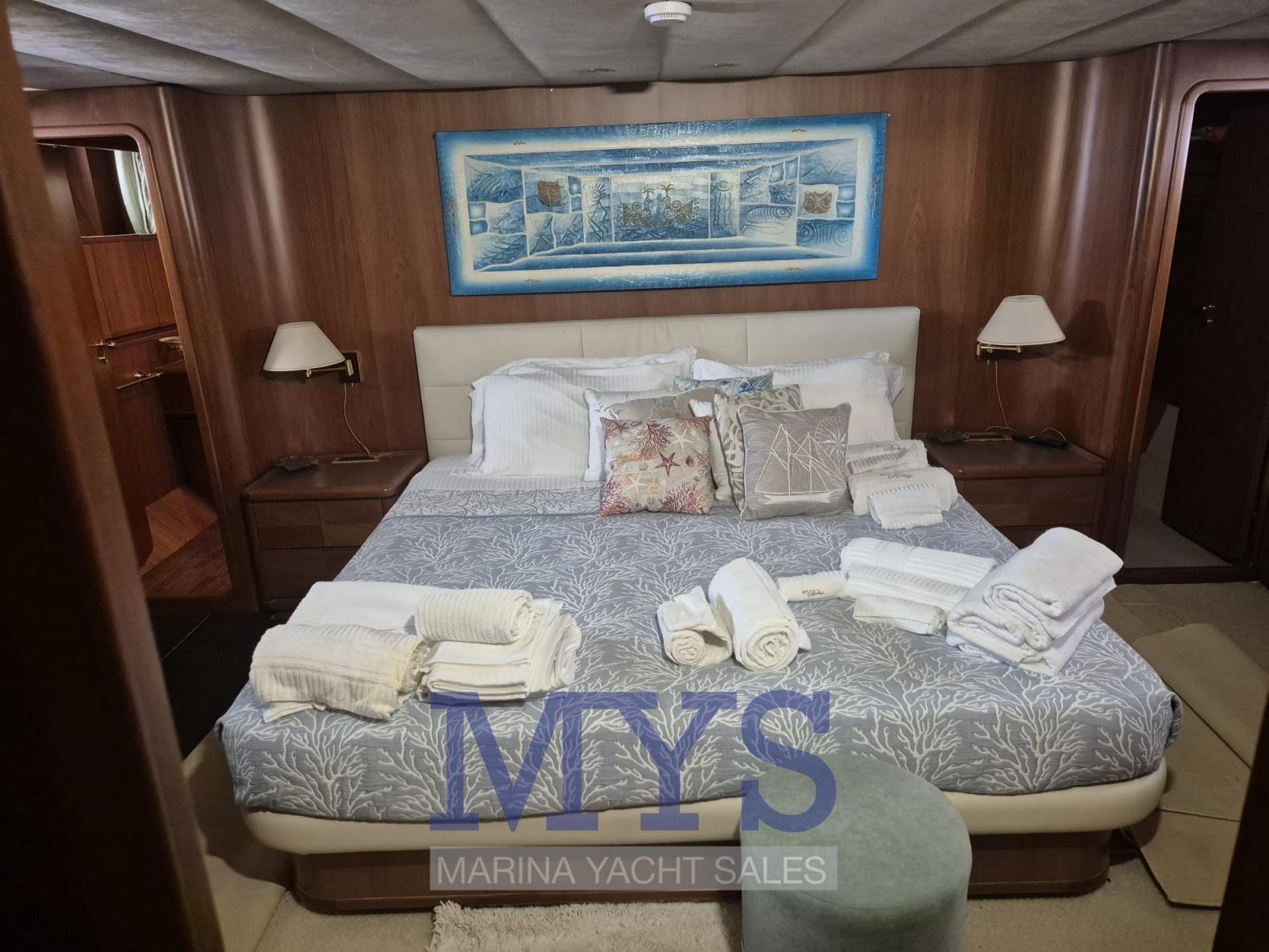 Eau Chaude, Alarme intrusion, 2 Ballon d'eau chaude, 2 Coffre-fort, Air Conditionné, Connexion à internet, Dessalinisateur, Cuve à eaux noires, Indicateur du réservoir de carburant, Jauge de Réservoir d’Eaux Usées, Indicateur de pression d’huile, Indicateur de température moteur, Plancher intérieur en bois, Prises interieures 12v, Prises interieures 220v, Réservoir d'eau noire, 2 Caméra vidéo, Interphone (predisposizione), Voltmètre, 7 Toilettes électriques.