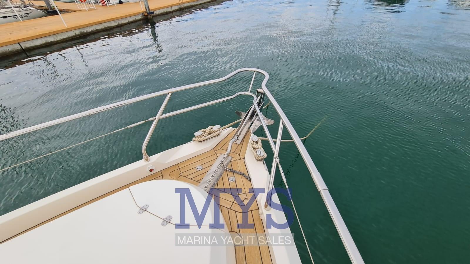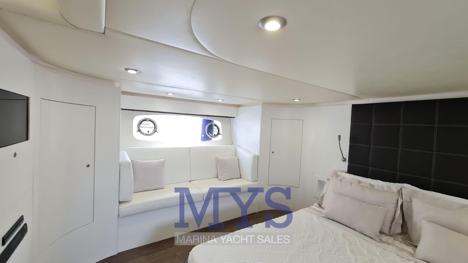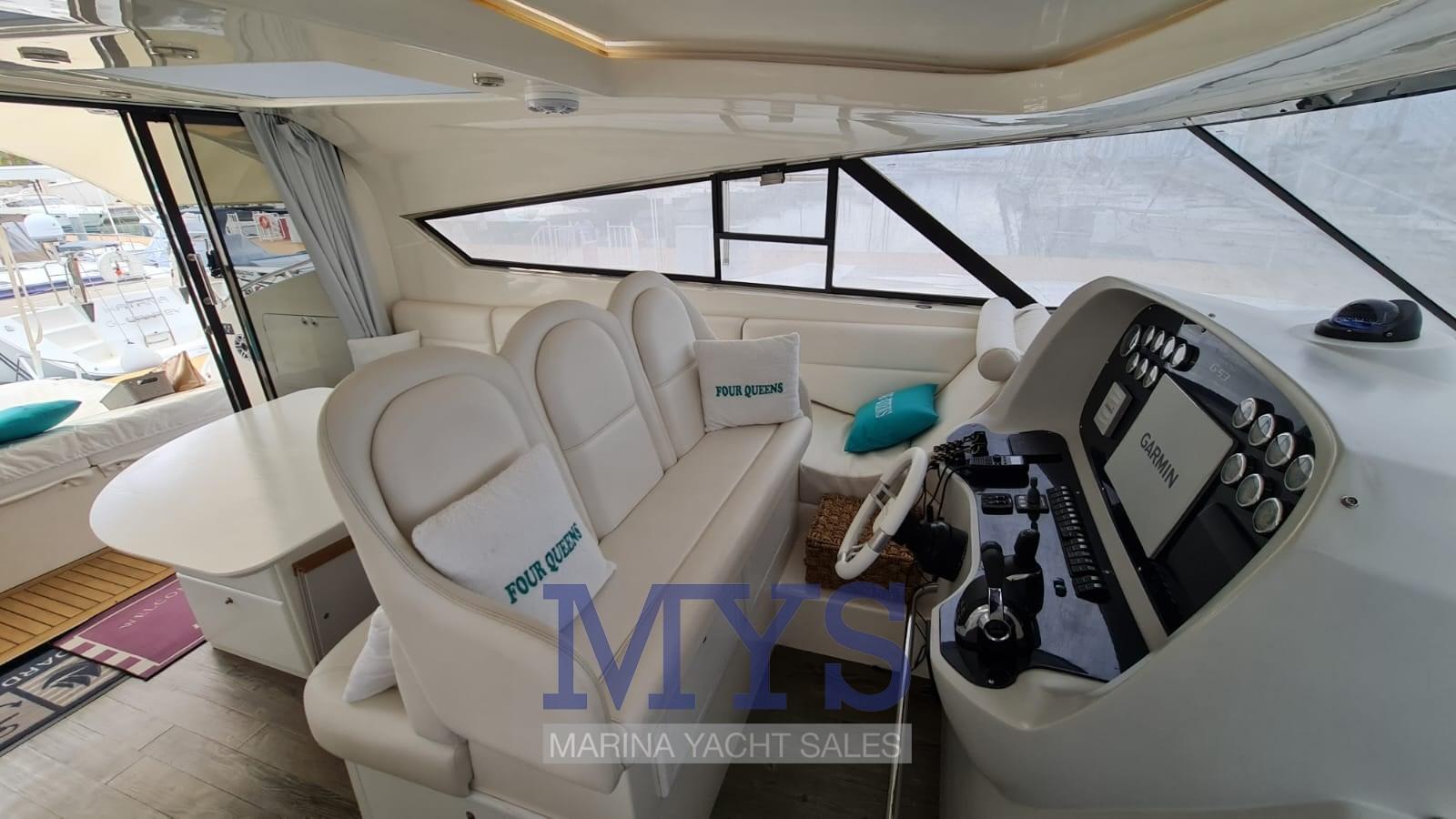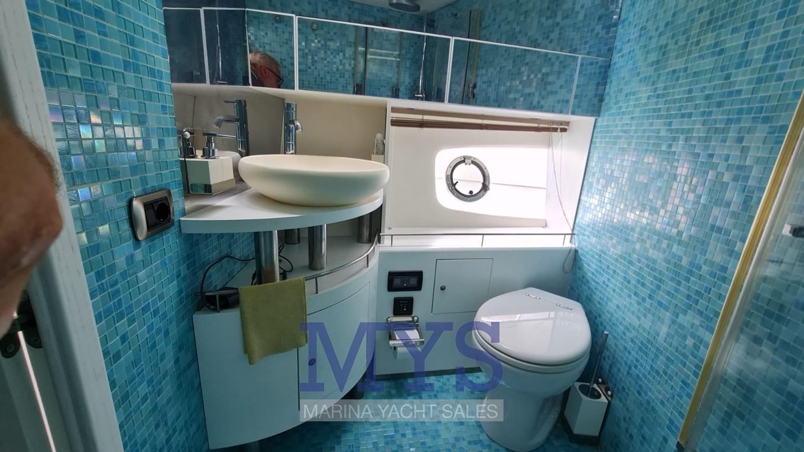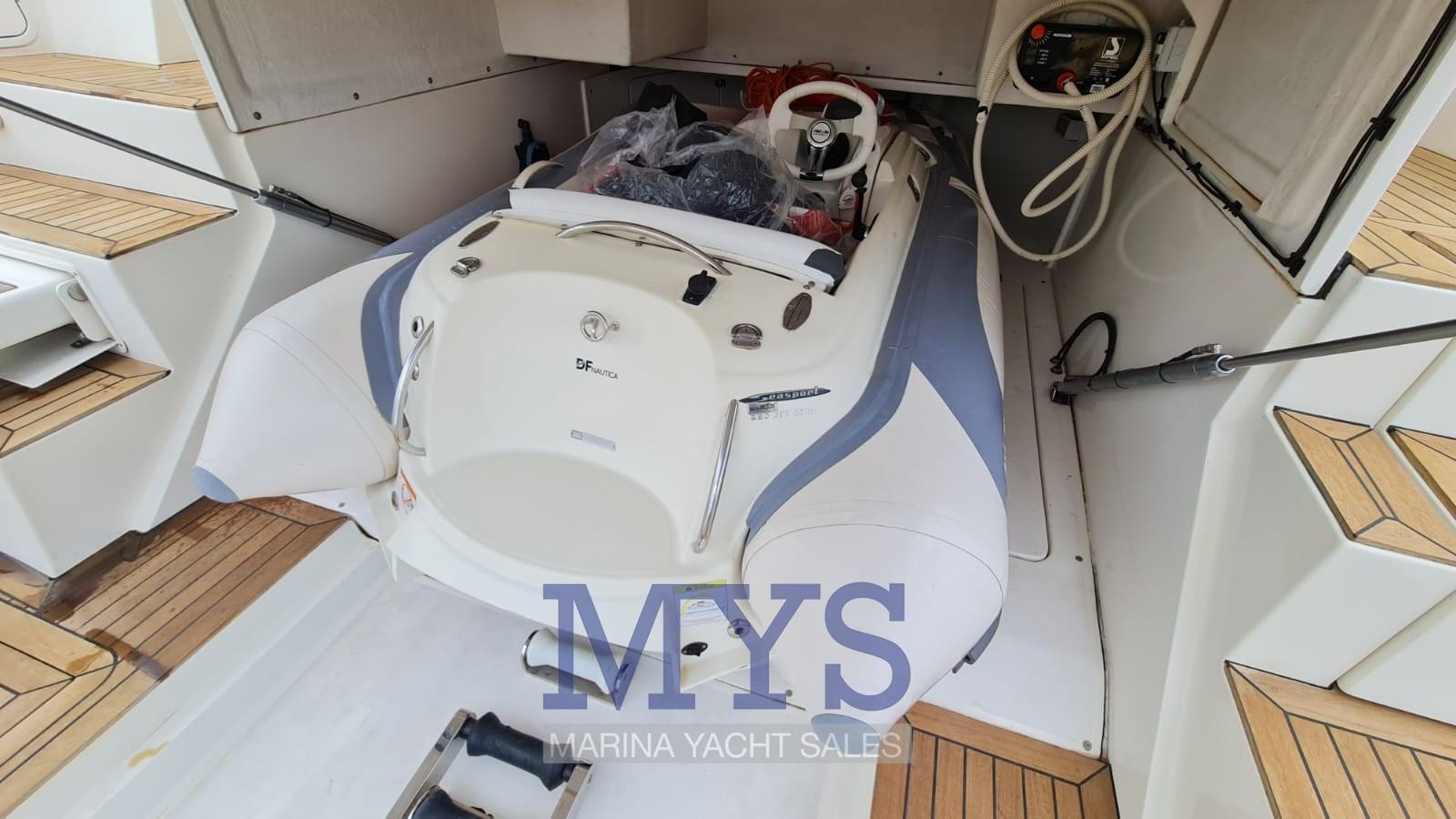 Alarme moteur, Alarme de pompe de cale, Eau sous pression, Couleur spéciale (Scafo blù), Douche de cockpit, Phare de poursuite, Flaps hydrauliques, Passerelle (Idraulica), Plateforme arrière, Pompe de cale automatique, Porte latérale, Cockpit en teck, Prise de quai, Onduleur, Guindeau électrique, Echelle de bain, table de cockpit, Corne, Winch électrique arrière.