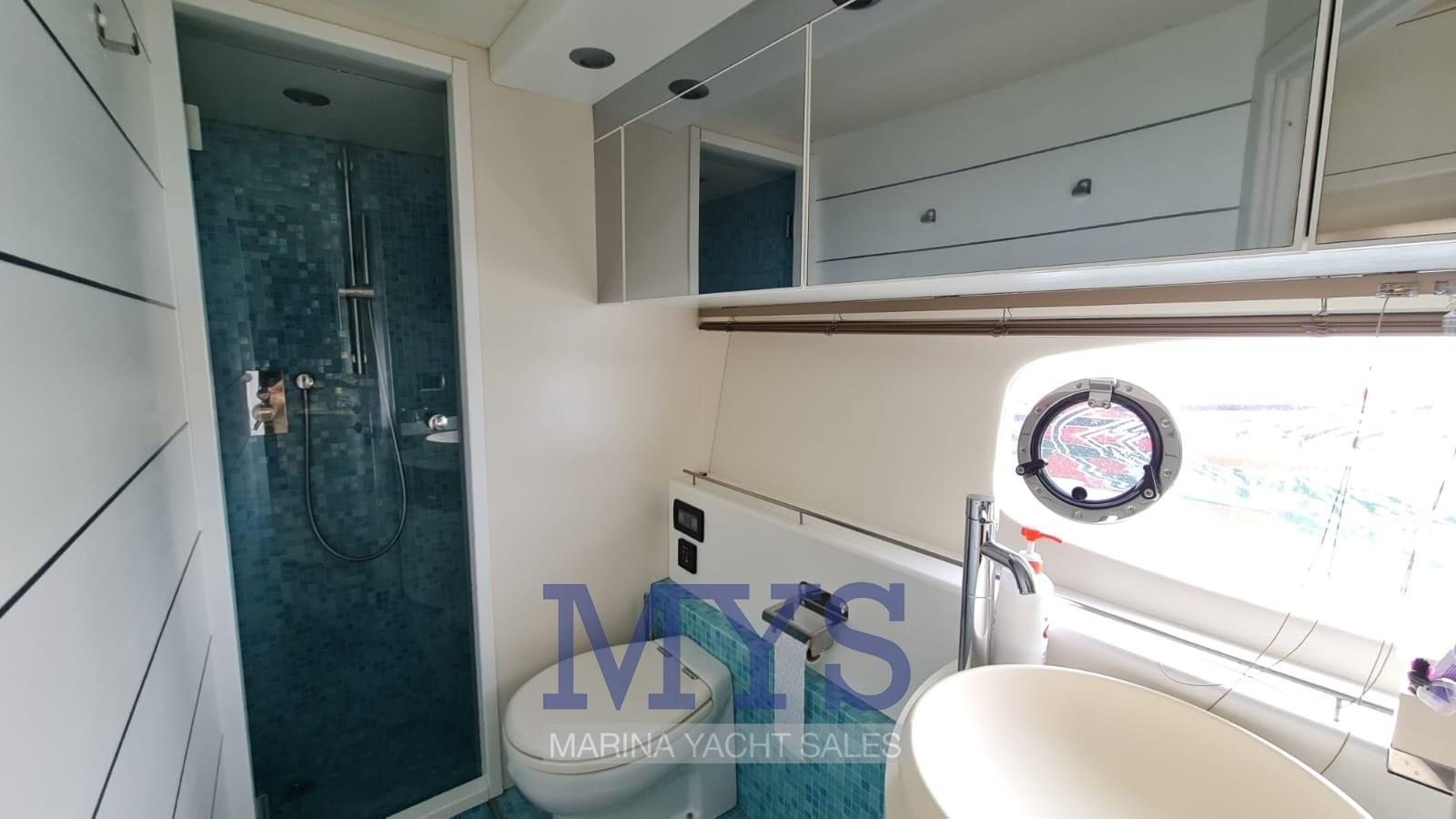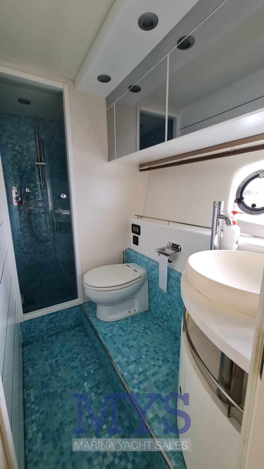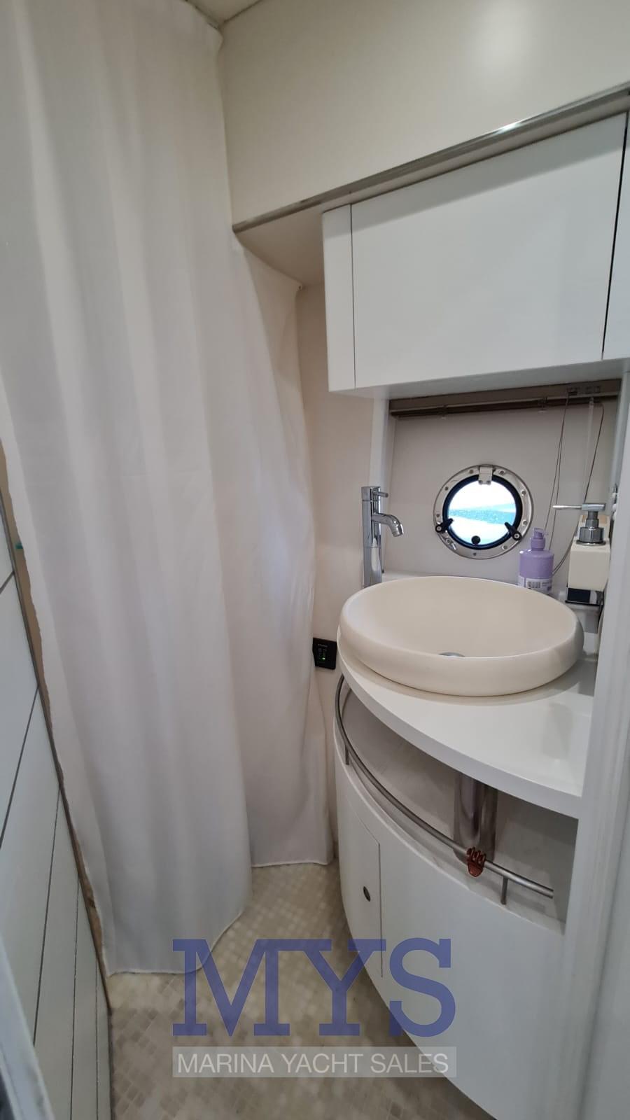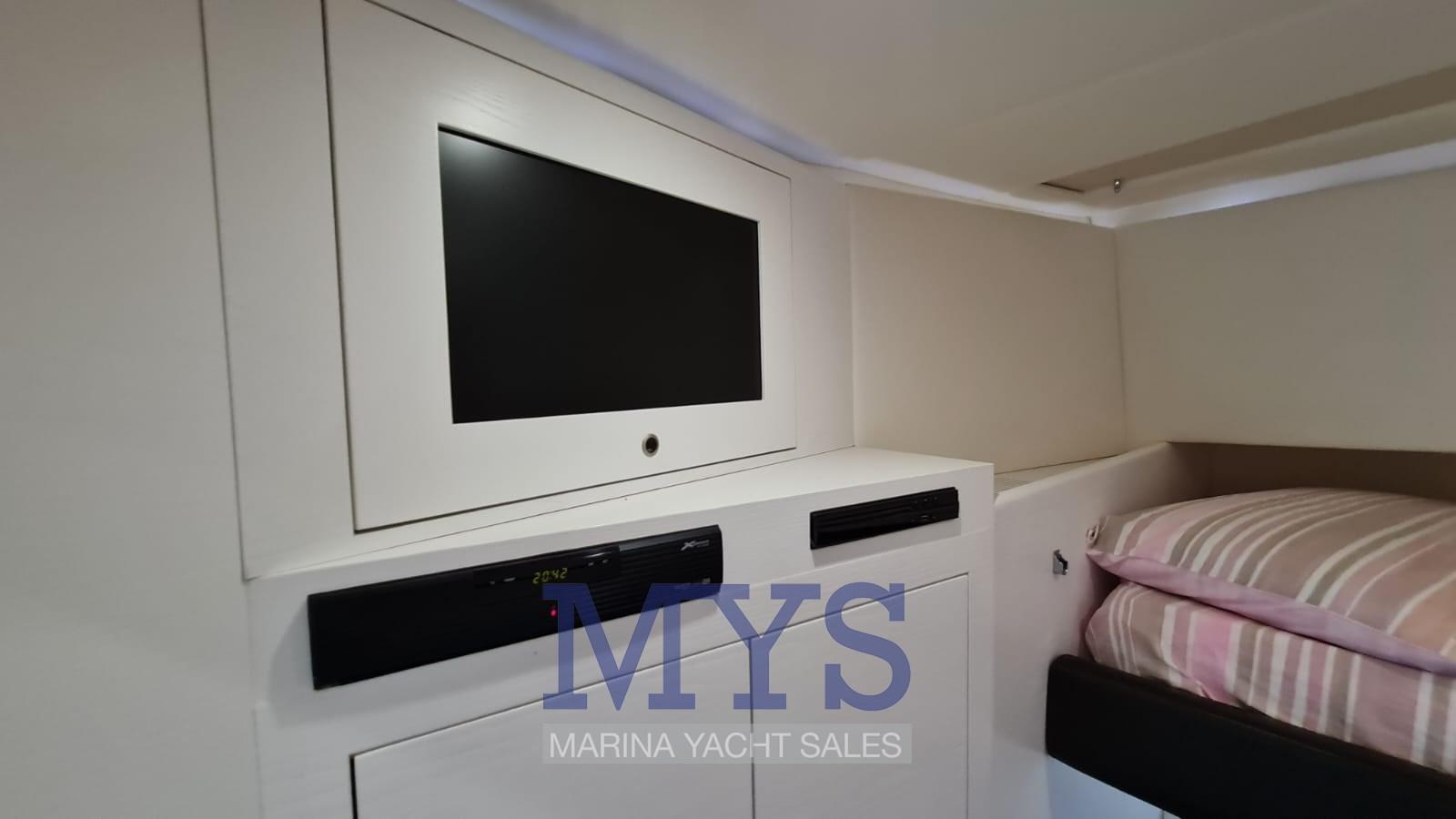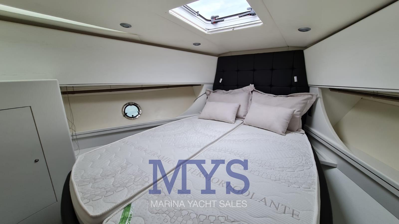 Alarme moteur, Alarme de pompe de cale, Eau sous pression, Couleur spéciale (Scafo blù), Douche de cockpit, Phare de poursuite, Flaps hydrauliques, Passerelle (Idraulica), Plateforme arrière, Pompe de cale automatique, Porte latérale, Cockpit en teck, Prise de quai, Onduleur, Guindeau électrique, Echelle de bain, table de cockpit, Corne, Winch électrique arrière.