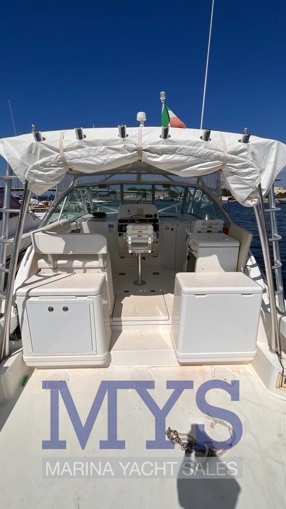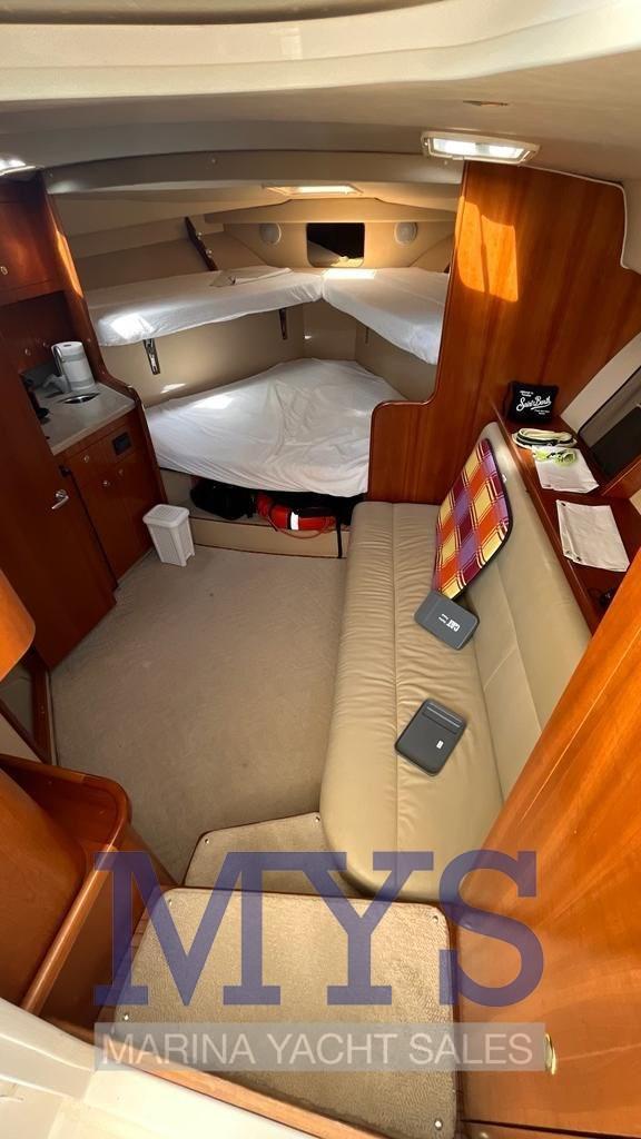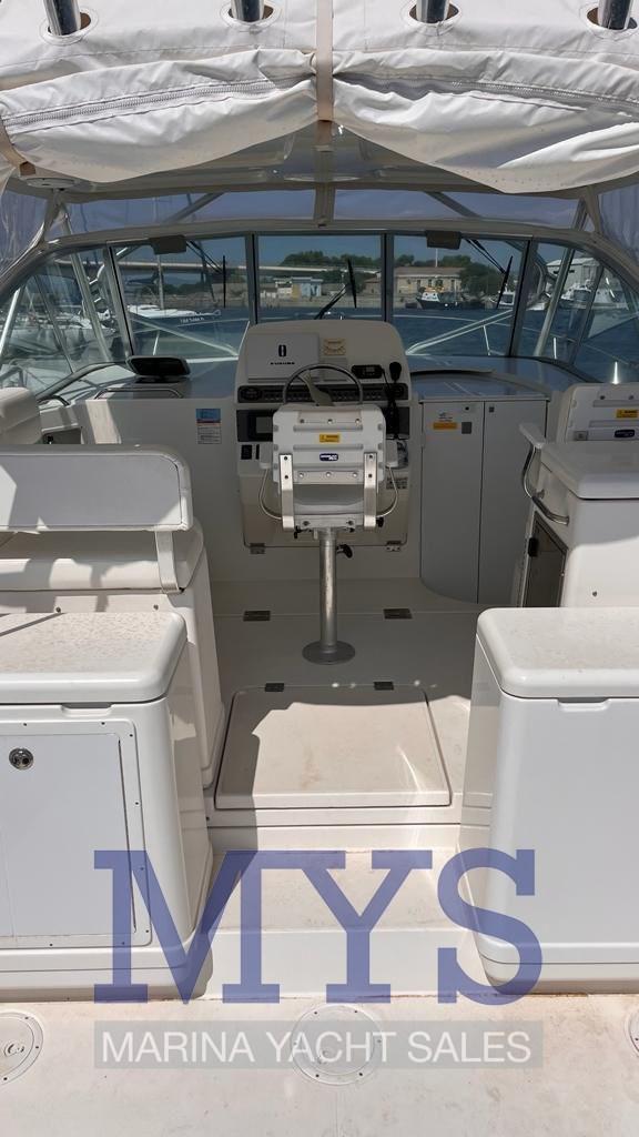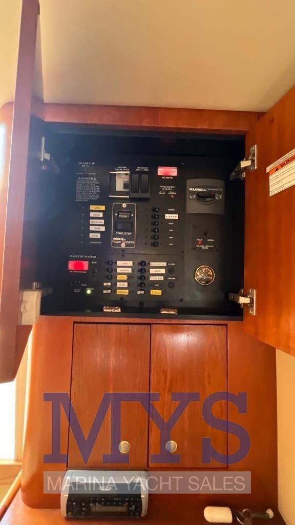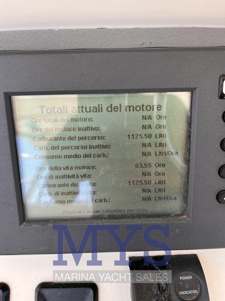 Alarme gaz, Alarme moteur, Alarme de pompe de cale, Ouverture du compartiment moteur électrique, Eau sous pression, 4 Batteries, Chargeur de batterie (VICTRON), Douche de cockpit (C/F), Flaps hydrauliques, Hard top, Extincteur(s) fixe(s), Indicateurs de flaps, Éclairage de courtoisie, Plateforme arrière, Pompe de cale automatique, Pompe de cale manuelle, Prise de quai, Guindeau électrique, Echelle de bain, Corne.
